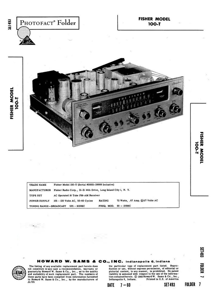 Printed Manual - Updated Listing Fisher Radio Receiver 100-T Service Manual 63 Printed Pages Bound Together PLEASE LOOK AT THE PICTURES SO YOU KNOW WHAT TO EXPECT. I cannot guarantee this manual has clear images, photos or diagrams.