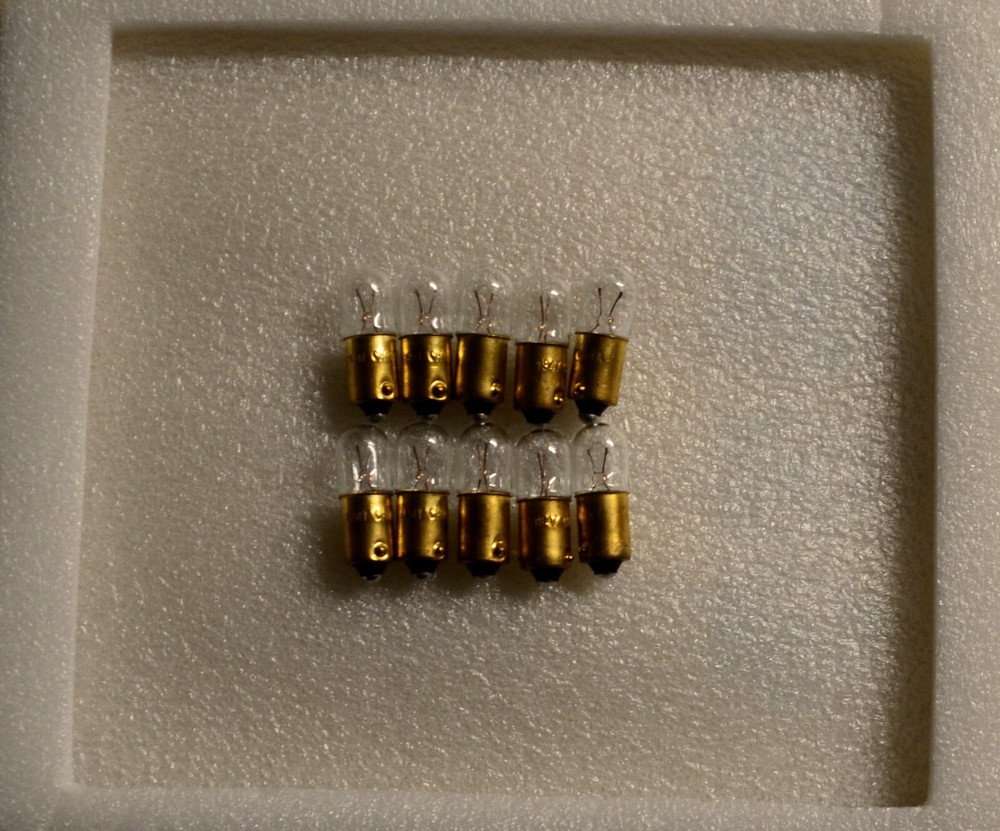* FLAT RATE SHIPPING COST $4.50 FOR ALL QUANTITIES! PLUS ++++++ BUY 2 LOTS OR MORE & GET 10% OFF PRICE!! * FISHER 50-R & 70-RT Original lamps! * QUANTITY : 10 Lamps * Manufacturer Part Number : 1847 * Lamp Type: Incandescent Bayonet Lamp * Operating Current: 6.3V - 0.15 A * Base Type: (BA9s) * Bulb Size: T-3 1/4 * Average Bulb Life: 5000hrs. * Watts: 0.945 * Brand- CEC Industries * ANY QUESTIONS OR CONCERNS PLEASE CONTACT ME BEFORE MAKING ANY PURCHASE-- SEE PICS FOR MEASUREMENTS ON BAYONET 6.3V-.15A INCANDESCENT LAMPS !! * We GUARANTEE the quality of our product & will gladly issue a replacement or refund within 60 days of purchase if not fully satisfied !! * I welcome customize orders!! * Contact me for special Quantities! * MOST important to me is giving my Customers the BEST PRICE, QUALITY, & PERSONALIZED CUSTOMER SERVICE !! * PLEASE CHECK YOUR UNIT TO INSURE PROPER FIT PRIOR TO ORDERING BAYONET LAMPS !! ALL ITEMS WILL BE SHIPPED WITHIN 2-4 BUSINESS DAYS !!