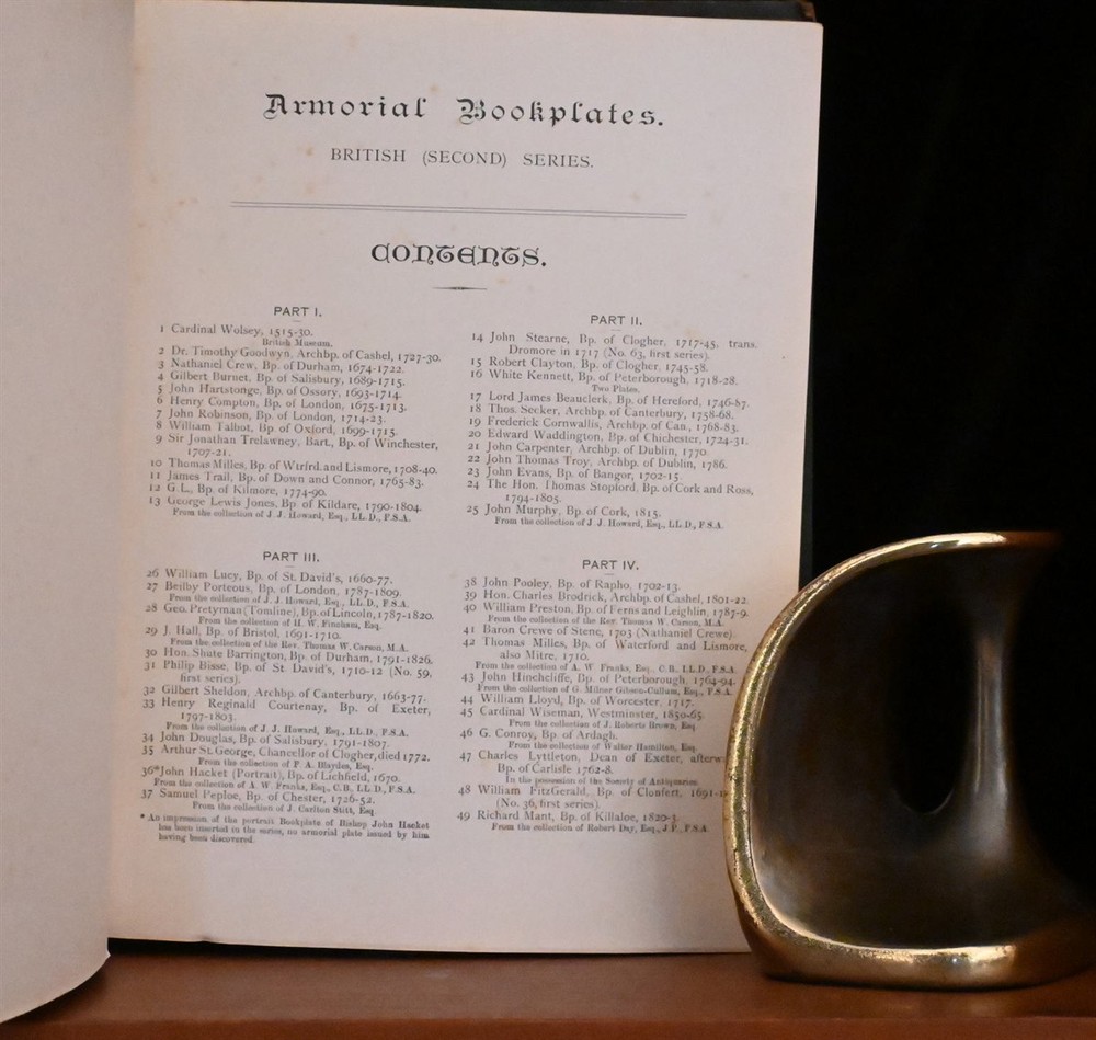 147 Examples of Armorial Book Plates from Various Collections -- Second (British) Series by London: W. Griggs & Sons, 1892. First Edition. Folio. Hardcover. Bound in three-quarter leather In Very Good condition 94061 W51 Shipping: All of our books are carefully wrapped, packaged and promptly shipped. We ship via media mail unless otherwise requested. Overseas shipments will be sent by Priority Mail International. Please contact us before bidding for cost. Combined shipping is always used for multiple purchases. Payment: We accept Paypal, Visa, Master Card, American Express, and checks. Payment must be received within seven days of the close of auction. Returns: All books are returnable within thirty days of receipt. Our express goal is your satisfaction. About Us: Rain Dog Books, located in Bloomington, Il., has been in the rare book trade since 1989. We carry a select inventory of rare, scholarly, and collectible books, ephemera, prints and artwork. Our specialties include fine bindings, the fine arts, press books, literature, history, and travel. We also stock an extensive inventory of decorative leather and clothbound sets. Please check out our website for a complete listing of our inventory. We are always interested in purchasing libraries or individual books of interest. Please call or email us if you are interested in selling your collection. Richard Vokoun Rain Dog Books P.O. Box 3003 Bloomington, Il. 61702