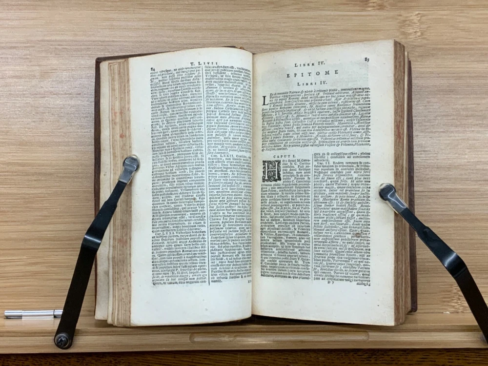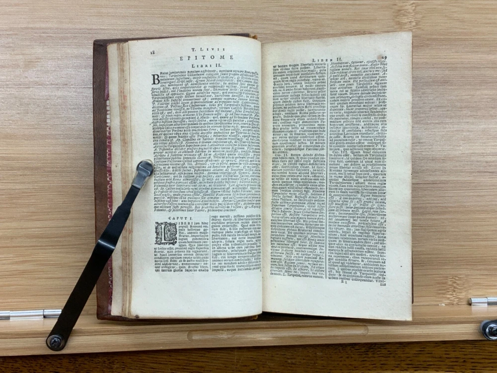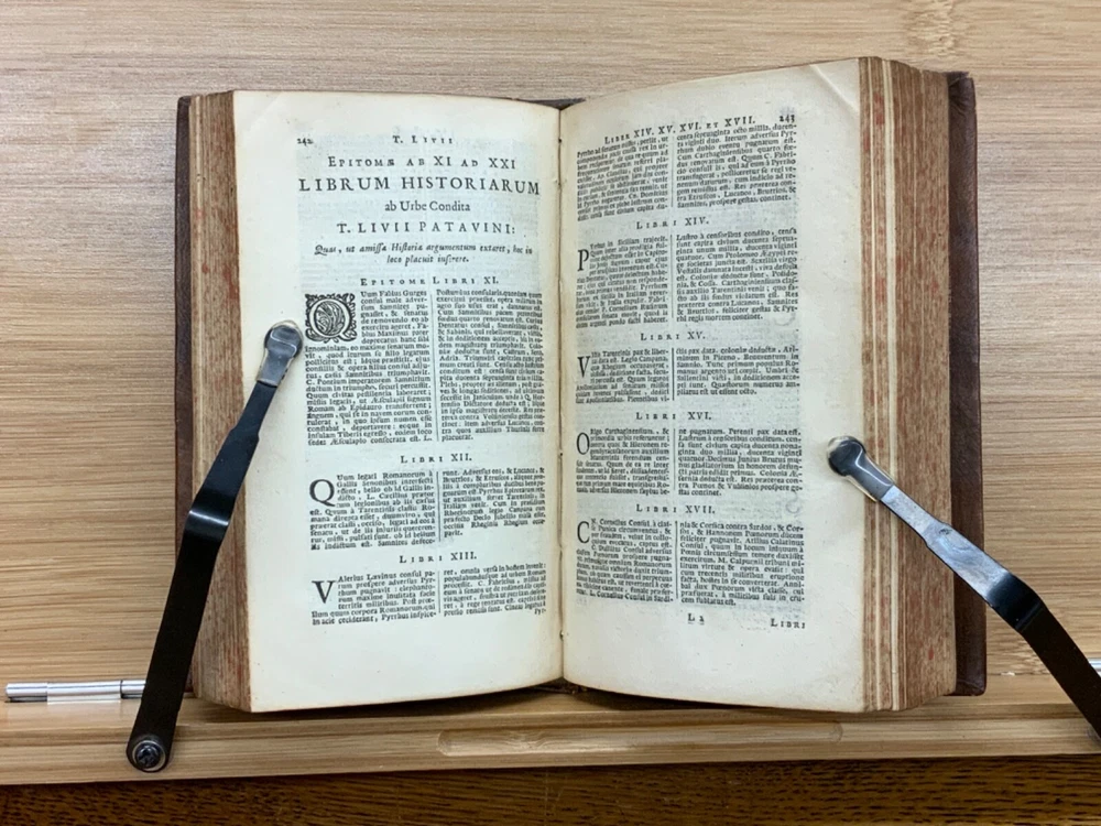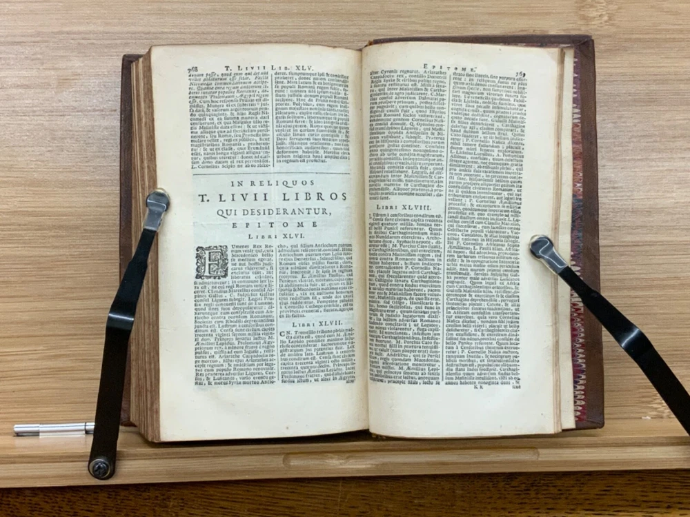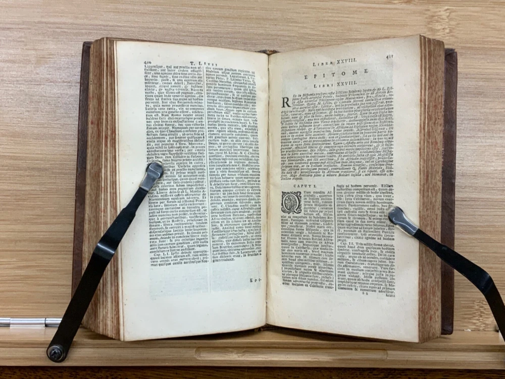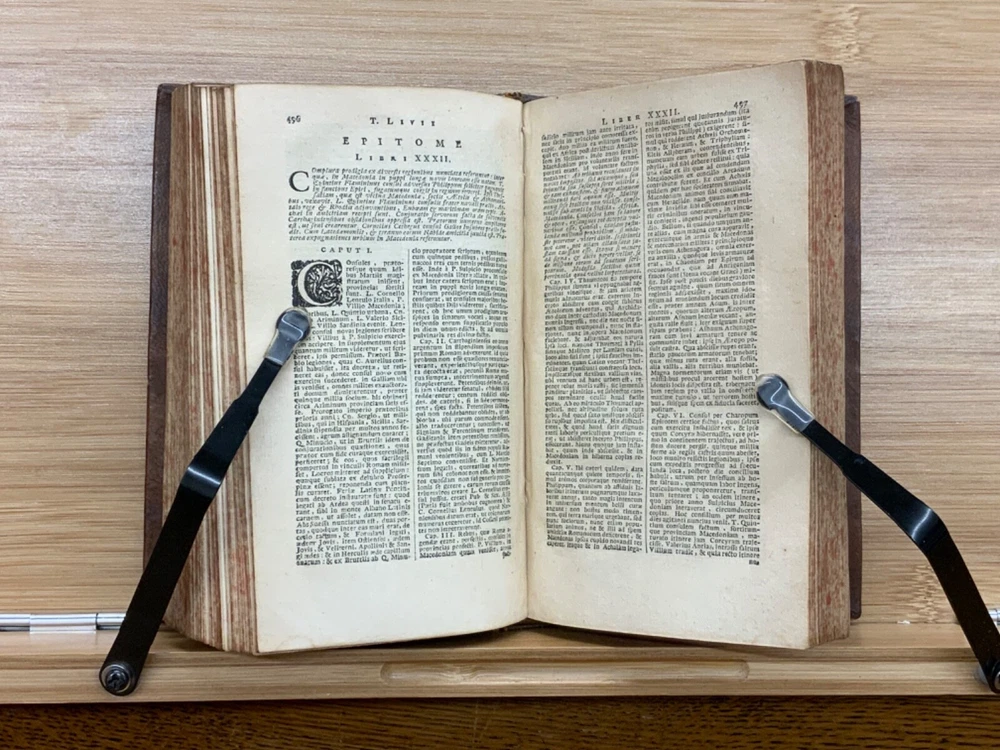 Titi Livii Historiarum, Quod Extat, ex recensione I.F. Gronovii. Amstelodami, Apud Danielem Elzevirium, 1678, First Elzevir Edition, early 19th century binding (i.e. not original), 788 pp, 6 x 3.5", 32mo. In good condition. Leather binding scuffed at edges & bumped/worn at corners. Front hinge fragile, but still intact. Head and tail of leather spine rubbed. Gilt lettering, ruling, and deco on spine soiled in some places, but overall bright and clean. All edges speckled. Engraved title page has caused light off-setting to front fly-leaf. Light toning throughout text-block - some instances of finger-soiling or age-stains. No known previous ownership or marginalia. Binding tight and intact. Please see photos. Elzevir is the name of a family of Dutch booksellers, publishers, and printers of the 17th and early 18th centuries. The duodecimo series of "Elzevirs" became very famous and very desirable among bibliophiles (like ourselves), who sought to obtain the tallest and freshest copies of these books. Although it appears the family was involved with the book trade as early as the 16th century, it is only known for its work in some detail beginning with Lodewijk Elzevir. The fame of the Elzevir editions rests chiefly on the works issued by the firm of Bonaventura and Abraham Elzevir. Their Greek and Hebrew impressions are considered inferior to those of the Aldines and the Estiennes, but their small editions in 12mo, 16mo, and 24mo, for their elegance of design, neatness, clearness, regularity of type, and beauty of paper, cannot be surpassed. Daniel Elzevirium was the son of Bonaventura. Titus Livy (59 BC - AD 17), known in English as Livy, was a Roman historian. He wrote a monumental history of Rome and the Roman people title Ab Urbe Condita, covering the period from the earliest legends of Rome before the traditional founding in 753 BC through the reign of Augustus in Livy's own lifetime. RAREE1678CLMB 11/23 - HK917