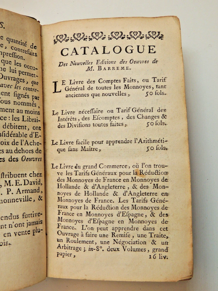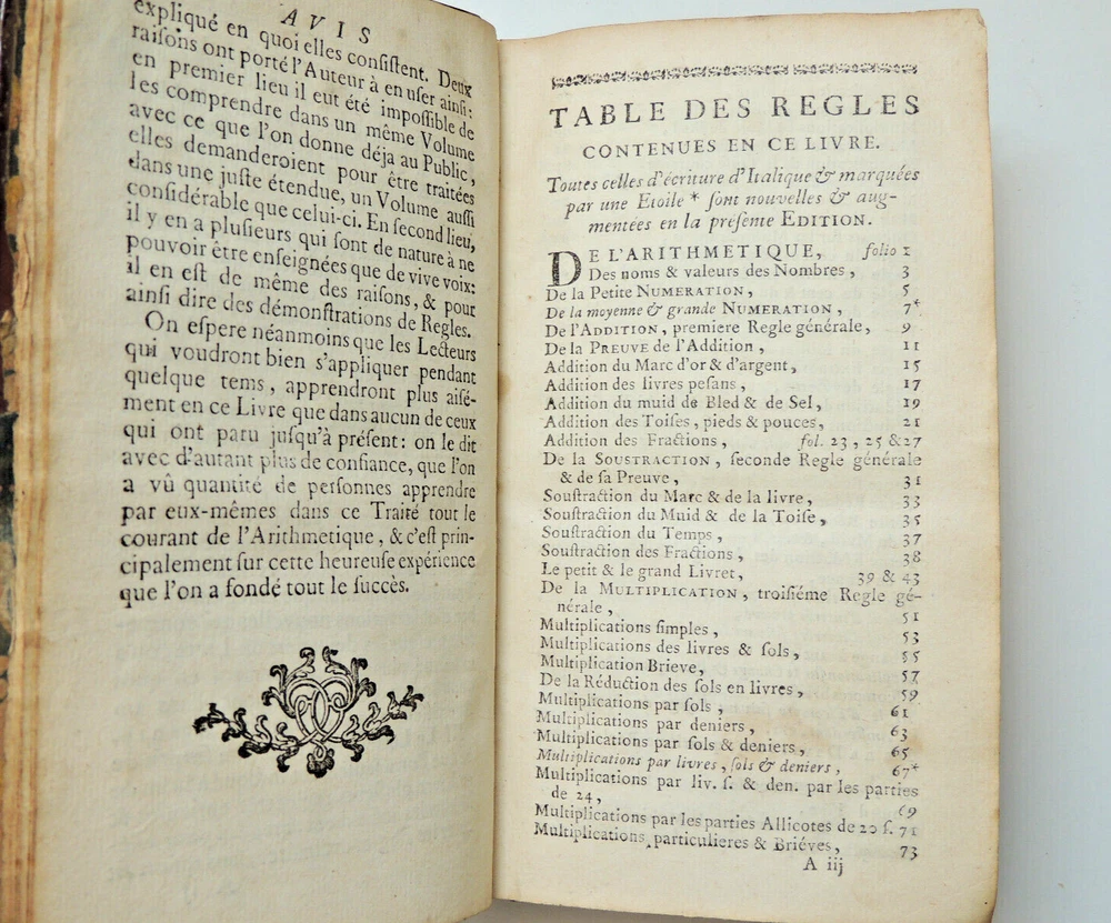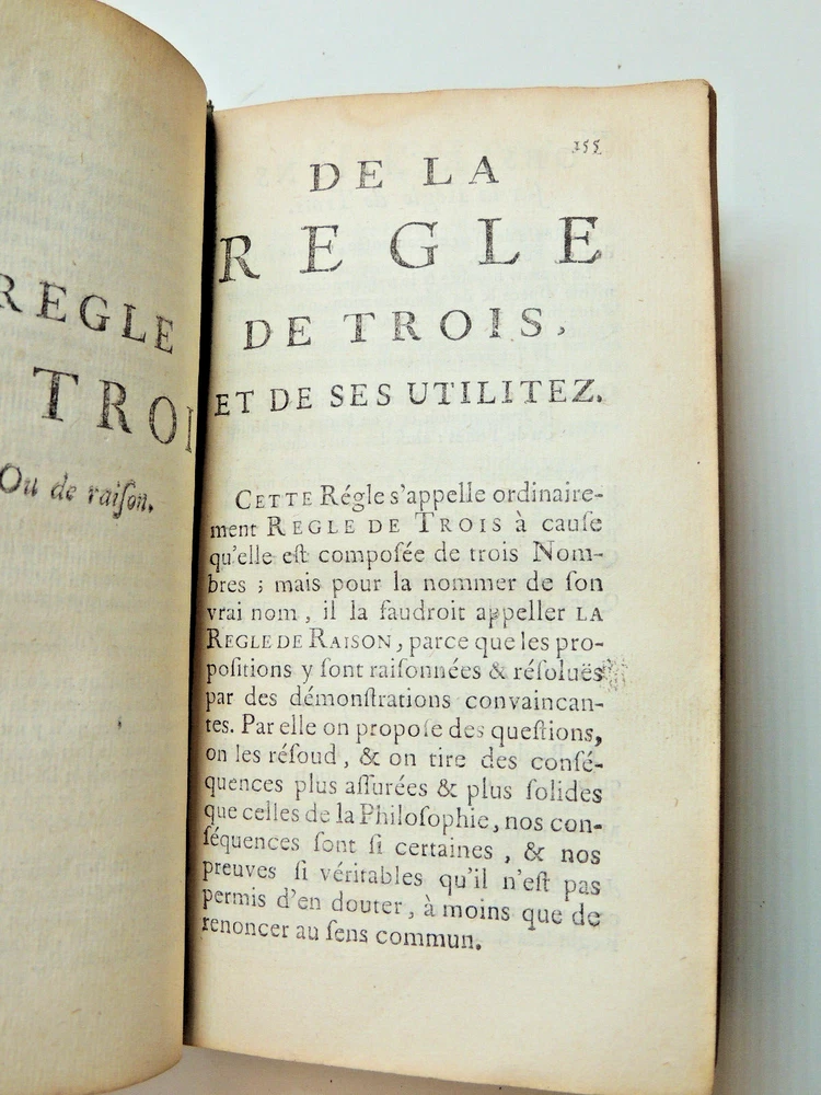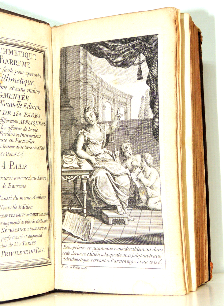1740. Barreme's Arithmetic. New Edition with Geometry Figures The description of this item has been automatically translated. If you have any questions, please feel free to contact us. Barrel arithmetic. New edition with geometry figurines The Arithmetic of Barreme or the Book made for Arithmetic of oneself and without master, increased in this new edition of more than 280 pages or different rules applied to all the affairs of life with their evidence and instructions from each in particular. New increased edition of 190 pages, or different rules of geometry, used for measuring and surveying, & of the arithmetic treaty necessary for surveying and stiff. Contains: elementary operations, currency applications (books, sous and money,), wheat, wine, to the stretch; Discounts, three rule, company rule (merchants, financiers, treasurers and farmers-general, châtelet commissioners etc), barter rule; Fractions and their applications, rules of three lines or proportion rule; Gold and silver alloys. Follow -up of "abbreviated exposure of the new weight and measurement system". This is one of the many editions of the famous treaty, published for the first time in 1677 Complete in a flight in12, 120x70, full basane breaded epoch, hook, beautiful interior condition, 492pp + general table of whole numbers. Ex Libris handwritten 1780 Paris, among booksellers associated with the Barm Book, with Privilege du Roy, 1740 Ref/24/2 The Arithmetic of Barreme or the Book made for Arithmetic of oneself and without master, increased in this new edition of more than 280 pages or different rules applied to all the affairs of life with their evidence and instructions from each in particular. New increased edition of 190 pages, or different rules of geometry, used for measuring and surveying, & of the arithmetic treaty necessary for surveying and stiff. Contains: elementary operations, currency applications (books, sous and money,), wheat, wine, to the stretch; Discounts, three rule, company rule (merchants, financiers, treasurers and farmers-general, châtelet commissioners etc), barter rule; Fractions and their applications, rules of three lines or proportion rule; Gold and silver alloys. Follow -up of "abbreviated exposure Recommended products Provided by Astronomy. Pierre Rousseau. Mars, Mysterious Earth Illustrated with 27 Figures View item Roman Hours with Figures by A. Queroy, Engraved by A. Gusman 1876-1887 View item The Prelude Paul Géraldy New Edition View item Astronomy. CA. Young. The Sun with 85 figures in the text. 1883. EO (rare) View item Astronomy. R. Wavre. Planetary Figures and Geodesy View item 1768. Voltaire. Century of Louis XIV New edition, revised & expanded. II View item 1881. Zoology Lessons Paul Bert. 402 figures in the text View item Humanity. Ridder & Deonna. Art in Greece. 27 plates and 66 figures View item Auteur Baremme Reliure Cuir Langue Français Époque XVIIIème Sujet Encyclopédies