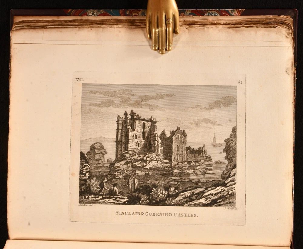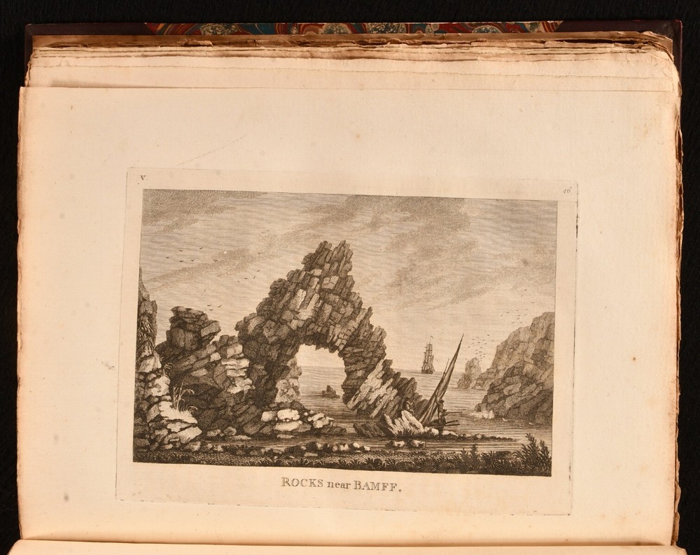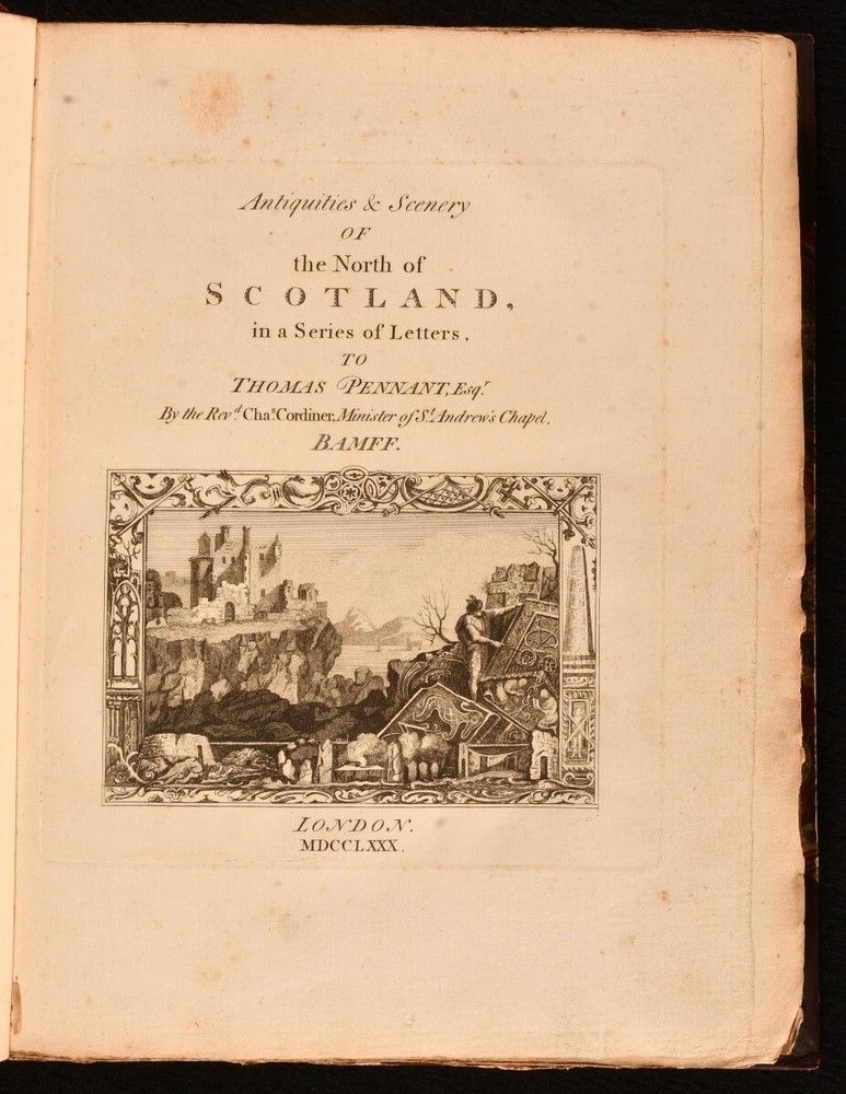 Click here to see our other books! Antiquities & Scenery of the North of Scotland Charles Cordiner 1780 Not Stated : London 10.5" by 8.5" [2], 173, [11pp] SUMMARY A nice first edition copy of Charles Cordiner's topographical exploration of Scotland, complete with illustrations. First Edition,Illustrated,Leather Binding Overall Condition: Very Good This book weighs 2 KG when packed UK Postage: £ 3.99 US Postage: £ 29.99 EU Postage : £ 21.99 European Postage: £ 23.99 Asia Postage: £ 37.99 Worldwide Postage: £ 38.99 DESCRIPTION The first edition. Illustrated with an engraved title, one folding plate, and twenty-one plates. A series of letters by Charles Cordiner, written as he was travelling around the North of Scotland. These letters look into the antiquities, history, and beautiful scenery of the county. This volume includes a total of fourteen letters dated 1776. Cordiner wrote these letters to the noted antiquary Thomas Pennant. Collated, complete. CONDITION In a half calf binding with marbled paper to the boards. Externally, generally smart, a little rubbed. Spine is lightly faded. Small crack to the head of the front joint and to the head and tail of the rear joint. Spots to the endpapers. Bookseller's label to the front paste down. Internally, firmly bound. Pages are lightly age-toned and generally clean with scattered spots. Overall Condition: Very Good GLOSSARY OF TERMS Overall Condition (Dustwrapper condition rating is shown after that for the book itself, where a dustwrapper is present) Fine - Very well preserved copy showing very little wear Very Good Indeed - Only one or two minor faults, really a very attractive copy Very Good - Quite a wide term meaning no major faults but probably several smaller ones often expected given the age of the book, but still a respectable copy Good - Meaning not very good. Some more serious faults as will be described in the condition report under 'condition' Good Only - Meaning one or more faults that could really do with repair Fair - As with good only above but with other faults leaving a compromised copy even after repair Poor - Really bad and possibly seriously incomplete. We only sell books in this condition where their rarity or value makes them attractive none the less. Major defects will be described. GUARANTEE We offer a full money back guarantee on our descriptions. Please ask for details and conditions. We prefer PAYPAL. If you pay via PAYPAL we will post the item off the same or the next working day with the postage you have selected. Please note we cannot accept USD cheques