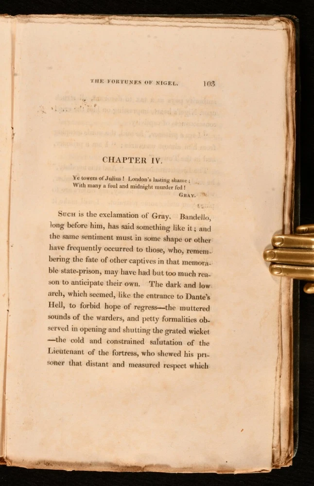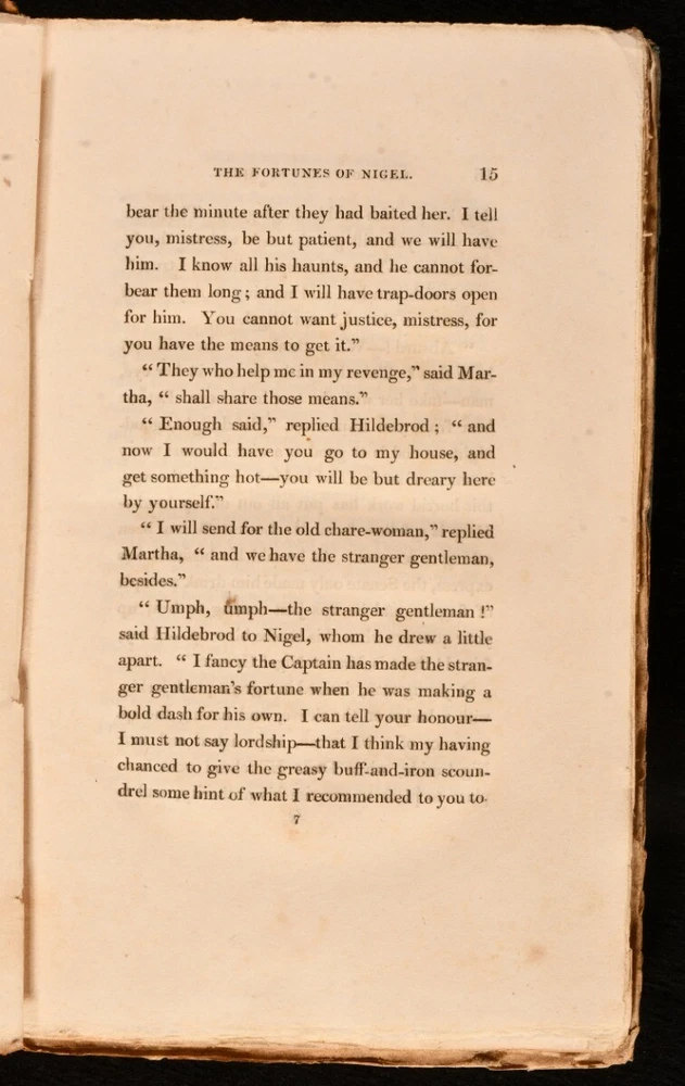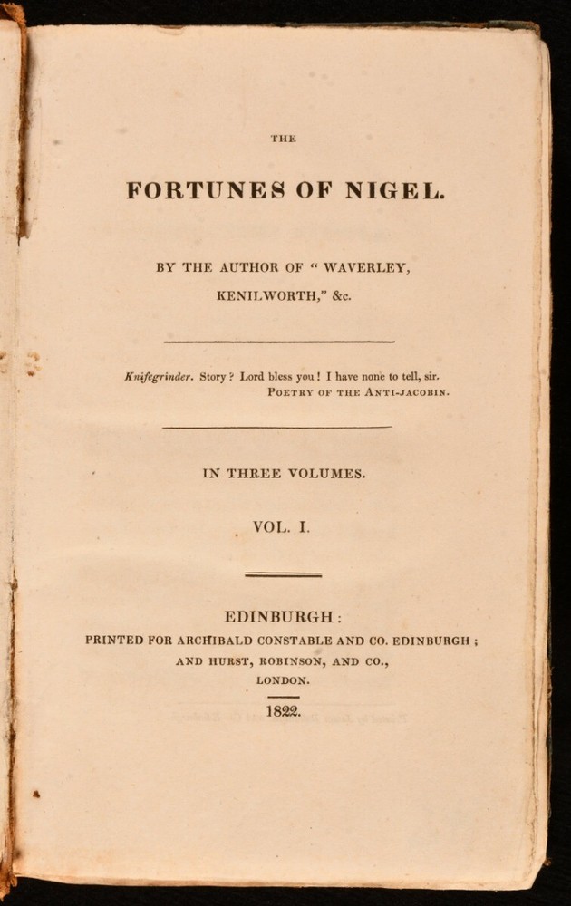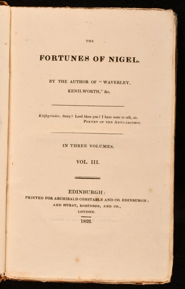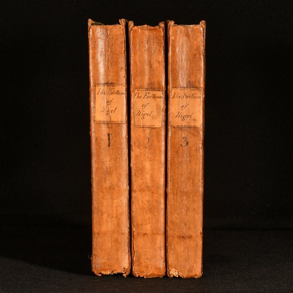 Click here to see our other books! The Fortunes of Nigel Sir Walter Scott 1822 Archibald Constable and Co; Hurst, Robinson & Co : Edinburgh; London 8" by 5" [4], xlviii, 313; [4], 334; [4], 349, [1], 2, 5-6, 3-4pp SUMMARY The first edition of this popular historical fiction novel by Walter Scott, set in London during the reign of King James VI/I. First Edition,Leather Binding Overall Condition: Good This book weighs 1.5 KG when packed UK Postage: £ 3.99 US Postage: £ 23.99 EU Postage : £ 18.99 European Postage: £ 19.99 Asia Postage: £ 31.99 Worldwide Postage: £ 32.99 DESCRIPTION The first edition. Complete in three volumes. Half-title present to each volume. Six pages of adverts to the rear of Volume III, misbound with the pagination reading 1-2, 5-6, 3-4. 'The Fortunes of Nigel' is one of Sir Walter Scott's popular historical novel. Set during the seventeenth century between 1623 and 1624, the novel follows the young nobleman, Nigel Olifaunt, Lord Glenvarloch, on his journey to London to request to the King that he repay his father's loan. Chaotic court life is presented whilst Olifaunt finds his place on earth, making enemies along the way. Walter Scott is best known for his historical novels and poems, including 'Waverley', 'Ivanhoe', and 'The Lady of the Lake'. Prior owner's ink inscription to the recto of the front endpapers. CONDITION In a quarter calf binding with paper to the boards. Externally, worn. Front board of Volume I may detach, even with careful handling. Bumping to the extremities. A small amount of loss to the head and tail of the spines. Numerical ink to the spines. Light rubbing and marks to the boards and spines. Crack to the head and tail of the rear joint and to the head of the spine of Volume I. Crack to the head and tail of the joints of Volume II and to the front joint of Volume III, rear joint of Volume III is starting. A small amount of loss to the front joint of Volume II. Remnants of a label to the head of the front joint of Volume III. Rear hinge of Volume I is strained. Rear hinge of Volume II is starting. Prior owner's ink inscription to the recto of the front endpapers. Internally, generally firmly bound. Pages are lightly age-toned and generally clean with scattered spots. Pages 307-310 of Volume I are detaching. Overall Condition: Good GLOSSARY OF TERMS Overall Condition (Dustwrapper condition rating is shown after that for the book itself, where a dustwrapper is present) Fine - Very well preserved copy showing very little wear Very Good Indeed - Only one or two minor faults, really a very attractive copy Very Good - Quite a wide term meaning no major faults but probably several smaller ones often expected given the age of the book, but still a respectable copy Good - Meaning not very good. Some more serious faults as will be described in the condition report under 'condition' Good Only - Meaning one or more faults that could really do with repair Fair - As with good only above but with other faults leaving a compromised copy even after repair Poor - Really bad and possibly seriously incomplete. We only sell books in this condition where their rarity or value makes them attractive none the less. Major defects will be described. GUARANTEE We offer a full money back guarantee on our descriptions. Please ask for details and conditions. We prefer PAYPAL. If you pay via PAYPAL we will post the item off the same or the next working day with the postage you have selected. Please note we cannot accept USD cheques
