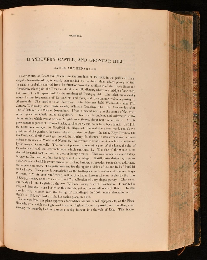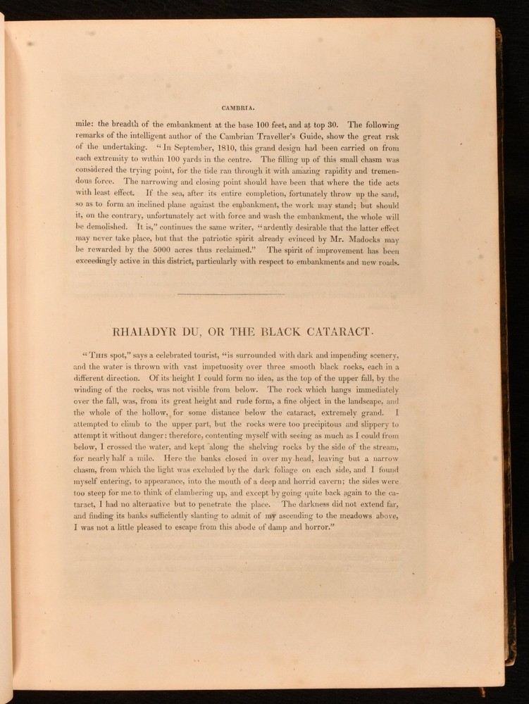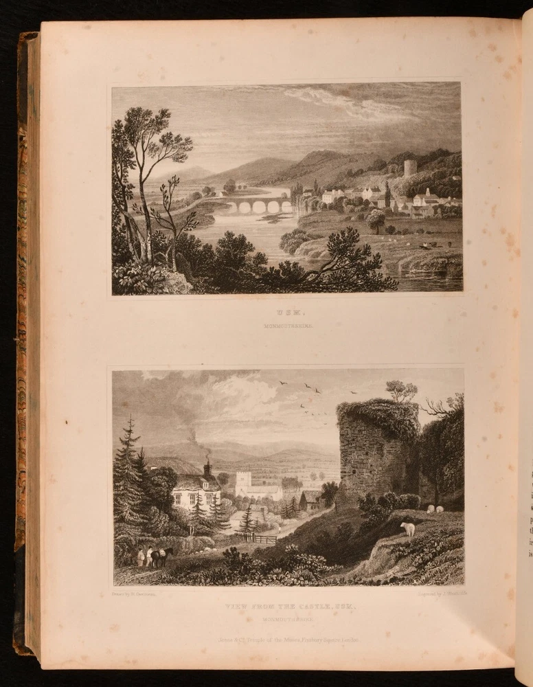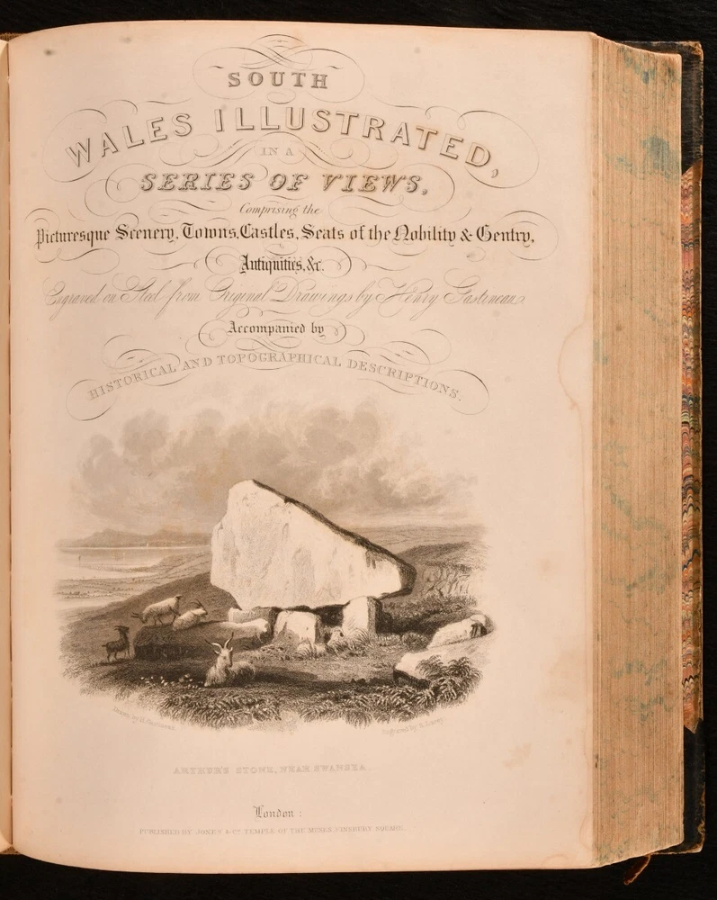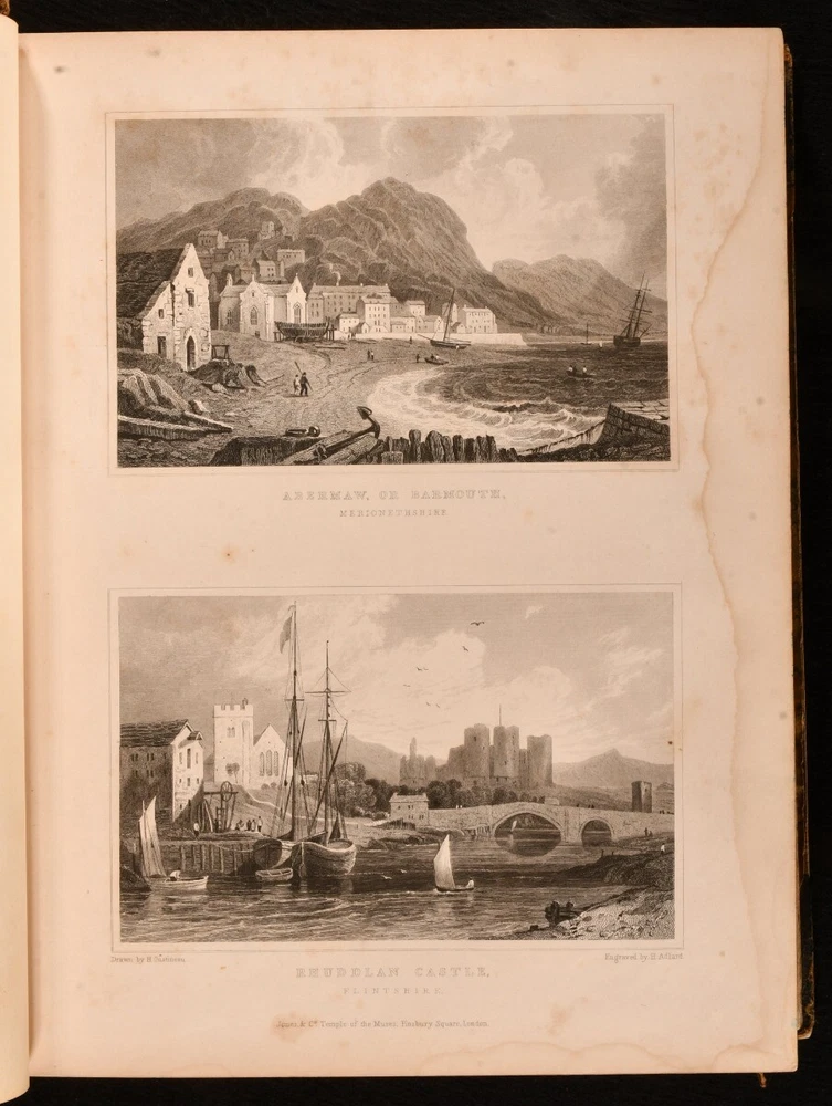 Click here to see our other books! North & South Wales Illustrated in a Series of Views: Comprising the Picturesque Scenery, Towns, Castles, Seats of the Nobility & Gentry, Antiquities &c. Henry Gastineau 1830 Jones and Co. : London 11" by 8.5" 18, unpaginated SUMMARY A beautifully illustrated work on Wales, with two volumes bound in one. Illustrated,Leather Binding Overall Condition: Good This book weighs 3 KG when packed UK Postage: £ 3.99 US Postage: £ 36.99 EU Postage : £ 25.99 European Postage: £ 27.99 Asia Postage: £ 47.99 Worldwide Postage: £ 69.99 DESCRIPTION Two volumes bound in one. Dated and informed by Swansea University Libraries. A collection of illustrations engraved on steel from original drawings, accompanied by historical and topographical descriptions. With commentary on various towns, buildings, residents, and archaeological findings from the areas explored. Volume one is illustrated with a vignette, frontispiece, and forty-four plates. Volume two is illustrated with a vignette and sixty-six plates. Written and illustrated by Henry Gastineau, an English engraver and prolific watercolourist. CONDITION Bound in half calf with patterned boards. Externally, sound with rubbing and wear resulting in light loss to the extremities. Fading to the spine and marks to the boards. Loss to the head of the spine. Front hinge starting but firm. Internally, firmly bound. Pages are very bright with light age toning to the extremities. Tide marks and light spotting to most of the plates. The odd pencil mark to the contents pages. Overall Condition: Good GLOSSARY OF TERMS Overall Condition (Dustwrapper condition rating is shown after that for the book itself, where a dustwrapper is present) Fine - Very well preserved copy showing very little wear Very Good Indeed - Only one or two minor faults, really a very attractive copy Very Good - Quite a wide term meaning no major faults but probably several smaller ones often expected given the age of the book, but still a respectable copy Good - Meaning not very good. Some more serious faults as will be described in the condition report under 'condition' Good Only - Meaning one or more faults that could really do with repair Fair - As with good only above but with other faults leaving a compromised copy even after repair Poor - Really bad and possibly seriously incomplete. We only sell books in this condition where their rarity or value makes them attractive none the less. Major defects will be described. GUARANTEE We offer a full money back guarantee on our descriptions. Please ask for details and conditions. We prefer PAYPAL. If you pay via PAYPAL we will post the item off the same or the next working day with the postage you have selected. Please note we cannot accept USD cheques