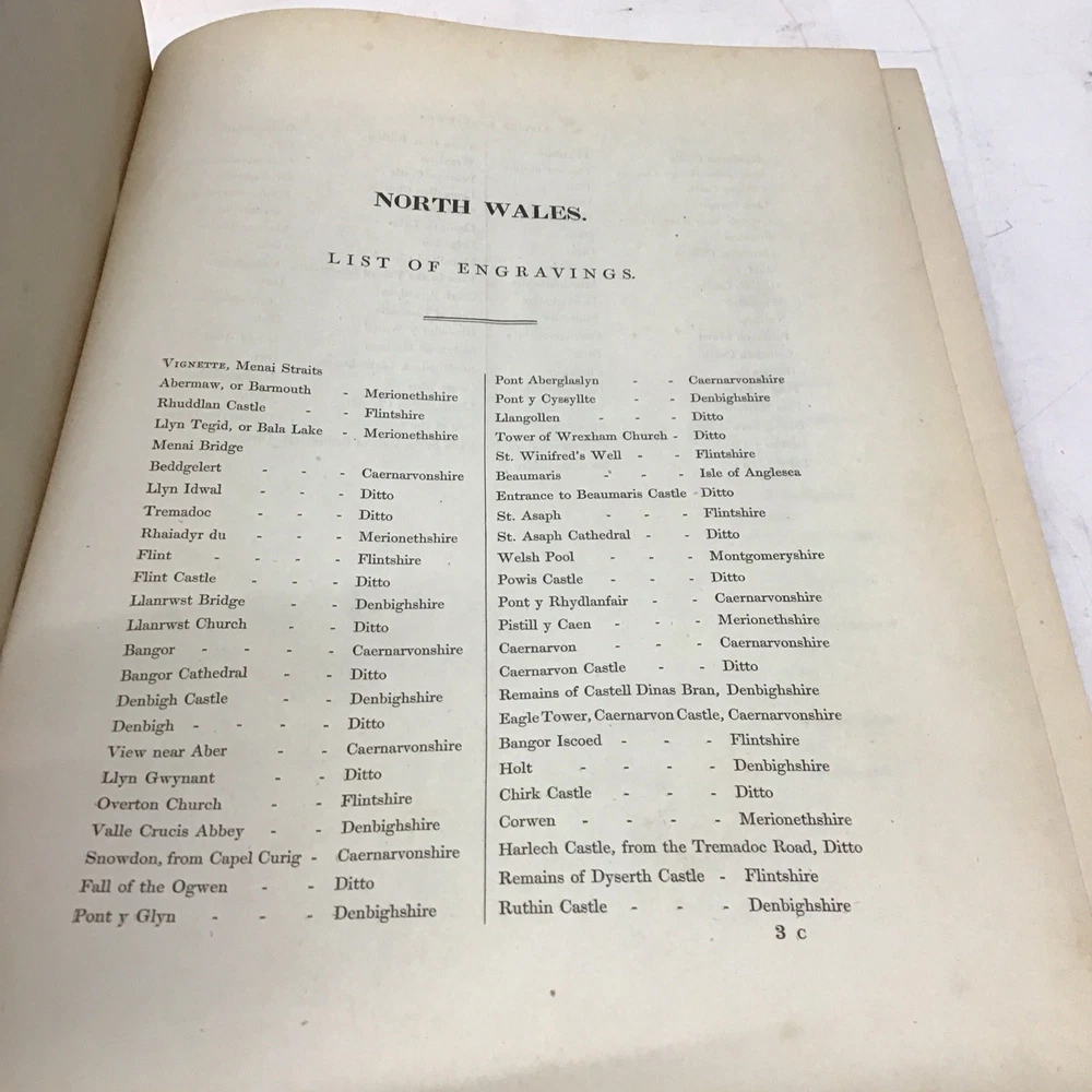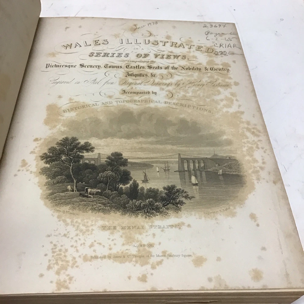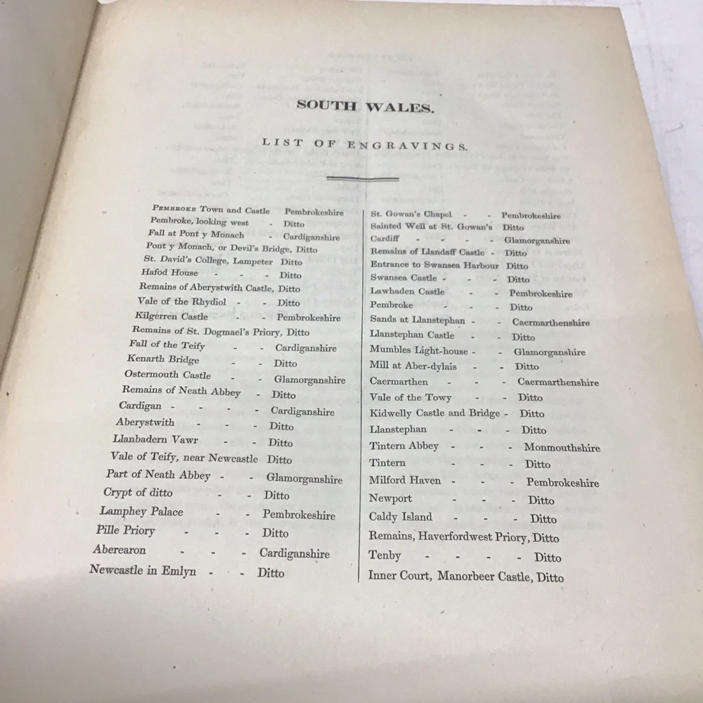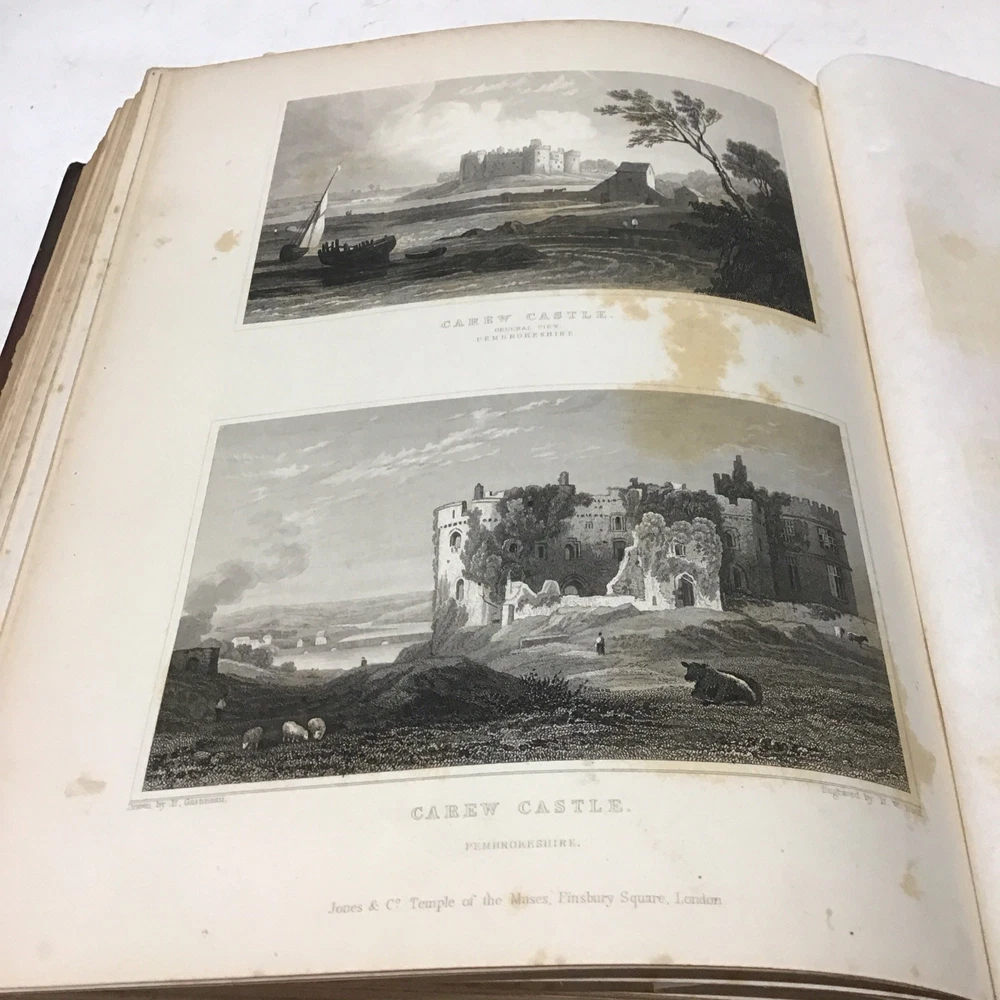 This is a rare and collectible book about Wales, published in 1830 by Jones & Co. Temple of the Muses in London. The author, Henry Gastineau, presents a series of views and illustrations of the country, making it an ideal read for those interested in the history and culture of Wales. The binding of this first edition book is made of leather and hardcover, ensuring its durability and longevity. The book is written in English and is perfect for collectors of antiquarian and collectible books. Its special attributes, including being illustrated and a first edition, make it a valuable addition to any collection. If you're interested in the topic of Wales, this book is a must-have for you. Wales illustrated: in a series of views, comprising the picturesque scenery, towns, castles, seats of the nobility & gentry, antiquities, & c. engraved on steel from original drawings by Henry Gastineau accompanied by historical and topographical descriptions. GASTINEAU, Henry Published by Jones & Co. Temple of the Muses, Finsbury Square, 1830 Size 9.1/8” x 11” Covers have wear as seen in pictures being 195 years old. Has marbleized endpapers and there is foxing in this book as seen in pictures and tissue guards have creases and imperfections. See complete list of engravings in table of contents which is pictured. See our other beautiful books. Keep in mind the shipping price also covers handling fees, packaging materials & time, not just postage. See our eBay store for thousands of our other items. B12F