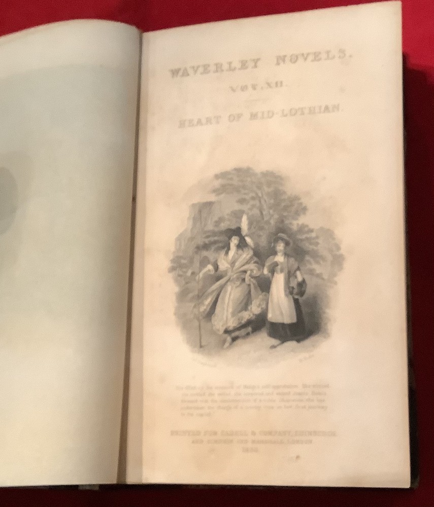 This is a quarter-leather bound original edition of "Midlothian" by Sir Walter Scott, part of the Waverly Novels series published in 1830 by Robert Cadell in London. The book is written in English and is considered literature and fiction. It is one of the volumes in the Waverly Novels series, which are highly collectible and sought after by book enthusiasts. The book was printed in the United Kingdom and reflects European literature of the time. The book is in good condition with no torn bent or loose pages.