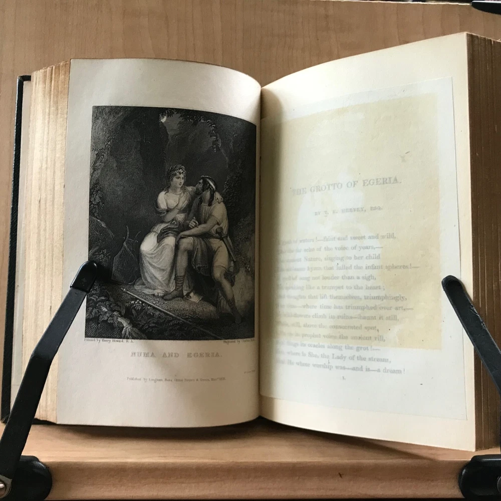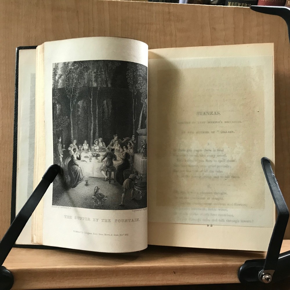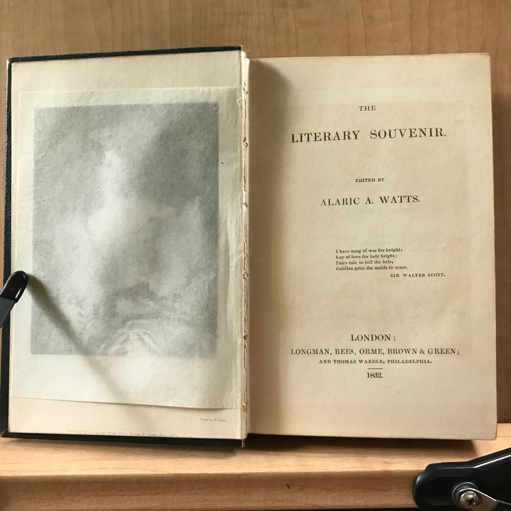 The Literary Souvenir, Edited by Alaric A. Watts, Longman, Rees, Orme, Brown and Green, London, 1832, 344 pp, full leather, 6 x 4”, 18mo. In good condition. Nicely preserved. Light wear to extremities with minor scuffing to corners and end bands. Name plate on front paste down. Front gutter shaken. Light offsetting from plates. Gift presentation on second fly leaf. Minor toning to text block. Tissue guards all intact. All edges gilt. Binding intact. Beautiful! Please see photos. Alaric Alexander Watts (1797-1864) was a British poet and journalist, born in London. His life was dedicated to newspaper creation and editing, and he was seen as a conservative writer. Extremely fine copy of this popular gift book! COLI1832ABEN