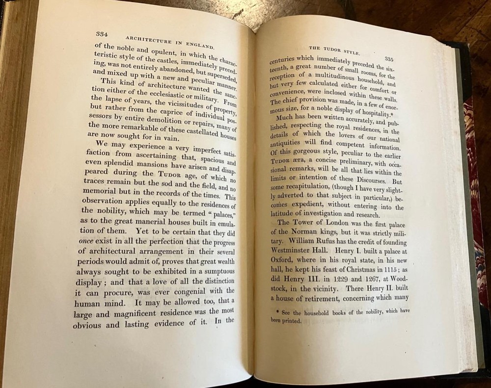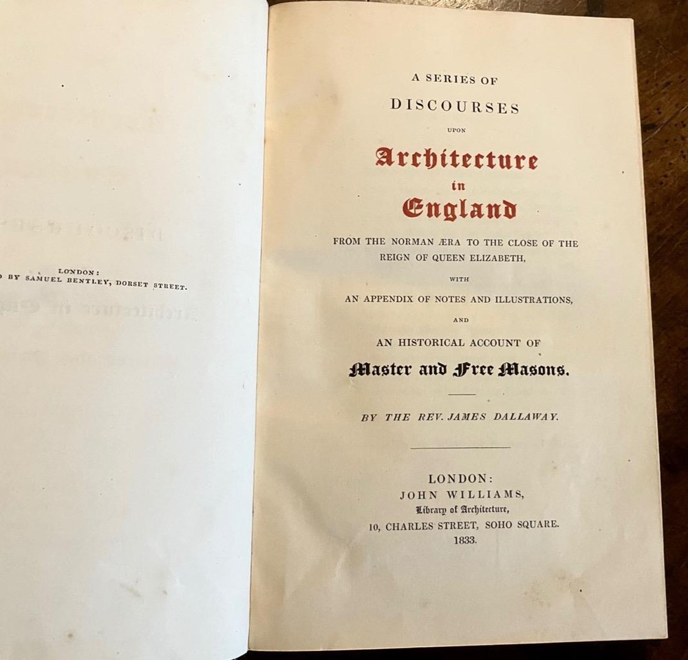 Please scroll down or click on the full description for images & condition report 1833 SERIES OF DISCOURSES On ARCHITECTURE IN ENGLAND Leather Bound By J DALLAWAY 1833 SERIES OF DISCOURSES On ARCHITECTURE IN ENGLAND Leather Bound By J DALLAWAY Click images to enlarge Description A SERIES OF DISCOURES UPON ARCHITECTURE OF ENGLAND FROM THE NORMAN ERA TO THE CLOSE OF THE REIGN OF QUEEN ELIZABETH BY JAMES DALLAWAY PUBLISHED BY JOHN WILLIAMS, LONDON 1833 FIRST EDITION HARDBACK BOUND IN A 19TH CENTURY HALF LEATHER BINDING WITH MARBLED BOARDS, MEASURES APPROX 10 x 6 INCHES WITH 447 PAGES SOME MINOR RUBBING & SLIGHT FADING TO LEATHER SPINE, CORNERS BUMPED, ENDPAPERS & HALF TITLE FOXED, FEW MINOR MARKS TO TITLE PAGE, OVERALL A VERY GOOD COPY WITH BOARDS WELL ATTACHED & TEXT PAGES CLEAN, PLEASE CHECK MY E-BAY SHOP FOR RARE & ANTIQUARIAN BOOKS,MAPS & PRINTS Add me to your Favourite Seller View My Other Items For Sale Get images that make Supersized seem small. Showcase your items with Auctiva's Listing Templates! THE simple solution for eBay sellers. Track Page Views With Auctiva's Counter