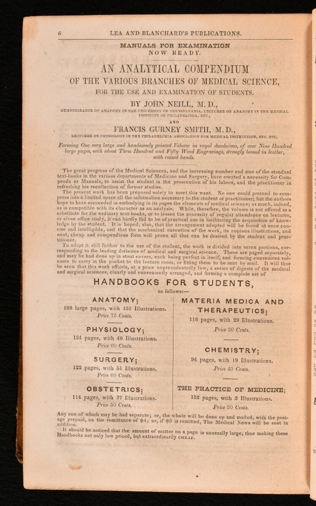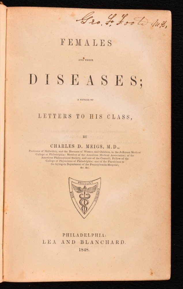 Click here to see our other books! Females and Their Diseases; a Series of Letters to His Class Charles D. Meigs 1848 Lea and Blanchard : Philadelphia 9.5" by 6" [5], vi-xii, [1], 18-670, [4], 3-32pp SUMMARY A very scarce first edition work by Charles Meigs, detailing female diseases and the treatment of such diseases. First Edition,Leather Binding,Very Scarce Overall Condition: Good This book weighs 1.5 KG when packed UK Postage: £ 3.99 US Postage: £ 23.99 EU Postage : £ 18.99 European Postage: £ 19.99 Asia Postage: £ 31.99 Worldwide Postage: £ 32.99 DESCRIPTION The very scarce first edition of this work. A series of forty-four letters describing the detail the issues and treatment of various diseases common to women. By Charles Delucena Meigs, a prominent American obstetrician of the nineteenth century. He is best remembered today for his opposition to obstetrical anesthesia, and for advocating that a doctor's hand could not transmit disease to a patient. Thirty-two pages of adverts to the rear. Errata slip bound to the rear. CONDITION In a full calf binding. Externally, with some rubbing and marks to the boards and spine. Minor bumping to the spine and extremities. Front hinge is starting but firm. Prior owner's ink inscription to the verso to the front endpaper. Internally, firmly bound. Pages are very lightly age-toned and generally clean with some odd spots. Prior owner's ink inscription to the title page. Overall Condition: Good GLOSSARY OF TERMS Overall Condition (Dustwrapper condition rating is shown after that for the book itself, where a dustwrapper is present) Fine - Very well preserved copy showing very little wear Very Good Indeed - Only one or two minor faults, really a very attractive copy Very Good - Quite a wide term meaning no major faults but probably several smaller ones often expected given the age of the book, but still a respectable copy Good - Meaning not very good. Some more serious faults as will be described in the condition report under 'condition' Good Only - Meaning one or more faults that could really do with repair Fair - As with good only above but with other faults leaving a compromised copy even after repair Poor - Really bad and possibly seriously incomplete. We only sell books in this condition where their rarity or value makes them attractive none the less. Major defects will be described. GUARANTEE We offer a full money back guarantee on our descriptions. Please ask for details and conditions. We prefer PAYPAL. If you pay via PAYPAL we will post the item off the same or the next working day with the postage you have selected. Please note we cannot accept USD cheques