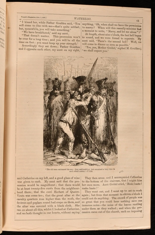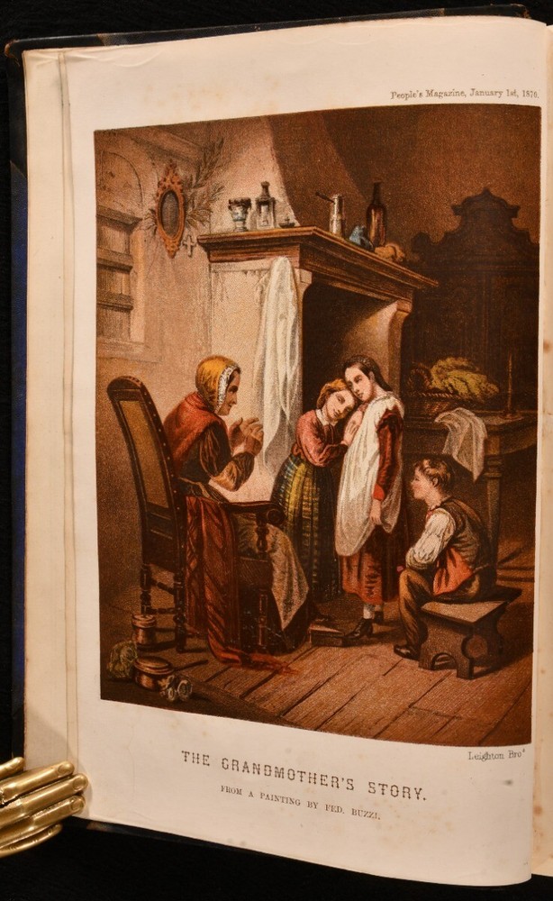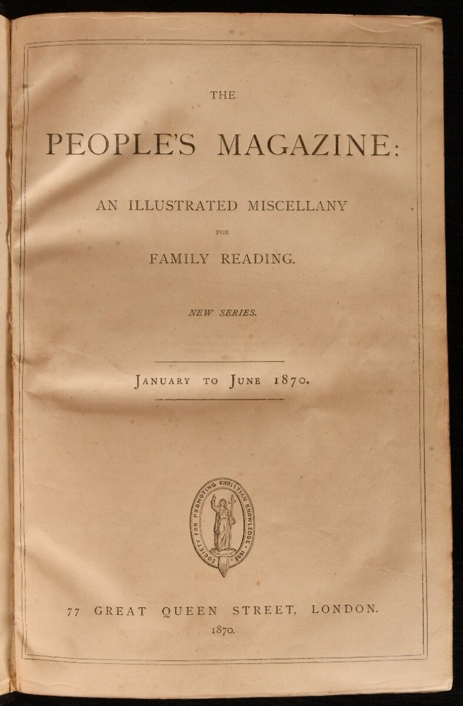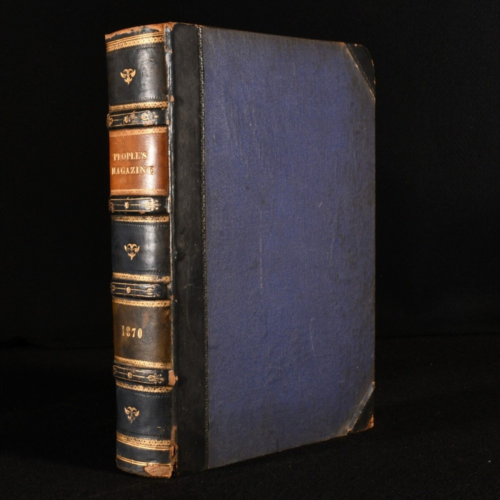 Click here to see our other books! The People' Magazine New Series Two Volumes in One Not stated 1870 Society for Promoting Christian Knowledge : London 11" by 7.5" iv, 380, iv, 380pp SUMMARY The first edition of Volumes V and VI of the new series of The People's Magazine, bound together in leather. Colour Plates,First Edition,Illustrated,Leather Binding,Rebound Overall Condition: Very Good This book weighs 2 KG when packed UK Postage: £ 3.99 US Postage: £ 29.99 EU Postage : £ 21.99 European Postage: £ 23.99 Asia Postage: £ 37.99 Worldwide Postage: £ 38.99 DESCRIPTION First edition of Volumes V and VI of The People's Magazine rebound in half calf binding and cloth boards. An illustrated miscellany for family reading. Bound together in one, Volumes V and VI run across the year of 1870, from January to June and July to December. Illustrated throughout with monochrome engravings and drawings. Also includes ten monochrome plate and five colour lithographs by the Leighton Bros, incomplete as the colour frontispiece to Volume VI is missing. Collated. Prior owner's ink inscription to the first free endpaper dated 1935. CONDITION Rebound in half calf and cloth boards. Externally, smart. There is some bumping to the head and tail of the spine and to the extremities resulting in some slight wear to the leather. Prior owner's ink inscription to the first free endpaper dated 1935. Internally, firmly bound. The pages are bright and clean with the occasional spot. Overall Condition: Very Good GLOSSARY OF TERMS Overall Condition (Dustwrapper condition rating is shown after that for the book itself, where a dustwrapper is present) Fine - Very well preserved copy showing very little wear Very Good Indeed - Only one or two minor faults, really a very attractive copy Very Good - Quite a wide term meaning no major faults but probably several smaller ones often expected given the age of the book, but still a respectable copy Good - Meaning not very good. Some more serious faults as will be described in the condition report under 'condition' Good Only - Meaning one or more faults that could really do with repair Fair - As with good only above but with other faults leaving a compromised copy even after repair Poor - Really bad and possibly seriously incomplete. We only sell books in this condition where their rarity or value makes them attractive none the less. Major defects will be described. GUARANTEE We offer a full money back guarantee on our descriptions. Please ask for details and conditions. We prefer PAYPAL. If you pay via PAYPAL we will post the item off the same or the next working day with the postage you have selected. Please note we cannot accept USD cheques
