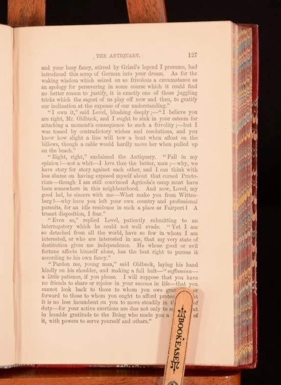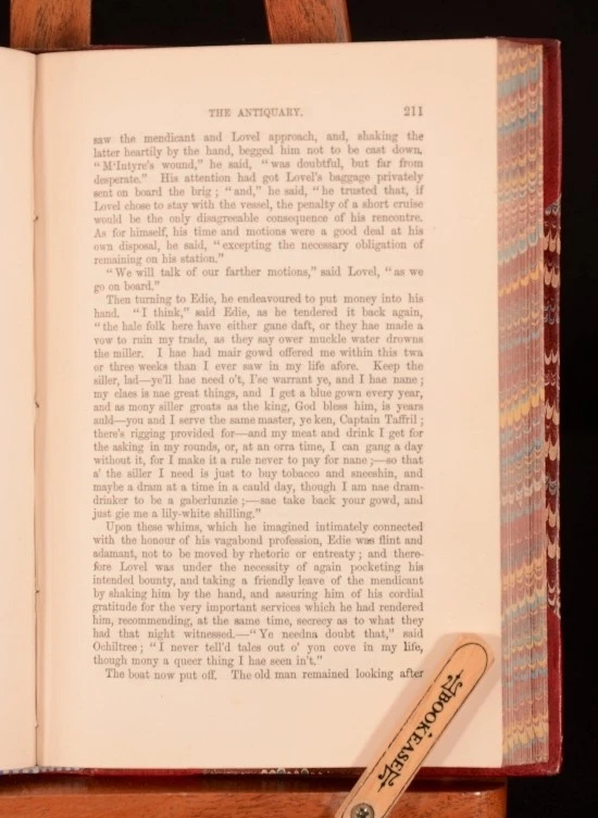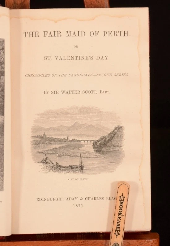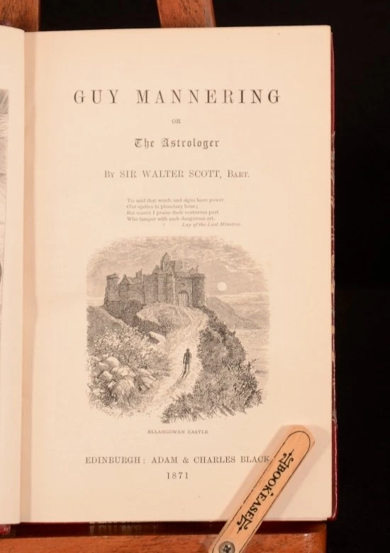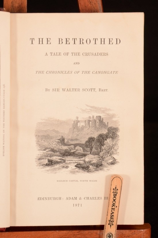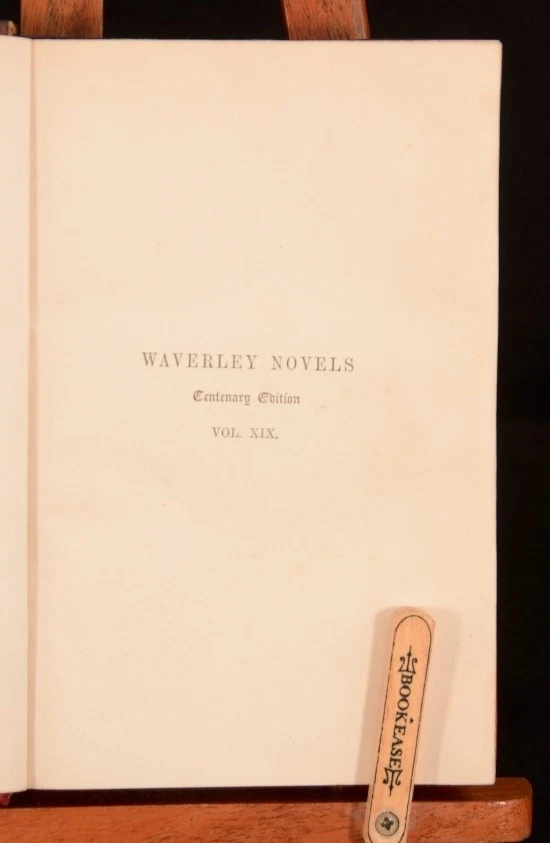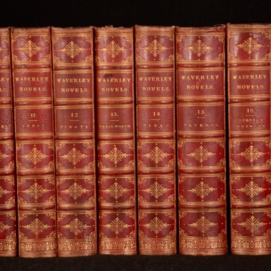 Click here to see our other books! The Waverley Novels Sir Walter Scott 1871 Adam and Charles Black : London 7.5" by 5" 503pp; 447pp; 438pp; 475pp; 452pp; 383pp; 570pp; 337pp; 484pp; 443pp; 463pp; 480pp; 479pp; 500pp; 638pp; 492pp; 445pp; 464pp; 507pp; 419pp; 503pp; 480pp; 490pp; 414pp; 415pp SUMMARY Twenty-five volumes of the centenary edition of the Waverley novels by Sir Walter Scott. Leather Binding Overall Condition: Very Good This book weighs 20 KG when packed UK Postage: £ 4.49 US Postage: £ 89.99 EU Postage : £ 45.99 European Postage: £ 85.99 Asia Postage: £ 169.99 Worldwide Postage: £ 259.99 DESCRIPTION With an illustrated frontispiece to every volume and a facsimile of 'The Marriage Contract of the Bride of Lammermoor' to volume VIII. Collated, complete. The titles included are as follows: Volume I- Waverley Volume II- Guy Mannering Volume III- Antiquary Volume IV- Rob Roy Volume V- Old Mortality Volume VI- A Legend of Montrose and Black Dwarf Volume VII- Heart of Mid-Lothian Volume VIII-Bride of Lammermoor Volume IX- Ivanhoe Volume X- Monastery Volume XI- Abbot Volume XII- Kenilworth Volume XIII- Pirate Volume XIV- Fortunes of Nigel Volume XV- Peveril of the Peak Volume XVI- Quentin Durward Volume XVII- St Ronan's Well Volume XVIII- Redgauntlet Volume XIX- Betrothed and Highland Widow Volume XX- Talisman Volume XXI- Woodstock Volume XXII- Fair Maid of Perth Volume XXIII- Anne of Geierstein Volume XXIV- Count Robert of Paris Volume XXV- Castle Dangerous Surgeons Daughter The Waverley novels are a long series of novels by Sir Walter Scott. They were the most popular and widely read novels in Europe for almost a century. The series was titled Waverley, after the first novel of the series, as Scott did not claim authorship until 1827. Prior to Scott's acknowledgement of his authorship the novels were stated as 'by the author of Waverley' to their title pages. Sir Walter Scott was a historical novelist, playwright and poet. Aside from his writings he was an advocate, judge and legal administrator. CONDITION In half morocco bindings with gilt stamping to the spine. Externally, very smart with some light rubbing to the heads and tails of spines. Rubbing to boards of volume XXV and XV. Internally, volumes VII, IX and XVIII are generally firmly bound but strained in places with the remaining volumes firmly bound. Cockling to pages of volumes XVI-XXV due to damp staining. Pages are generally bright with small tidemarks to the head of pages and outer margins to volumes XI-XXV, does not affect text. Volumes I-X are generally clean. Overall Condition: Very Good GLOSSARY OF TERMS Overall Condition (Dustwrapper condition rating is shown after that for the book itself, where a dustwrapper is present) Fine - Very well preserved copy showing very little wear Very Good Indeed - Only one or two minor faults, really a very attractive copy Very Good - Quite a wide term meaning no major faults but probably several smaller ones often expected given the age of the book, but still a respectable copy Good - Meaning not very good. Some more serious faults as will be described in the condition report under 'condition' Good Only - Meaning one or more faults that could really do with repair Fair - As with good only above but with other faults leaving a compromised copy even after repair Poor - Really bad and possibly seriously incomplete. We only sell books in this condition where their rarity or value makes them attractive none the less. Major defects will be described. GUARANTEE We offer a full money back guarantee on our descriptions. Please ask for details and conditions. We prefer PAYPAL. If you pay via PAYPAL we will post the item off the same or the next working day with the postage you have selected. Please note we cannot accept USD cheques