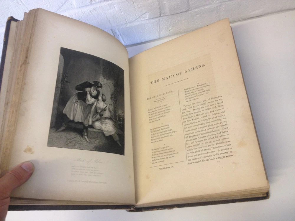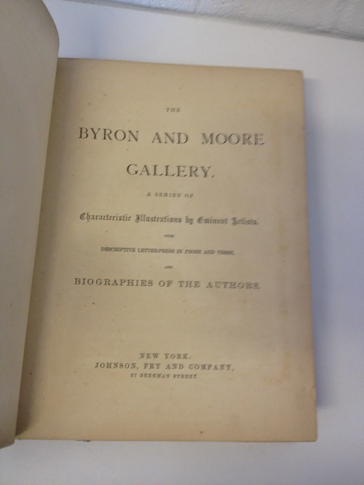 This is a nice antique 1871 The Byron and Moore Gallery A Series of Characteristic Illustrations by Eminent Artists. In pretty nice shape with some minor wear to the exterior with some foxing to the interior and it comes exactly as shown. It measures 8 3/4" x 11 1/4" Keep in mind the shipping price also covers handling fees, packaging materials & time, not just postage. See our eBay store for thousands of our other items. B12E