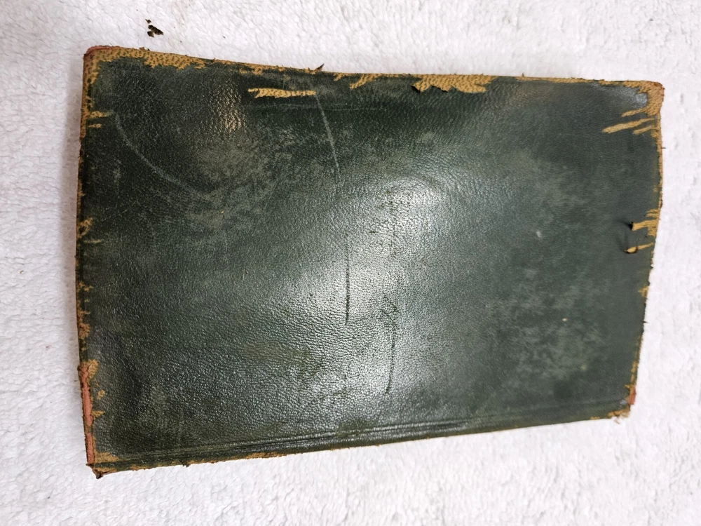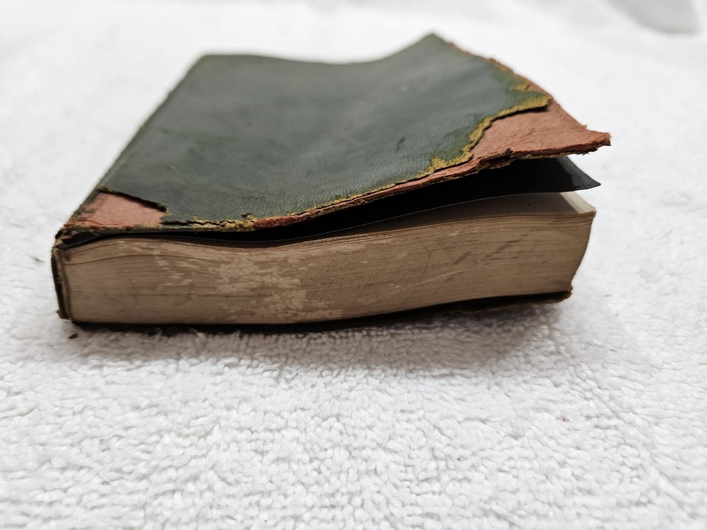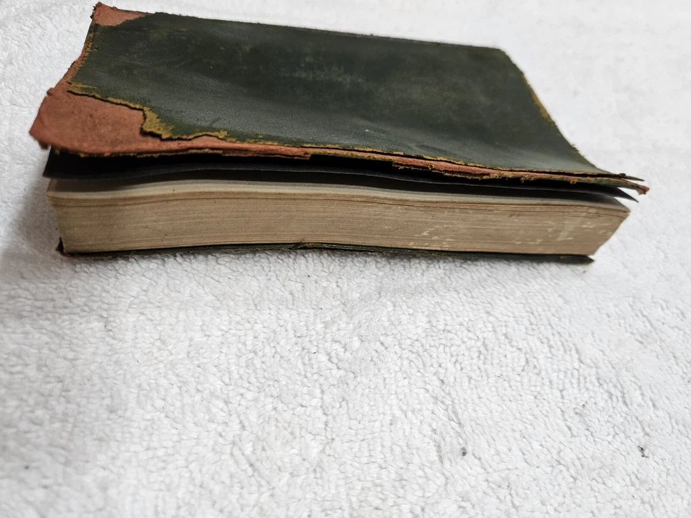 Leather cover is peeling. Fragile condition...