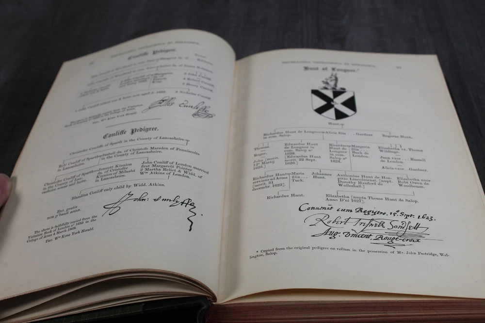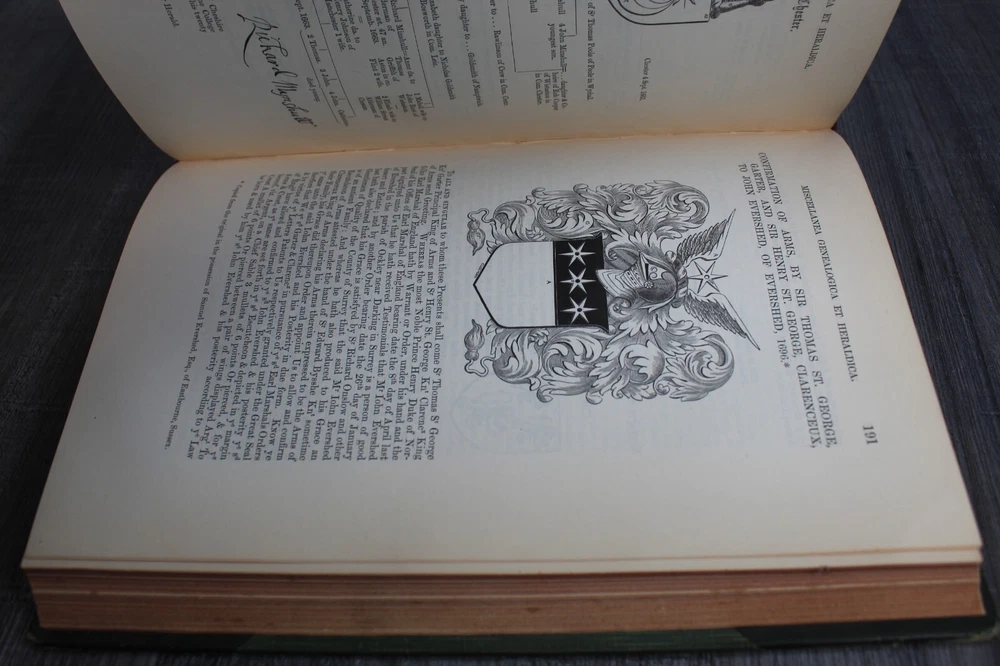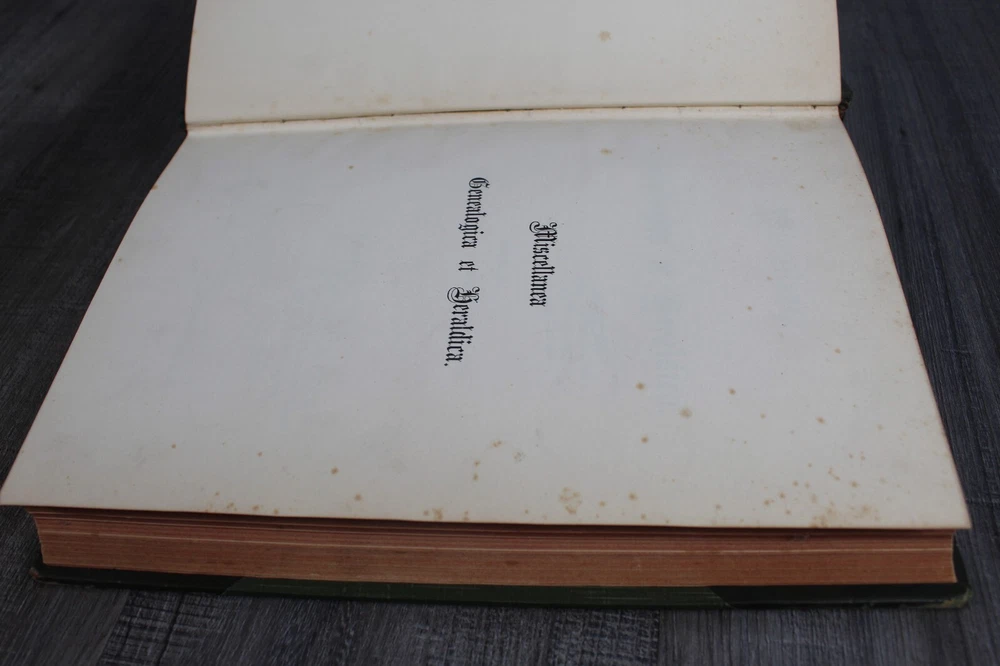1876 Miscellanea genealogica et heraldica : Volume 2 II First Series Howard I don't know much about old books but I acquired this at an estate sale and it looked pretty cool! Its 1876 and has a lot of old coat of arms symbols. The book has some spots in some areas they look like foxing. The front of the book has a library label and some coat of arms symbol with a signature. glued in. Has marks on the cover and the rear cover has a red stain. I ship out fast UPS, USPS or FedEx with tracking! I offer 30 day returns, buyer pays return shipping. I strive for customer satisfaction and make sure to be accurate with my listings so you are happy with your purchase and know exactly what to expect at your doorstep. If you have any issues please be sure to message me before leaving a negative feedback. Thanks for looking and have a wonderful day! A1