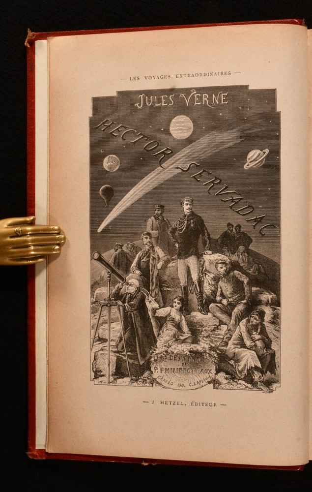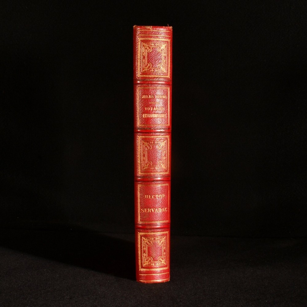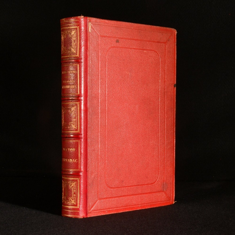 Click here to see our other books! Voyages Extraordinaires: Hector Servadac: Voyages et Aventures a Travers Le Monde Solaire Jules Verne 1878 Bibliotheque d'Education et de Recreation/ J. Hetzel et Cie : Paris 11" by 7.5" 395pp. (8) SUMMARY A smart early edition of Jules Verne's science fiction novel, also known as Off on a Comet; part of his 'Voyages Extraordinaires' series. Early Edition,Illustrated,Leather Binding,Signed Binding Overall Condition: Very Good This book weighs 1.75 KG when packed UK Postage: £ 3.99 US Postage: £ 29.99 EU Postage : £ 21.99 European Postage: £ 23.99 Asia Postage: £ 37.99 Worldwide Postage: £ 38.99 DESCRIPTION An early edition of this work in a quarter morocco and pebbled cloth binding, with moire silk end papers and gilt decoration to the spine. Binder's blind stamp of 'LENEGRE REL' to the boards, referring to the French bookbinder Antoine Lenègre (1818-1867). All edges gilt. Jules Verne (1828-1905) was a French novelist best known for his thrilling adventure series, 'Voyages Extraordinaires'. This included works such as 'Journey to the Center of the Earth', 'Twenty Thousand Leagues Under the Sea' and 'Around the World in Eighty Days'. This work was originally serialised in Magasin d'Éducation and is written in the original French. Titled 'Off on a Comet' in English, this science fiction novel concerns a comet, which picks up thirty-six Europeans from Earth as it continues on its path. Illustrated with drawings by P. Philippoteaux, engraved by LaPlante. An 8-page publisher's catalogue (J) to the rear of the volume. Undated, dated through the advertisements. CONDITION In a quarter morocco binding. Externally smart, with a few small marks to the boards, a small loss of cloth to the front board, some shelf wear to the extremities, and a little rubbing to the head and tail of the spine. Internally, firmly bound. Pages are age toned but clean. Overall Condition: Very Good GLOSSARY OF TERMS Overall Condition (Dustwrapper condition rating is shown after that for the book itself, where a dustwrapper is present) Fine - Very well preserved copy showing very little wear Very Good Indeed - Only one or two minor faults, really a very attractive copy Very Good - Quite a wide term meaning no major faults but probably several smaller ones often expected given the age of the book, but still a respectable copy Good - Meaning not very good. Some more serious faults as will be described in the condition report under 'condition' Good Only - Meaning one or more faults that could really do with repair Fair - As with good only above but with other faults leaving a compromised copy even after repair Poor - Really bad and possibly seriously incomplete. We only sell books in this condition where their rarity or value makes them attractive none the less. Major defects will be described. GUARANTEE We offer a full money back guarantee on our descriptions. Please ask for details and conditions. We prefer PAYPAL. If you pay via PAYPAL we will post the item off the same or the next working day with the postage you have selected. Please note we cannot accept USD cheques