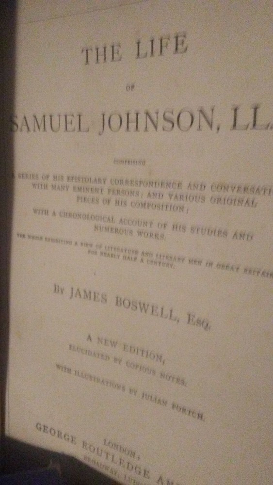 1883 - BOSWELL'S LIFE OF JOHNSON in one vollume leather bound HC very good cond. r3
