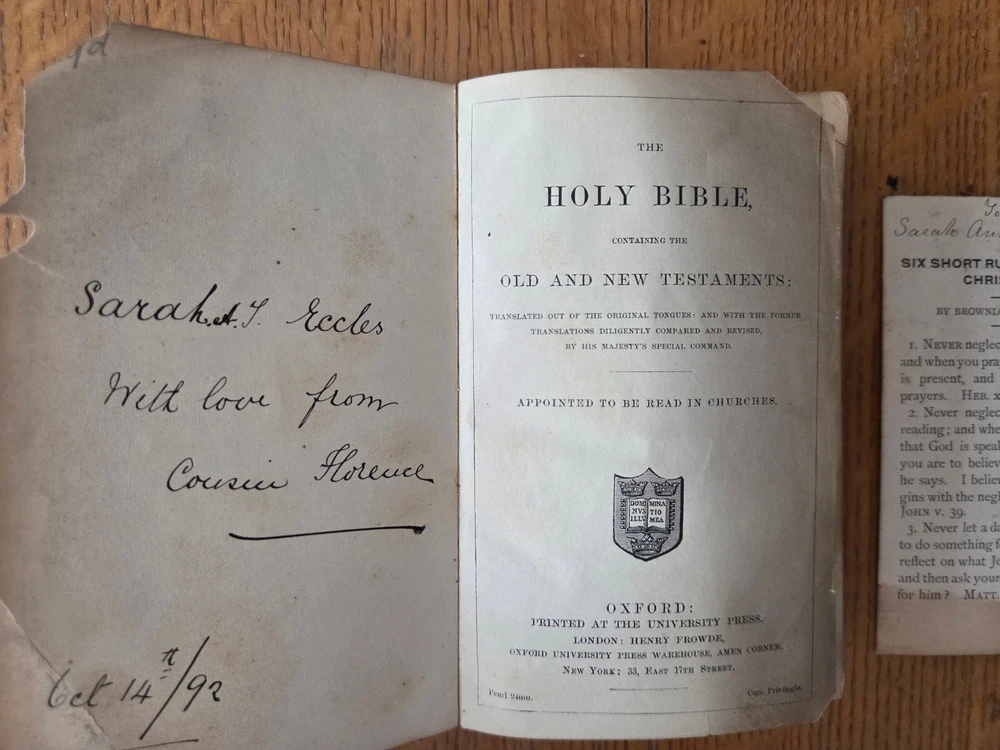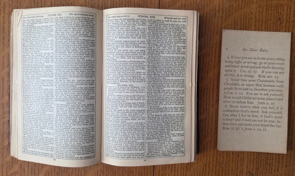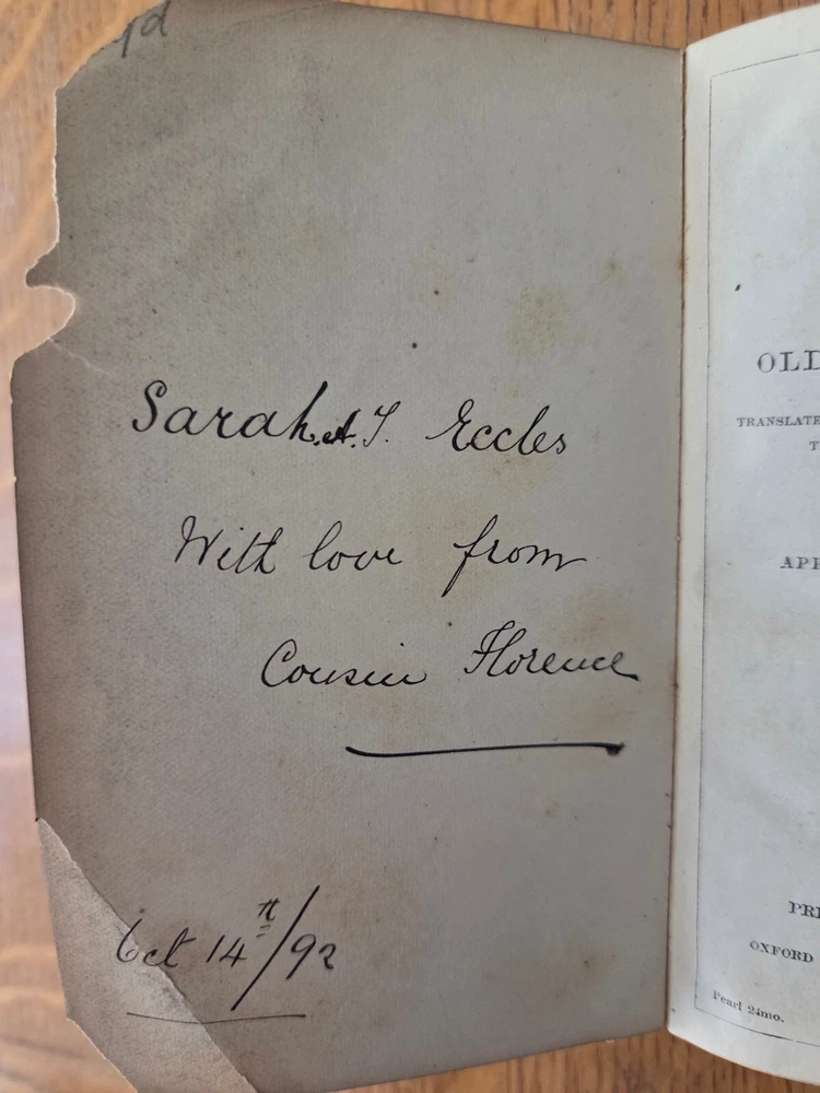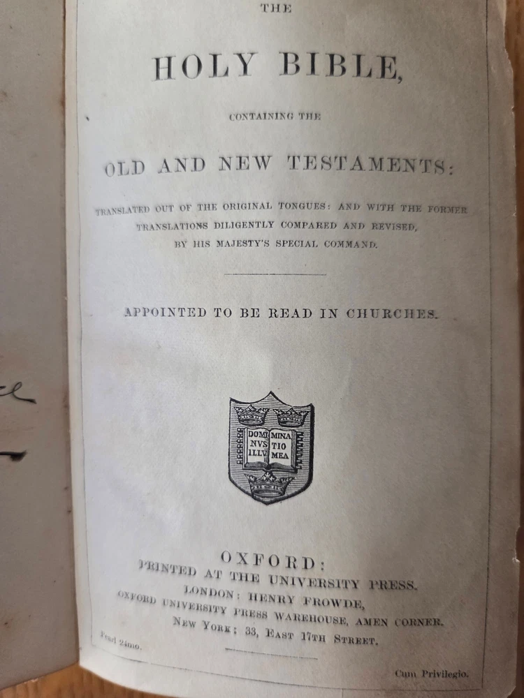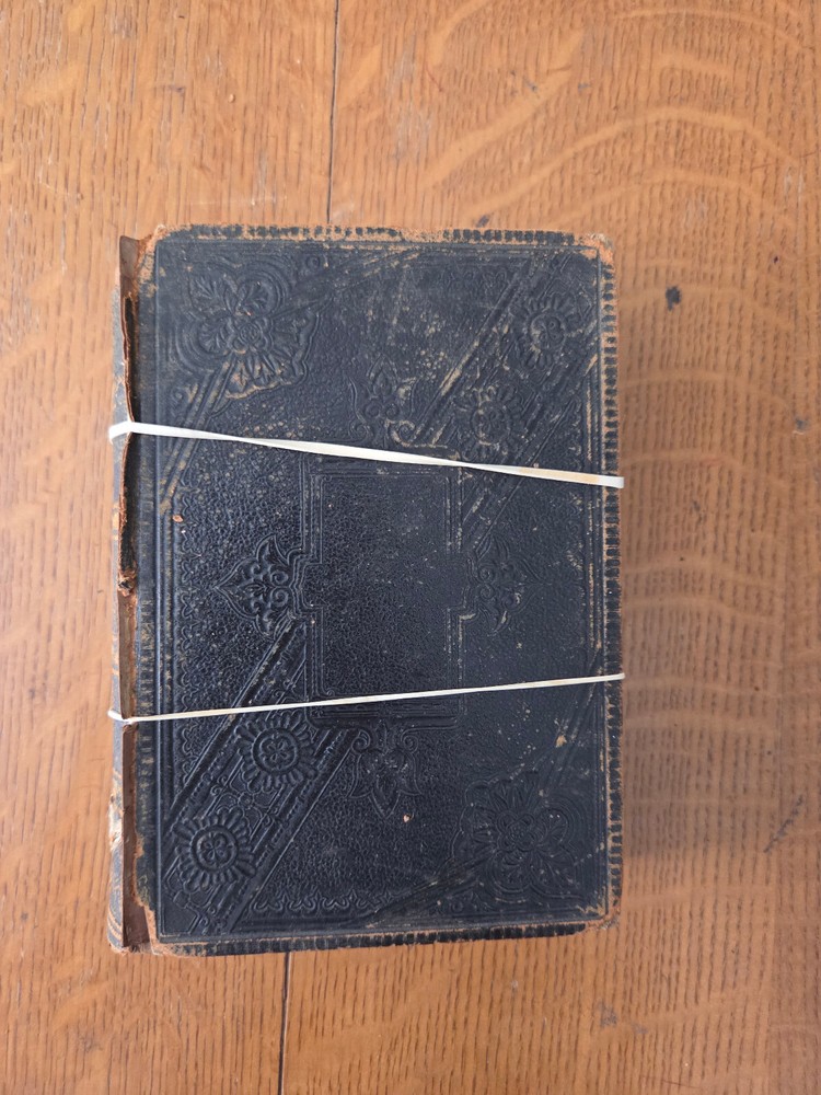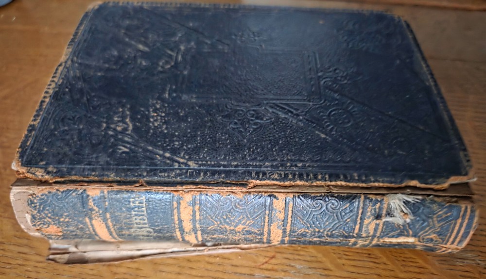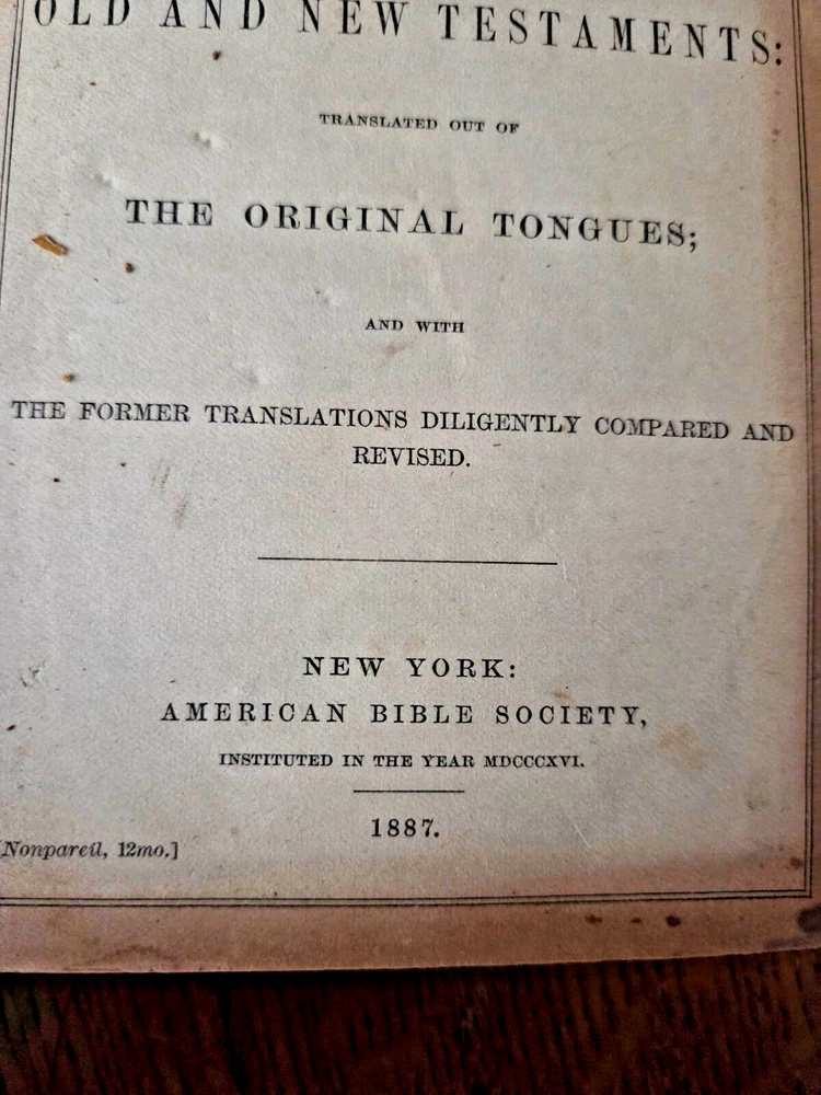 1887 The Holy Bible Old New Testaments American Bible Society Rare 40th Edition Fair condition, the covers are detached or nearly detached along with the end papers. All pages are present and the binding is still functioning fine. Covers can be repaired with glue or tape - now using a rubber band. Owner's inscription/signature in 1892 on the FEP. The text inside is clean.