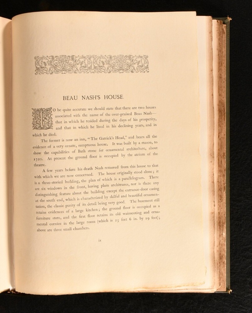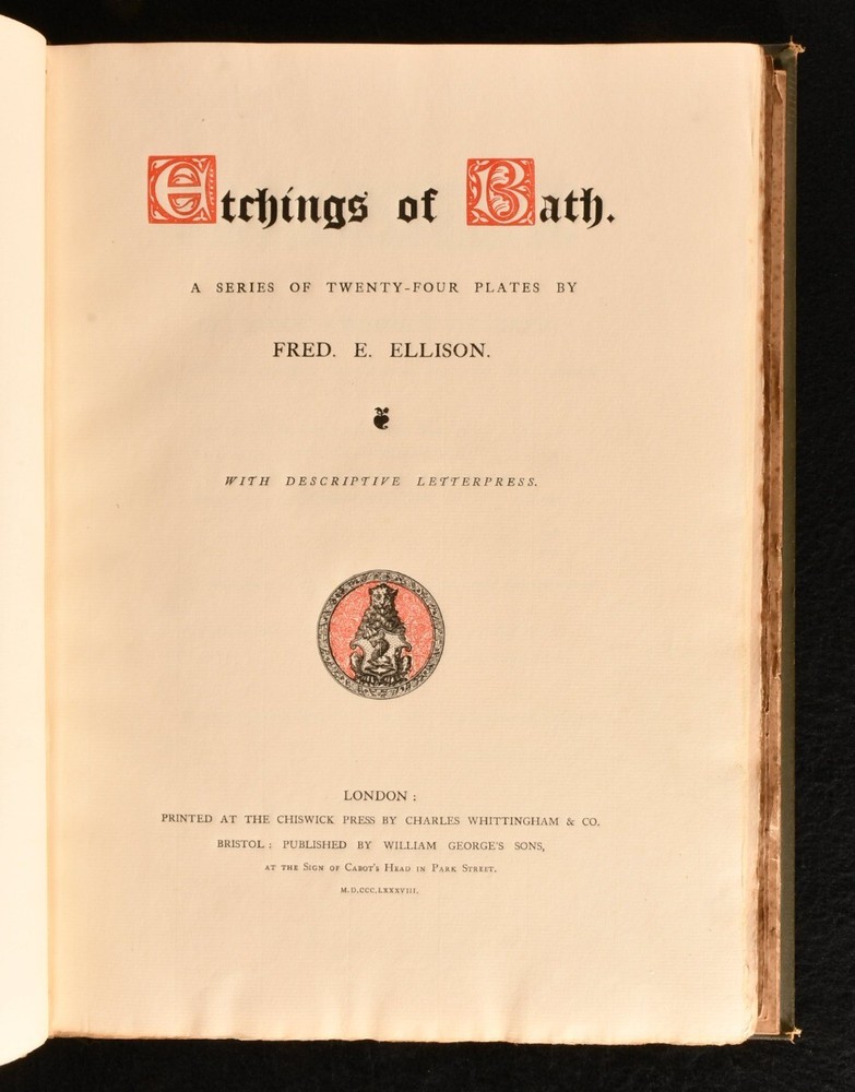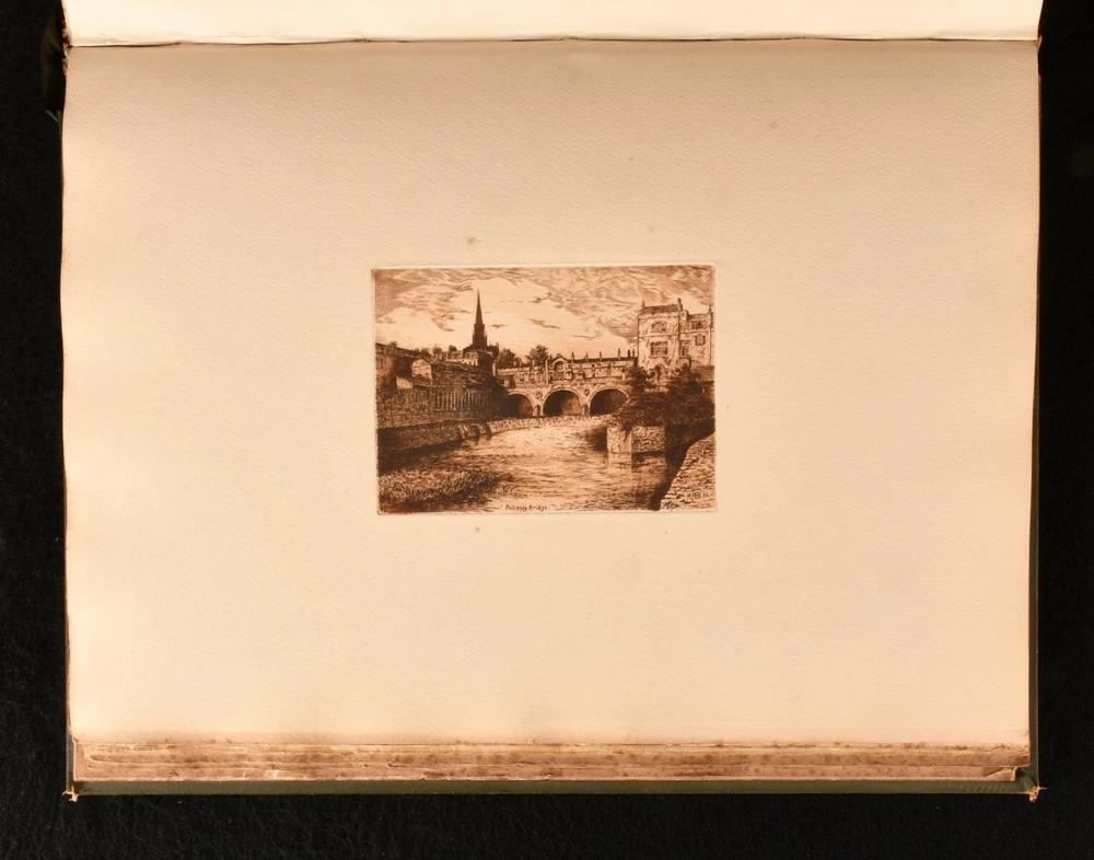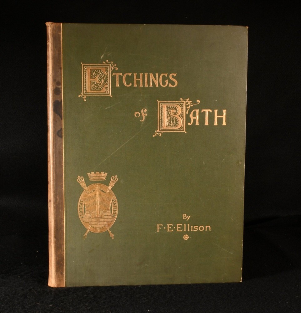 Click here to see our other books! Etchings Of Bath Fred E Ellison 1888 Chiswick Press; Charles Whittingham; William George's Sons : London; Bristol 15" by 12" Unpaginated SUMMARY A scarce, limited edition collection of illustrations regarding the city of Bath. A fantastic collection of drawings which provides a look at historic Bath. First Edition,Illustrated,Limited Edition,Publishers' Original Binding,Scarce Overall Condition: Very Good Indeed This book weighs 1.5 KG when packed UK Postage: £ 3.99 US Postage: £ 23.99 EU Postage : £ 18.99 European Postage: £ 19.99 Asia Postage: £ 31.99 Worldwide Postage: £ 32.99 DESCRIPTION Limited edition, numbered 178 of 250 copies. This work is printed on Whatman's Antique Paper. Hand-numbered to the edition page which explains the entire imprint of this work. A scarce publication. An unusually bright copy of this work. With twenty-four subjects total, including some buildings no longer standing in this historic city. One example of a grand building no longer standing is Nassau Grove, which stood on Orange Grove. Orange Grove, and the house were named after the Prince of Orange's visit. The name of the house was given long after the Prince's visit, due to rumours that he once resided there. It was demolished in 1900 to make way for a hotel. Other locations include Bath Abbey, Beau Nash's House, Prior Park Mansion, Pulteney Bridge, North Parade Bridge, CONDITION In the publisher's original quarter calf binding, with cloth covered boards. Externally, very smart. Light fading to the spine. Internally, firmly bound. Pages are bright with just the occasional light scattered spot. Overall Condition: Very Good Indeed GLOSSARY OF TERMS Overall Condition (Dustwrapper condition rating is shown after that for the book itself, where a dustwrapper is present) Fine - Very well preserved copy showing very little wear Very Good Indeed - Only one or two minor faults, really a very attractive copy Very Good - Quite a wide term meaning no major faults but probably several smaller ones often expected given the age of the book, but still a respectable copy Good - Meaning not very good. Some more serious faults as will be described in the condition report under 'condition' Good Only - Meaning one or more faults that could really do with repair Fair - As with good only above but with other faults leaving a compromised copy even after repair Poor - Really bad and possibly seriously incomplete. We only sell books in this condition where their rarity or value makes them attractive none the less. Major defects will be described. GUARANTEE We offer a full money back guarantee on our descriptions. Please ask for details and conditions. We prefer PAYPAL. If you pay via PAYPAL we will post the item off the same or the next working day with the postage you have selected. Please note we cannot accept USD cheques