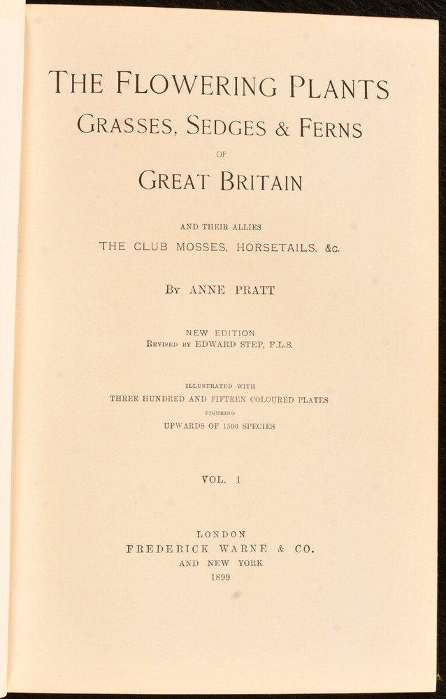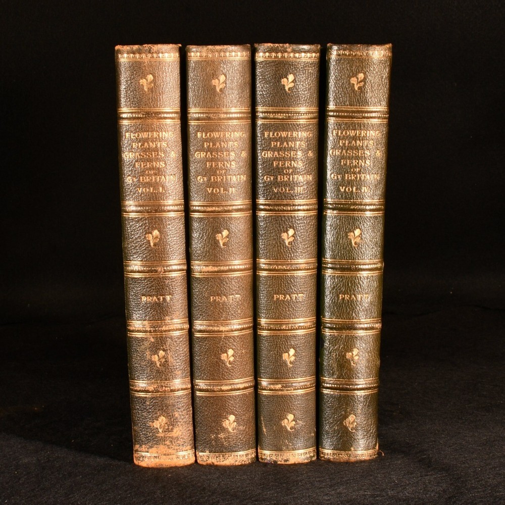 Click here to see our other books! The Flowering Plants, Grasses, Sedges and Ferns of Great Britain and Their Allies the Club Mosses, Horsetails, &c. Anne Pratt 1899-1900 Frederick Warne and Co : London 9.5" by 6.5" xiv, 269; xii, 279; xi, 258; xi, 215pp SUMMARY A beautifully illustrated series of works exploring the flowering plants of Great Britain, from leading Victorian botanical illustrator, Anne Pratt. Colour Plates,Illustrated,Leather Binding Overall Condition: Very Good This book weighs 4 KG when packed UK Postage: £ 4.49 US Postage: £ 39.99 EU Postage : £ 26.99 European Postage: £ 36.99 Asia Postage: £ 65.99 Worldwide Postage: £ 99.99 DESCRIPTION A new edition of this richly illustrated series, complete in four volumes. Uniformly bound in attractive half morocco, with cloth boards and marbled endpapers. Illustrated with seventy-seven plates to volume I; seventy-five to volume II; seventy-nine to volume III, and eighty-eight to volume IV. Collated, complete. 'Flowering Plants' is the magnum opus of botanical and ornithological illustrator and author, Anne Pratt, a project which explores more than 1,500 species, published over the course of a decade. Pratt utilised an affordable method of chromolithography in order to create the wonderful coloured illustrations throughout. The resulting colour plates, of which there are plenty, offer a lovely visual aid throughout the volumes. With examinations of an array of species found in Great Britain, designed to be accessible and used as a standard reference work. With a 'Somerville Prize for Botany' bookplate from South Hampstead High School to the front pastedowns. CONDITION Uniformly bound in half morocco, with cloth boards and marbled endpapers. Externally, very smart. With instances of rubbing to the extremities, heaviest to the spine tails, particularly to Vol I. The odd mark to the boards. With a prize bookplate from South Hampstead High School to the front pastedowns. Overall Condition: Very Good GLOSSARY OF TERMS Overall Condition (Dustwrapper condition rating is shown after that for the book itself, where a dustwrapper is present) Fine - Very well preserved copy showing very little wear Very Good Indeed - Only one or two minor faults, really a very attractive copy Very Good - Quite a wide term meaning no major faults but probably several smaller ones often expected given the age of the book, but still a respectable copy Good - Meaning not very good. Some more serious faults as will be described in the condition report under 'condition' Good Only - Meaning one or more faults that could really do with repair Fair - As with good only above but with other faults leaving a compromised copy even after repair Poor - Really bad and possibly seriously incomplete. We only sell books in this condition where their rarity or value makes them attractive none the less. Major defects will be described. GUARANTEE We offer a full money back guarantee on our descriptions. Please ask for details and conditions. We prefer PAYPAL. If you pay via PAYPAL we will post the item off the same or the next working day with the postage you have selected. Please note we cannot accept USD cheques