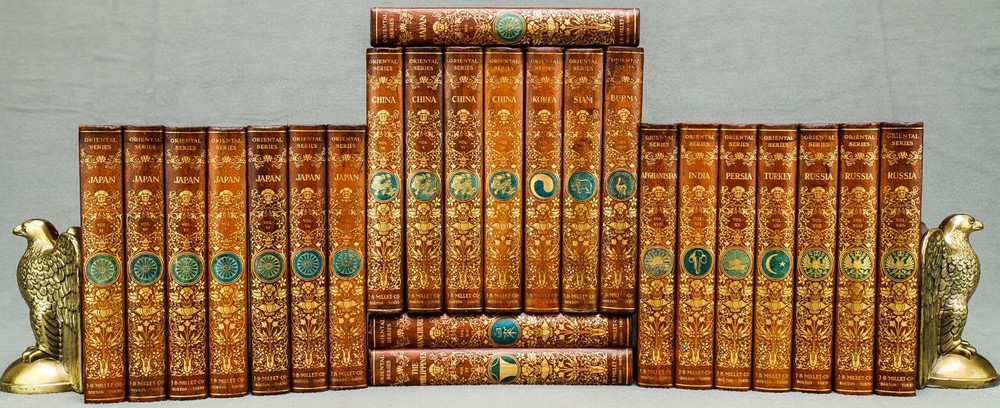 THIS COMPLETE TWENTY-FOUR VOLUME SET IS IN NEAR FINE CONDITION BEAUTIFULLY BOUND IN FULL CRUSHED MOROCCO WITH BRIGHT GILT RULE AND ARTISTRY TO BOARDS, SPINE WITH BRIGHT GILT DETAILS, FLORAL DESIGN AND TITLE. BINDING AND HINGES ARE VERY GOOD, DECORATIVE END PAPERS AND PASTE DOWNS. NO LOOSE OR MISSING PAGES, PAGES ARE BRIGHT AND CLEAN, WITHOUT MARKS OR FOXING. BEAUTIFULLY ILLUSTRATED, BOOKS MEASURE 9.75"x6.25". WHITE HOUSE EDITION-ONLY 200 COPIES PRINTED, THIS SET BEING #20, 119 YEARS OLD. A NICE SET IN VERY FINE CONDITION. 1902 Oriental Series China Russia #20/200 Limited 24 Vol Leather Illustrated 10" 1902 Oriental Series China Russia #20/200 Limited 24 Vol Leather Illustrated 10" Description RARE!!! 1902 LIMITED EDITION BEAUTIFULLY ILLUSTRATED 119 YEARS OLD NICELY ILLUSTRATED THIS COMPLETE TWENTY-FOUR VOLUME SET IS IN NEAR FINE CONDITION BEAUTIFULLY BOUND IN FULL CRUSHED MOROCCO WITH BRIGHT GILT RULE AND ARTISTRY TO BOARDS, SPINE WITH BRIGHT GILT DETAILS, FLORAL DESIGN AND TITLE. BINDING AND HINGES ARE VERY GOOD, DECORATIVE END PAPERS AND PASTE DOWNS. NO LOOSE OR MISSING PAGES, PAGES ARE BRIGHT AND CLEAN, WITHOUT MARKS OR FOXING. BEAUTIFULLY ILLUSTRATED, BOOKS MEASURE 9.75"x6.25". WHITE HOUSE EDITION-ONLY 200 COPIES PRINTED, THIS SET BEING #20, 119 YEARS OLD. A NICE SET IN VERY FINE CONDITION. !!!CLICK HERE!!! Visit My eBay Store TO SEE ALL THE BOOKS WE HAVE FOR SALE!!! IF YOU LIKE WHAT YOU SEE THAN SAVE US TO YOUR FAVORITES BY CLICKING HERE. Add me to your Favorite Sellers RARE ANTIQUARIAN BOOKS CAN BE FRAGILE AND NEED TO BE HANDLED WITH CARE. About us: Reagan's Rare Books is a purveyor of Antiquarian books primarily from the 18th and 19th centuries. We love antique books! We search all over the country for the finest rare books, looking for those with beautiful bindings and in great condition so that we can offer you, the customer, a truly rare one of a kind collectible. Paypal Preferred. Please make payment arrangements within 48 hours of winning your auction. We reserve the right to re-list items not paid within 5 days. Shipping *To Insure That Your Package arrives without any Problems , Please Double Check to Make Sure That The Address You Have Selected in eBay Is Correct. All books are carefully bubble wrapped and packed in a box with adequate packing peanuts to prevent any damage during shipment. All books are shipped with delivery confirmation and tracking. Books over $75.00 are automatically insured. RETURNS 100% Satisfaction Guaranteed. Returns accepted for any reason within 30 days of receipt. PLEASE CHECK MY OTHER LISTINGS. POSTING NEW RARE BOOKS DAILY/WEEKLY. Get images that make Supersized seem small. Showcase your items with Auctiva's Listing Templates! THE simple solution for eBay sellers. Track Page Views With Auctiva's FREE Counter