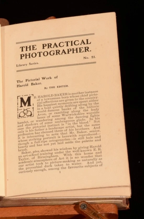 Click here to see our other books! The Practical Photographer Frederick Charles Lambert 1903 Hodder and Stoughton : London 8.5" by 5.5" SUMMARY A complete collection of the Edwardian periodical, The Practical Photographer. Illustrated,Leather Binding Overall Condition: Good This book weighs 10 KG when packed UK Postage: £ 4.49 US Postage: £ 68.99 EU Postage : £ 36.99 European Postage: £ 65.99 Asia Postage: £ 129.99 Worldwide Postage: £ 229.99 DESCRIPTION Library series (first edition). Containing volumes I-30. Illustrated throughout with many photographic plates, some of which have been tipped onto cartridge paper, and illustrations in the text. Volume I: Issues 1-4 Volume II: Issues 5-8 Volume III: Issues 9-12 Volume IV: Issues 13-16 Volume V: 17-20 Volume VI: 21-25 Volume VII: 26-30 Five plates have been removed by a previous owner. Complete in thirty volumes, bound in seven. CONDITION Rebound in morocco. Externally, generally smart, though with some rubbing. Internally, generally firmly bound although strained in places. Labels to two backstrips. 10 hinge strained, with 4 joint starting,. Pages are bright, though with a few handling marks and some instances of foxing. Loss to a few of the pictures. Endpapers of the fifth volume have been removed, with some loss to the other endpapers. Overall Condition: Good GLOSSARY OF TERMS Overall Condition (Dustwrapper condition rating is shown after that for the book itself, where a dustwrapper is present) Fine - Very well preserved copy showing very little wear Very Good Indeed - Only one or two minor faults, really a very attractive copy Very Good - Quite a wide term meaning no major faults but probably several smaller ones often expected given the age of the book, but still a respectable copy Good - Meaning not very good. Some more serious faults as will be described in the condition report under 'condition' Good Only - Meaning one or more faults that could really do with repair Fair - As with good only above but with other faults leaving a compromised copy even after repair Poor - Really bad and possibly seriously incomplete. We only sell books in this condition where their rarity or value makes them attractive none the less. Major defects will be described. GUARANTEE We offer a full money back guarantee on our descriptions. Please ask for details and conditions. We prefer PAYPAL. If you pay via PAYPAL we will post the item off the same or the next working day with the postage you have selected. Please note we cannot accept USD cheques