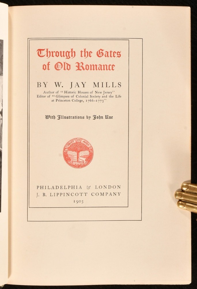 Click here to see our other books! 1903 Through the Gates of Old Romance W. Jay Mills 1903 J. B. Lippincott Company : Philadelphia & London 8" by 5.5" 11-281 [6]pp SUMMARY A beautifully bound first edition of W. Jay Mills's illustrated collection of romantic short stories. Fine Binding,First Edition,Illustrated,Leather Binding Overall Condition: Very Good This book weighs 1 KG when packed UK Postage: £ 3.99 US Postage: £ 22.99 EU Postage : £ 16.99 European Postage: £ 17.99 Asia Postage: £ 22.99 Worldwide Postage: £ 28.99 DESCRIPTION The first edition of W. J. Mills's work, in which he presents a collection of delightful stories that revolve around love, set in the cities of Philadelphia, New York and Newport. With nineteen vignette and full plate illustrations by John Rae. With two pages of advertisements to the rear. In a striking half crushed morocco binding, with gilt detailing to spine. CONDITION In a half crushed morocco binding, with marbled paper covered boards and gilt detailing to back strip. Front hinge starting, with board holding firm. Internally, firmly bound. Pages exceptionally clean and bright. Overall Condition: Very Good GLOSSARY OF TERMS Overall Condition (Dustwrapper condition rating is shown after that for the book itself, where a dustwrapper is present) Fine - Very well preserved copy showing very little wear Very Good Indeed - Only one or two minor faults, really a very attractive copy Very Good - Quite a wide term meaning no major faults but probably several smaller ones often expected given the age of the book, but still a respectable copy Good - Meaning not very good. Some more serious faults as will be described in the condition report under 'condition' Good Only - Meaning one or more faults that could really do with repair Fair - As with good only above but with other faults leaving a compromised copy even after repair Poor - Really bad and possibly seriously incomplete. We only sell books in this condition where their rarity or value makes them attractive none the less. Major defects will be described. GUARANTEE We offer a full money back guarantee on our descriptions. Please ask for details and conditions. We prefer PAYPAL. If you pay via PAYPAL we will post the item off the same or the next working day with the postage you have selected. Please note we cannot accept USD cheques