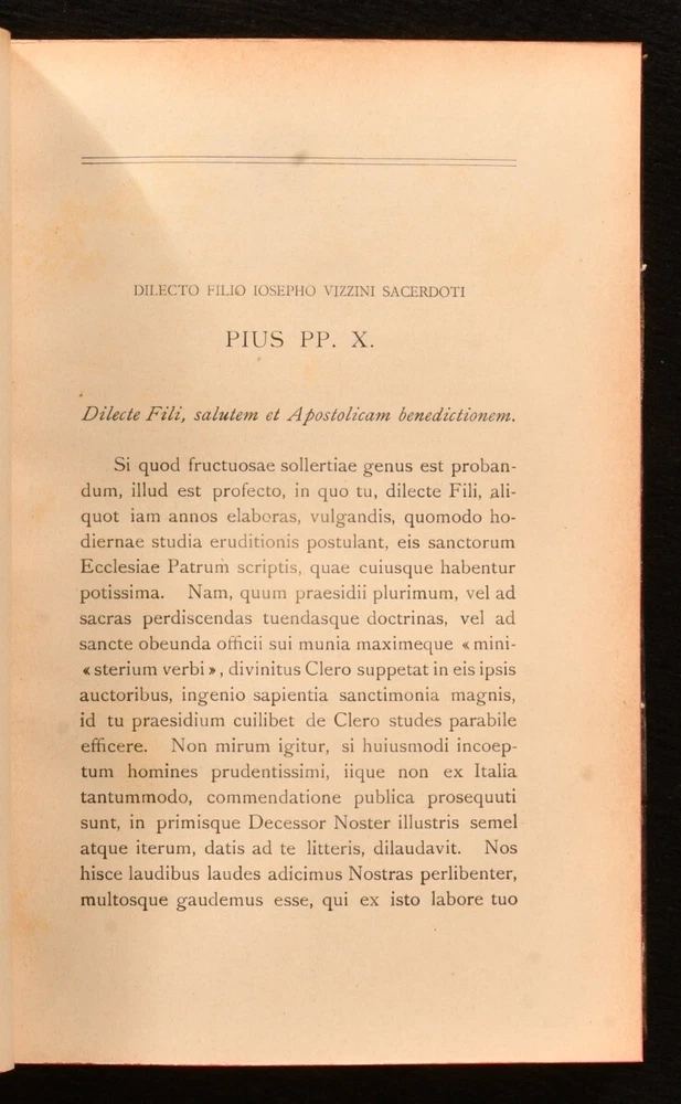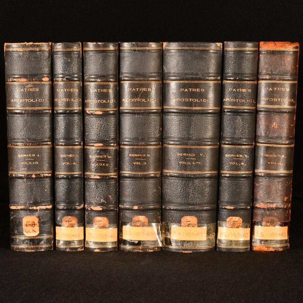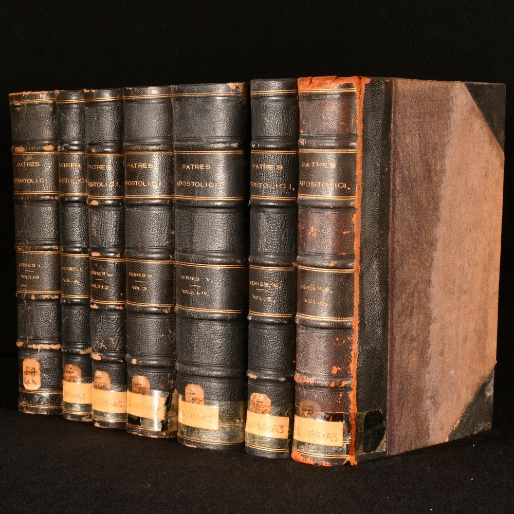 Click here to see our other books! Series I, III, V, VI of Bibliotheca Sanctorum Patrum Josephe Vizzini [ed.] 1904-1905 Forzani et Socii : Rome 8.5" by 5.5" 221pp, 185pp, 208pp; 323pp, 36; 243pp, 256pp; 636pp; 926pp; 354pp, 65; 476pp SUMMARY Seven Latin volumes reproducing the works of the Apostolic Fathers, early Christian Apologists, and St. Augustine's Confessions. Leather Binding Overall Condition: Good This book weighs 10 KG when packed UK Postage: £ 4.49 US Postage: £ 68.99 EU Postage : £ 36.99 European Postage: £ 65.99 Asia Postage: £ 129.99 Worldwide Postage: £ 229.99 DESCRIPTION Series I, III, V and VI from the Library of the Holy Fathers, edited by Joseph Vizzini. Published in Latin. Series one is spread across two books, as are series three and five. The present collection also contains volume II of series VI. Series I reproduces the writings of the Apostolic Fathers, also known as the Anti-Nicene Fathers, who were core Christian theologians living in the first and second centuries. They are believed to have personally known some of the Twelve Apostles. Series three includes Octavius by Marcus Minicius Felix, one of the earliest Latin Christian apologists and bothDe Baptismo and Adversus Marcionem by Tertullian. Series five contains the Hilarii Pictaviensis De Trinitate. Series six contains Augustine's confessions, in which he outlines his conversion to Christianity. From the library of Ramsgate Monastery, with the institutional bookplate to the front pastedown of all volumes. All volumes also have a sleeve for an index card adhered to the front pastedown, found with the relevant index card to the remaining volumes. With an institutional stamp from St. Augustine's to the title page of the first book of Series I, final page of the second book. Each volume has a a library number to the spine, with another sellotaped on top. CONDITION In a black quarter calf binding over cloth boards. The cloth to volume VI is embossed with a different design to the other volumes. Externally, generally smart. Lightly rubbed to the boards, except for the final four volumes in the collection which are a little soiled to the fore edge of the front board. Volume I is missing some cloth to the fore edge of the front board, and volume III is lacking some calf and cloth to the extremities at the front and rear boards. Lightly rubbed to the spines, with a little scuffing to the joints near the head of volumes I, II, and IV. Volume VII is more worn than the other volumes, with some moderate rubbing to the joints, and a couple of closed tears to the calf at the head of the spine. The front hinge is starting to volume VI. Internally, firmly bound. Pages are generally bright and clean with the occasional patch of light foxing. Overall Condition: Good GLOSSARY OF TERMS Overall Condition (Dustwrapper condition rating is shown after that for the book itself, where a dustwrapper is present) Fine - Very well preserved copy showing very little wear Very Good Indeed - Only one or two minor faults, really a very attractive copy Very Good - Quite a wide term meaning no major faults but probably several smaller ones often expected given the age of the book, but still a respectable copy Good - Meaning not very good. Some more serious faults as will be described in the condition report under 'condition' Good Only - Meaning one or more faults that could really do with repair Fair - As with good only above but with other faults leaving a compromised copy even after repair Poor - Really bad and possibly seriously incomplete. We only sell books in this condition where their rarity or value makes them attractive none the less. Major defects will be described. GUARANTEE We offer a full money back guarantee on our descriptions. Please ask for details and conditions. We prefer PAYPAL. If you pay via PAYPAL we will post the item off the same or the next working day with the postage you have selected. Please note we cannot accept USD cheques