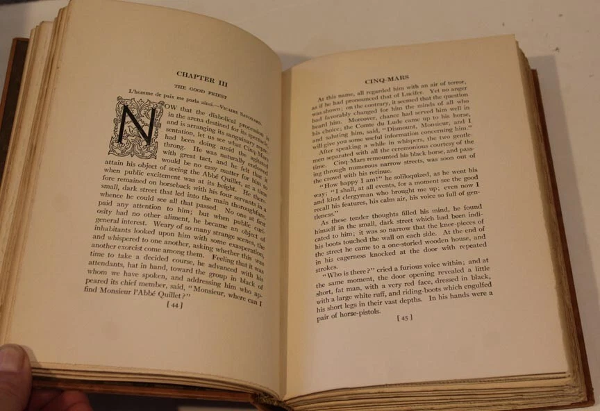 1905 “Cinq Mars” Vols 1 and 2 by Georges Ohnet, Superb Leather Bound with Coin Medallion Author: Georges Ohnet Preface by Gaston Boissier of the French Academy Illustrations by A. Duvivier A Volume in the Prestigious Editions Deluxe Immortals Series, Under the Official Supervision of the French Academy Masterpieces of Fiction Crowned By the French Academy Text in English Gorgeous Leather Binding with Intricately Gilded Embossing on the Front Cover and Spine. A Beautiful Coin Medallion is centered on the front cover board displaying Cardinal Richelieu Satin Fleur de Lys embossing is on the backing of the front and rear cover board. Hand cut pages Prefaces and Illustrations Robert Arnot, Managing Editor Publisher: Maison Mazarin: Paris From #7 of 250 Printed Sets Package: 9x6x4” All orders are shipped within 48 hours of payment and securely packaged. My company Marquis Gallery specializes in sourcing scarce literary treasures for private collectors and collections in the United Kingdom, United States and Western Europe. Please feel free to contact me with any questions. Please Don’t Forget To View My Other Listings