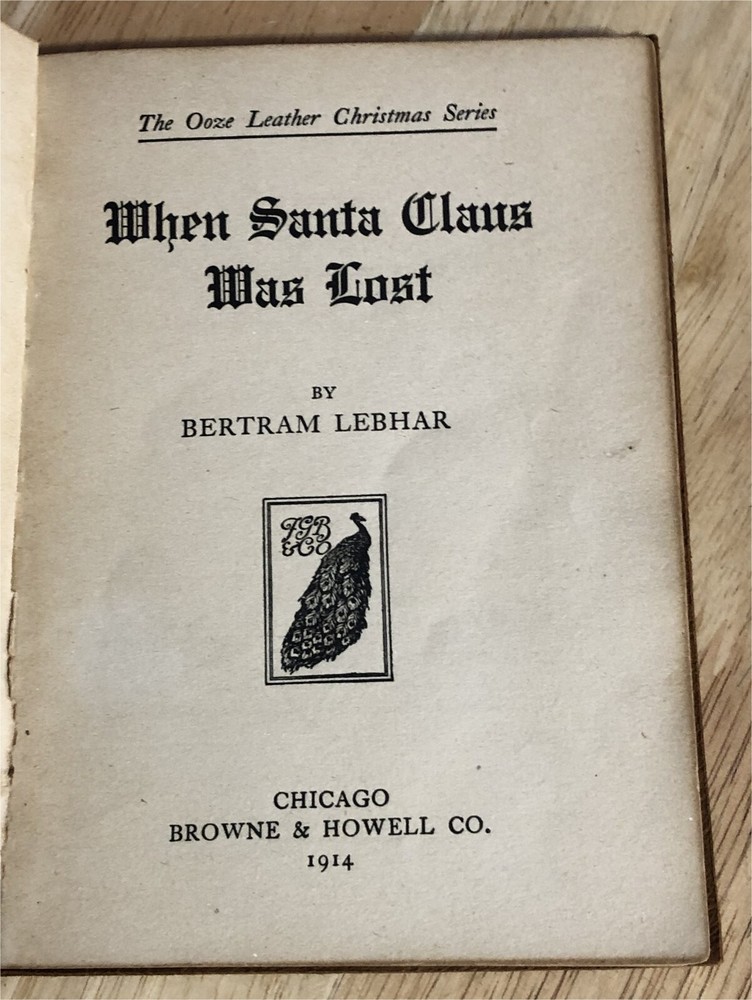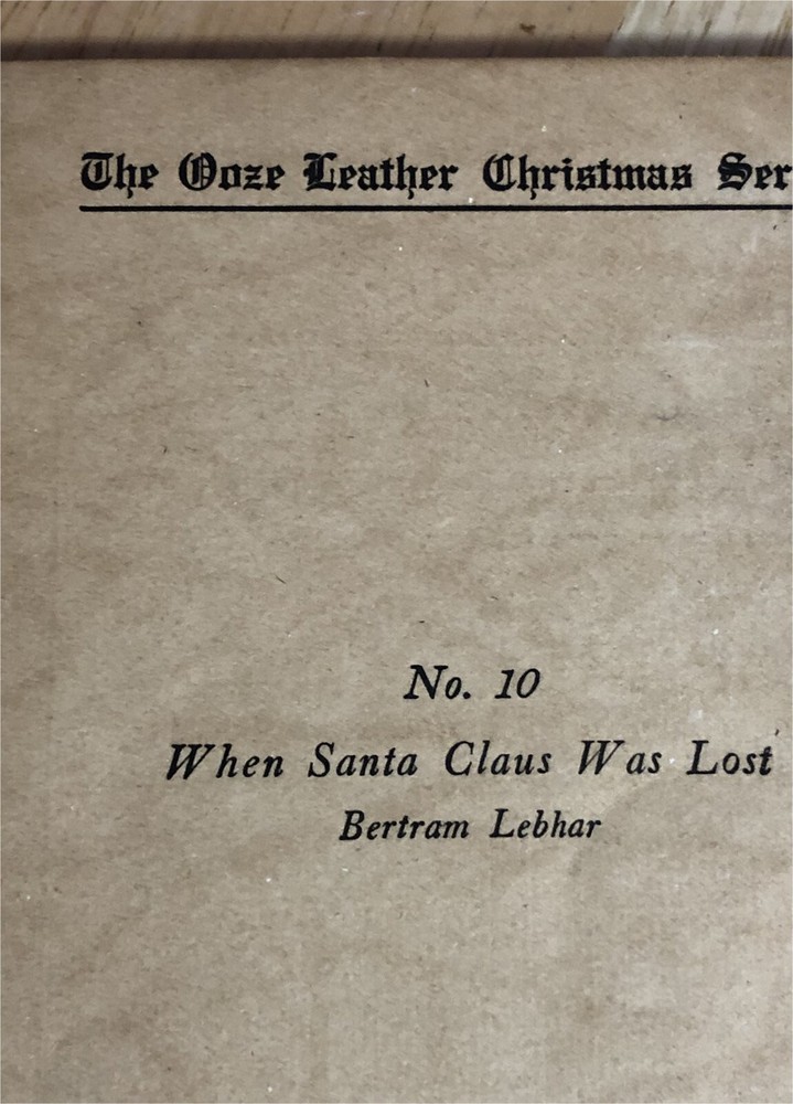 PLEASE LOOK AT PHOTOS VERY GOOD CONDITION : This is one of the 1914 Ooze Leather Christmas Series books by Bertram Lebhar, "When Santa Claus Was Lost". Published by Browne & Howell Co., Chicago. Soft leather with sharp gilded lettering on front, some fading. 63 pages that are clean & bright. Front cover is just starting to separated, else binding is tight. Measures 6.5 x 4.75".