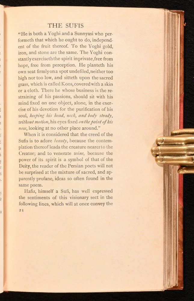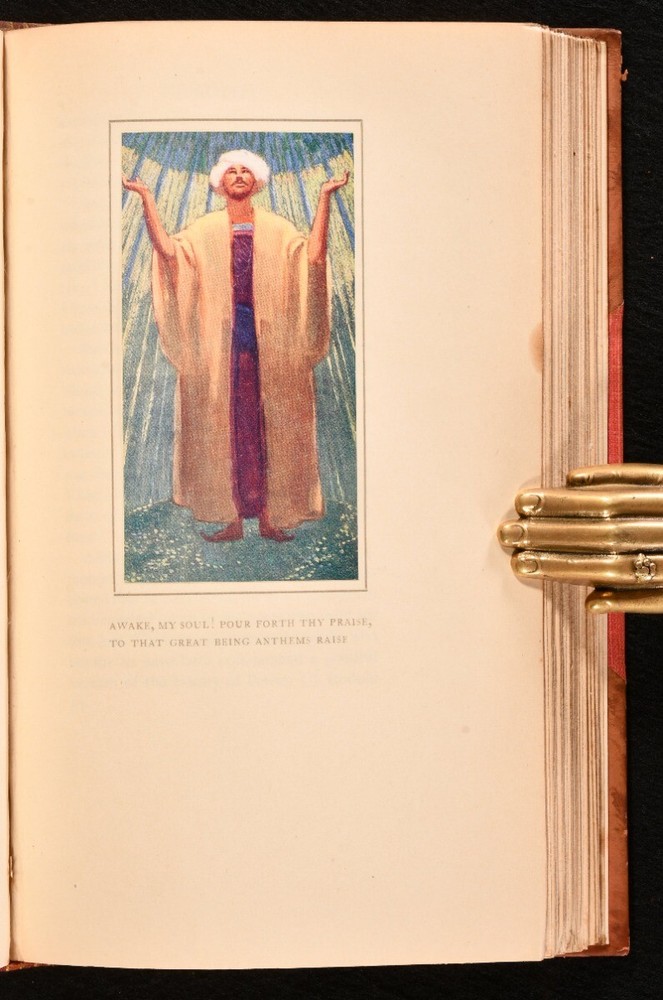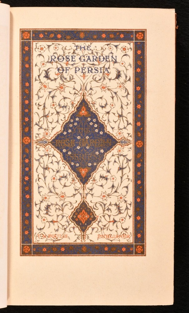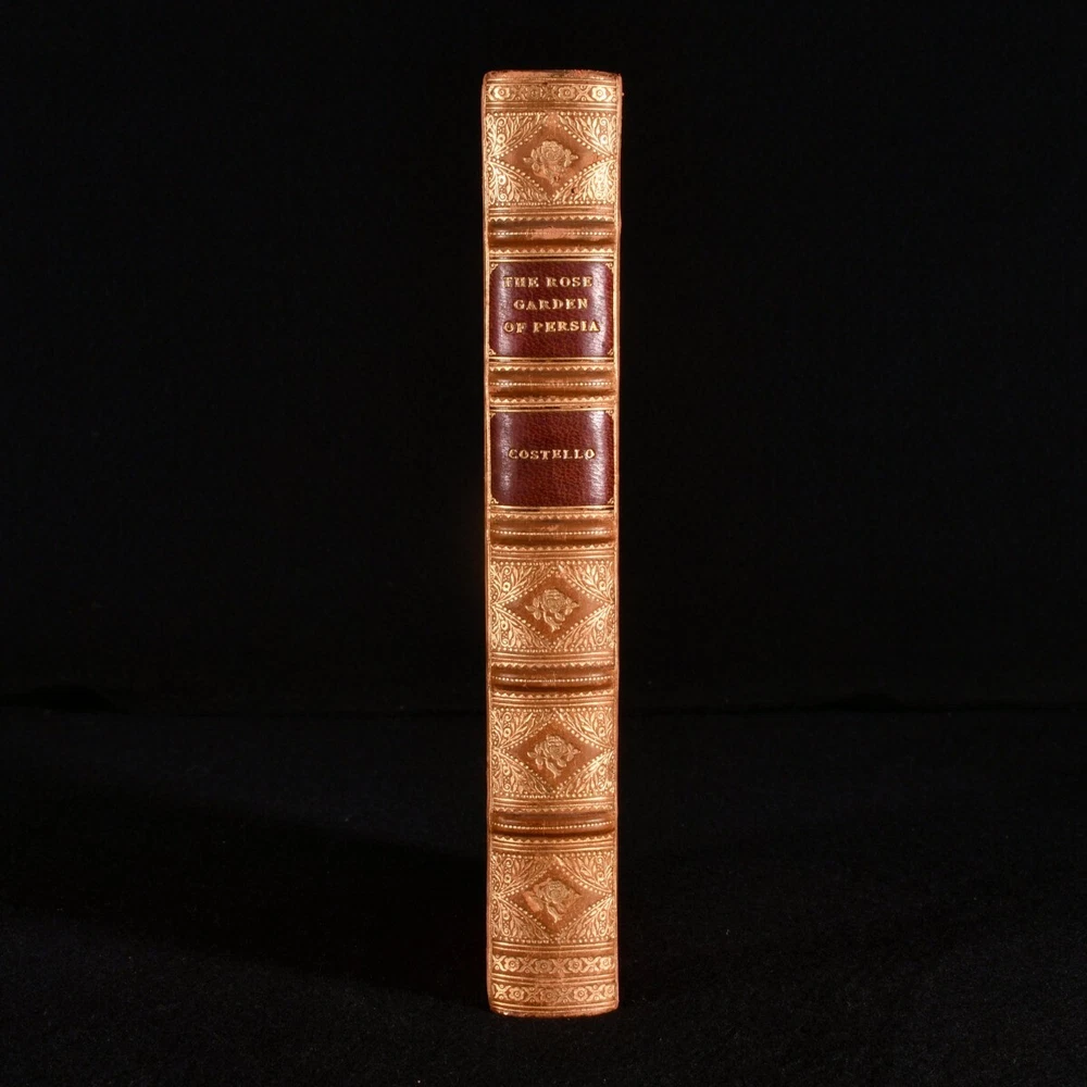Click here to see our other books! The Rose Garden of Persia Louisa Stuart Costello 1914 T. N. Foulis : London; Edinburgh 7.5" by 4.5" [8], 188, [3pp] SUMMARY Louisa Stuart Costello's beautiful collection of Persian poetry, a striking copy complete with chromolithograph illustrations throughout. Colour Plates,Illustrated,Leather Binding,Signed Binding Overall Condition: Good This book weighs 0.75 KG when packed UK Postage: £ 3.99 US Postage: £ 19.99 EU Postage : £ 15.99 European Postage: £ 16.99 Asia Postage: £ 21.99 Worldwide Postage: £ 25.99 DESCRIPTION Bound by Hatchards. Louisa Stuart Costello's charming poetry collection of versions of poems and poem extracts taken from Persia, a lovely collection including the works of Ferdusi, Essedi of Tus, Omar Khiam, Nizami, and more. Illustrated with a chromolithograph frontispiece, chromolithograph title page, three chromolithograph plates, and eleven chromolithograph decorative title pages for the poets. Collated, complete. Part of 'The Rose Garden Series' by T. N. Foulis. Undated, dated from Jisc from a copy held at the National Library of Scotland. From the library of Audrey Pleydell-Bouverie, from her library at Julians Park, Hertfordshire. After being widowed at 25, Audrey married the fabulously wealthy American department store heir, Marshall Field III, later divorcing him and marrying the Honorable Peter Pleydell-Bouverie. In 1940 she bought Julians Park and redesigned the interior. Her library was impressive, with many examples of her own bookbinding. Audrey was an extravagant socialite and renowned beauty, the illegitimate granddaughter of King Edward VII (though she was also rumoured to be his daughter, or the lover of King Edward VIII), featured in the 'Book of Beauty' by Cecil Beaton. She had many high profile friends, such as Winston Churchill, Coco Chanel, Fred Astaire, and Nancy Mitford, a sparkling hostess of the Edwardian period, her hedonistic antics bringing her into the Bright Young Things. CONDITION In a half calf binding by Hatchards with cloth to the boards. Externally, generally smart. Leather is discoloured with some spotting and a little rubbing. Internally, firmly bound. Pages are bright and clean. Overall Condition: Good GLOSSARY OF TERMS Overall Condition (Dustwrapper condition rating is shown after that for the book itself, where a dustwrapper is present) Fine - Very well preserved copy showing very little wear Very Good Indeed - Only one or two minor faults, really a very attractive copy Very Good - Quite a wide term meaning no major faults but probably several smaller ones often expected given the age of the book, but still a respectable copy Good - Meaning not very good. Some more serious faults as will be described in the condition report under 'condition' Good Only - Meaning one or more faults that could really do with repair Fair - As with good only above but with other faults leaving a compromised copy even after repair Poor - Really bad and possibly seriously incomplete. We only sell books in this condition where their rarity or value makes them attractive none the less. Major defects will be described. GUARANTEE We offer a full money back guarantee on our descriptions. Please ask for details and conditions. We prefer PAYPAL. If you pay via PAYPAL we will post the item off the same or the next working day with the postage you have selected. Please note we cannot accept USD cheques