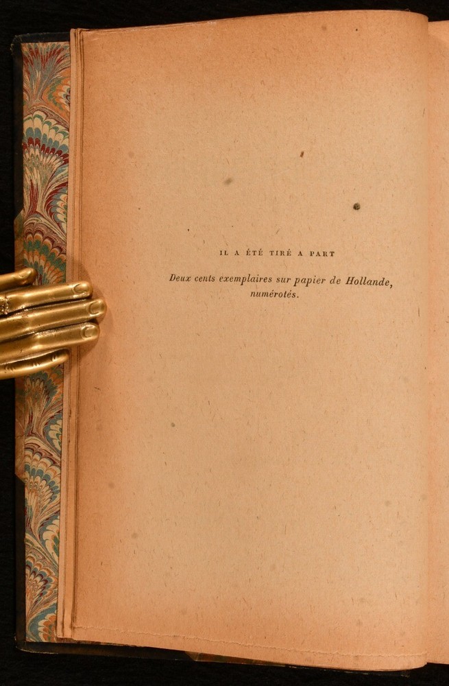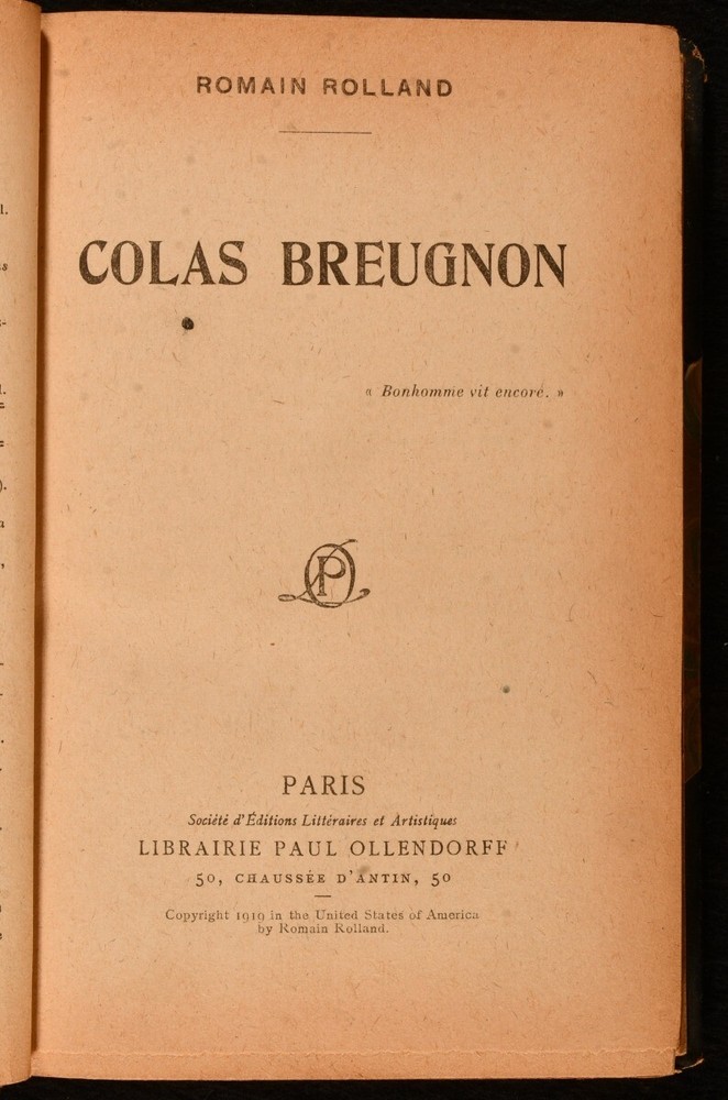 Click here to see our other books! Colas Breugnon Romain Rolland 1919 Librairie Paul Ollendorff : Paris 7.5" by 5.5" iii [4], 4-323 [4]pp SUMMARY An out of series example of the limited edition first edition of Romain Rolland's celebrated novel, in a signed Durvand binding. First Edition,Leather Binding,Limited Edition,Signed Binding Overall Condition: Very Good This book weighs 1 KG when packed UK Postage: £ 3.99 US Postage: £ 22.99 EU Postage : £ 16.99 European Postage: £ 17.99 Asia Postage: £ 22.99 Worldwide Postage: £ 28.99 DESCRIPTION In the original French. The first edition of this work, an out of series copy of the limited edition first edition, one of two-hundred copies produced. With the limitation statement to the title page verso. Set in Bergundy, this is one of Rolland's best known works, inspired by his own family which had both wealthy townspeople and farmers in its lineage. Rolland was a leading supporter of Joseph Stalin in France and is also noted for his correspondence with and influence on Sigmund Freud. In a signed half morocco binding by Durvand, a master French binder in the late 19th and early 20th centuries. With the publisher's original front and rear wraps and back strip bound in. CONDITION In a half morocco signed binding, with marbled paper covered boards. Significant rubbing to back strip head and tail, and raised bands, with light rubbing to joints. With the publisher's original front and rear wrap and back strip bound in. Internally, firmly bound. Pages lightly age toned due to paper type, but otherwise clean. Overall Condition: Very Good GLOSSARY OF TERMS Overall Condition (Dustwrapper condition rating is shown after that for the book itself, where a dustwrapper is present) Fine - Very well preserved copy showing very little wear Very Good Indeed - Only one or two minor faults, really a very attractive copy Very Good - Quite a wide term meaning no major faults but probably several smaller ones often expected given the age of the book, but still a respectable copy Good - Meaning not very good. Some more serious faults as will be described in the condition report under 'condition' Good Only - Meaning one or more faults that could really do with repair Fair - As with good only above but with other faults leaving a compromised copy even after repair Poor - Really bad and possibly seriously incomplete. We only sell books in this condition where their rarity or value makes them attractive none the less. Major defects will be described. GUARANTEE We offer a full money back guarantee on our descriptions. Please ask for details and conditions. We prefer PAYPAL. If you pay via PAYPAL we will post the item off the same or the next working day with the postage you have selected. Please note we cannot accept USD cheques