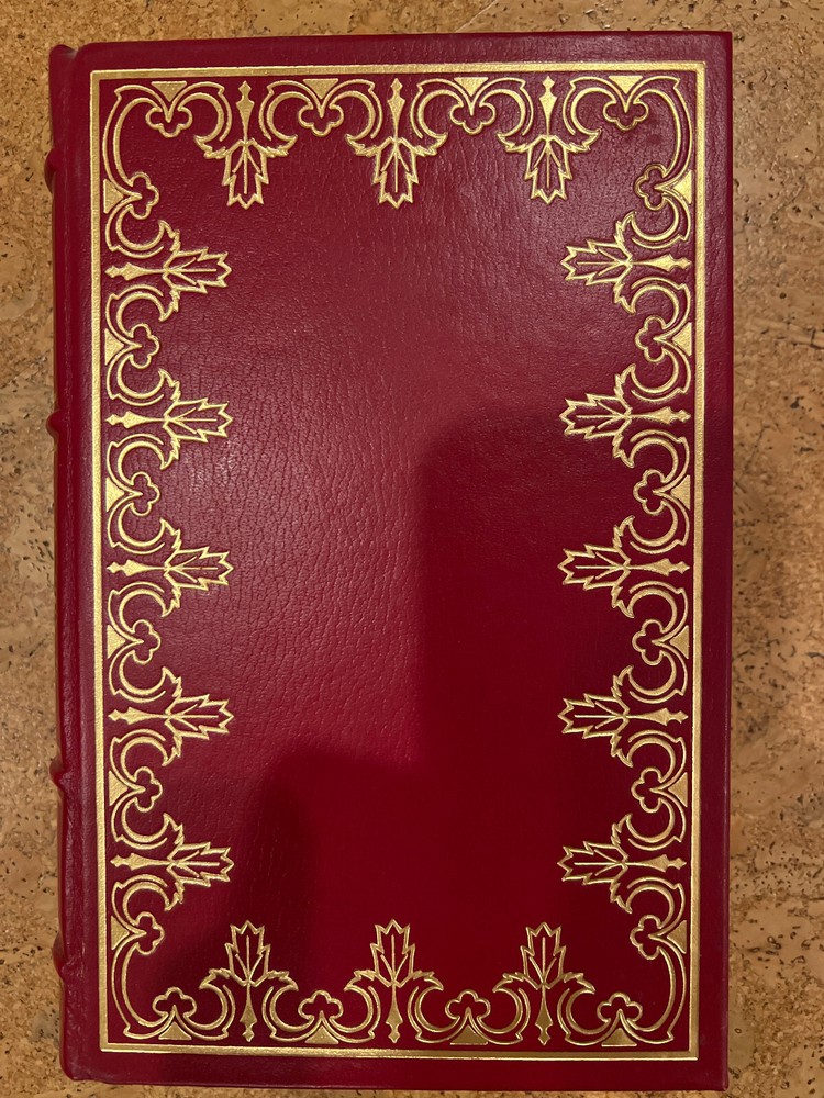 Excellent condition (with exception of ex libris sticker on first page, see photo). Leather bound gold leaf collectible.Accented in 22kt gold, printed on archival paper with gilded edges, silk moirefabric for opening/closing pages, smyth sewing & concealed muslin joints.Bound In full leather with hubbed spines. A Limited Edition First Franklin Library Edition. FranklinCenter, Pennsylvania. Hardcover.