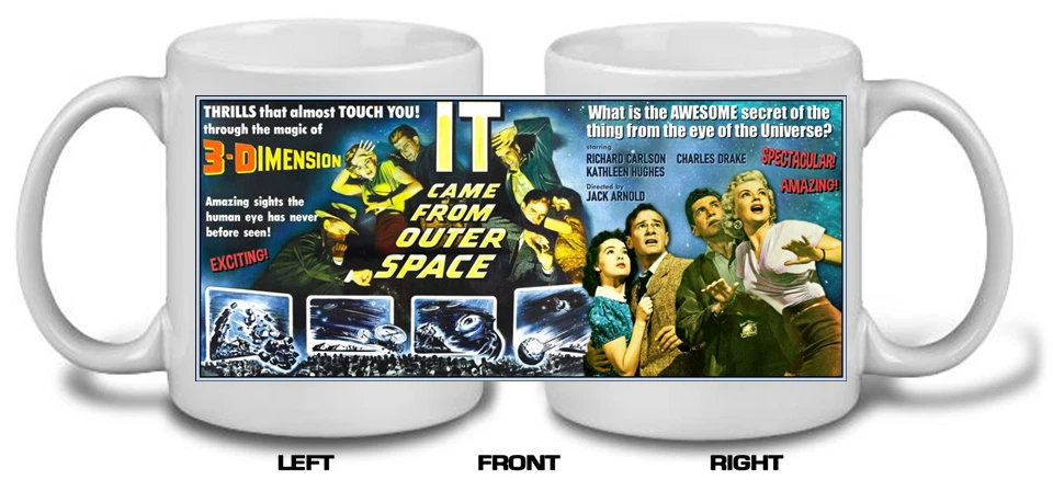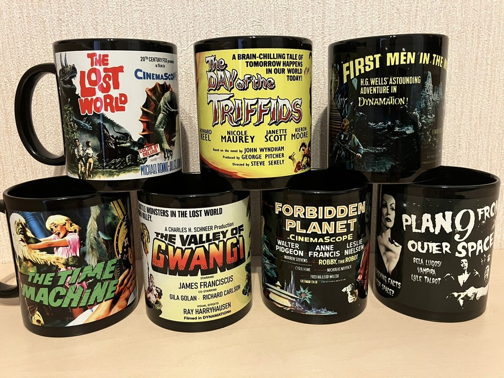 Absolutely love these vintage sci-fi movie mugs! The full wraparound prints are vibrant and high-quality, not cheap like other mugs. Perfect for any classic film fan—great gift idea too. Packaging was secure, arrived safely. Highly recommend!