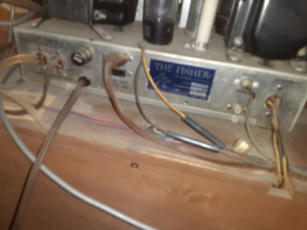 1957 Fisher Console Radio And turntable in a cherry cabinet in excellent condition. comes with owners manual and adapter for 45's. buyer will have to move it.