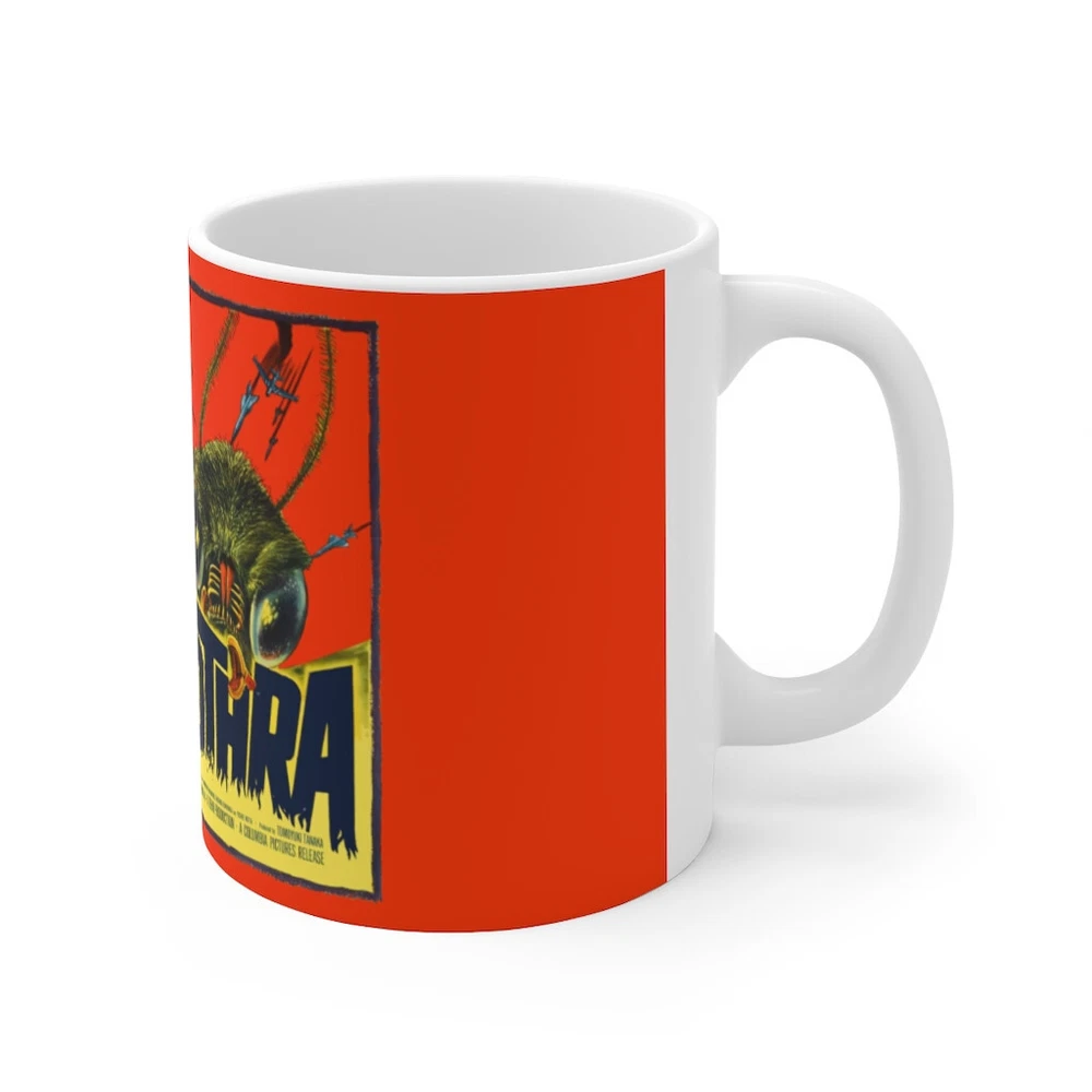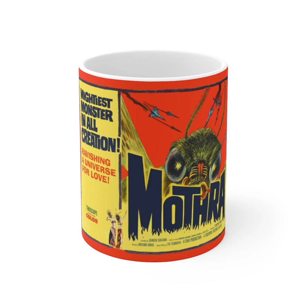 This is a made to order item. We print the mug on a per-order basis. This is a made to order coffee mug. Have a Godzilla fan in your life? Our 1961 Mothra Movie Poster mug was made just for them! Long live the king! This 11 ounce mug is the perfect Father's Day gift or even a thoughtful birthday present for your Movie Monsters (Kaiju) film buff. Godzilla and Mothra have quite the following and have been American icons for decades. The artwork on this mug brings Mothra to life in all her glory! ✔️ White ceramic ✔️ 11 oz (0.33 l) ✔️ Rounded corners ✔️ C-Handle ✔️ Microwave Safe ✔️ Dishwasher safe Mug is made in either China or Thailand. Printing is done here in the United States by us.