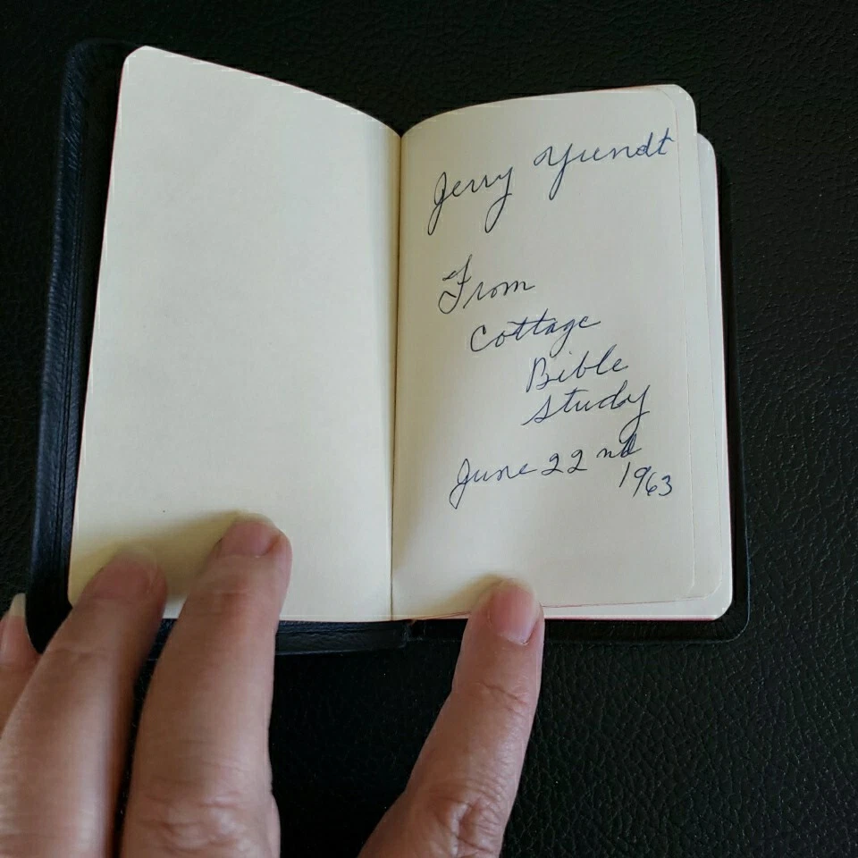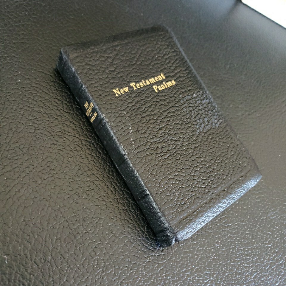 1963 American Bible Society B336X series New Testament with Psalms pocket bible. Has gift inscription on inside front free end paper. Comes in original box. See photos.