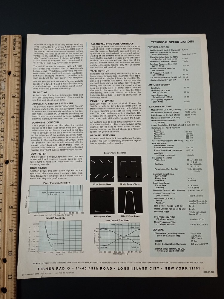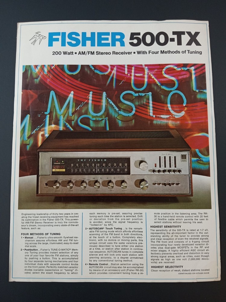1971 Fisher 500-TX Stereo Receiver Print. 11"x8" original advertising