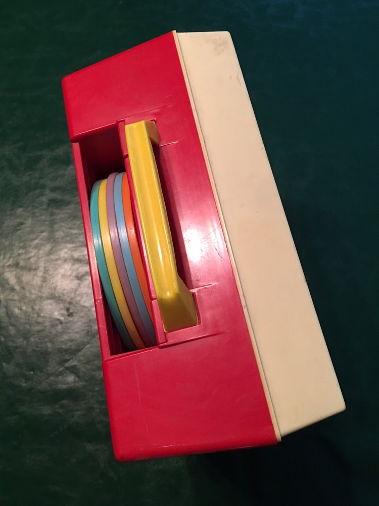 1971 Fisher Price Music Box Record Player used but still working, easy wind up! Complete with five records all different tunes! Easy storage and handle for carrying! Condition is "Used". Shipped with USPS Priority Mail.