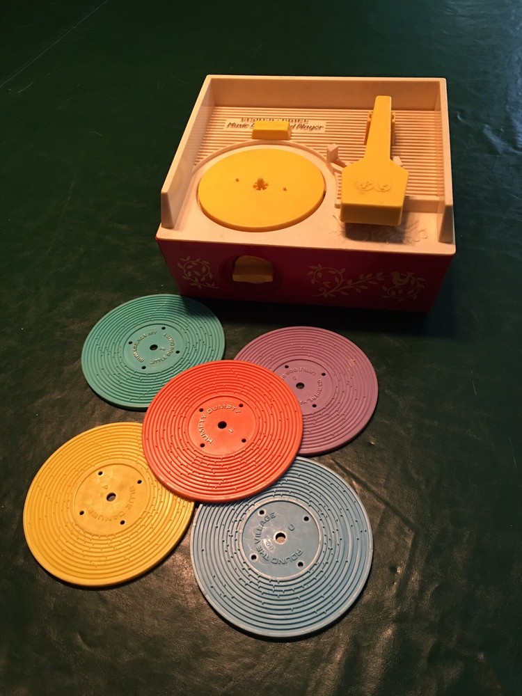1971 Fisher Price Music Box Record Player used but still working, easy wind up! Complete with five records all different tunes! Easy storage and handle for carrying! Condition is "Used". Shipped with ...