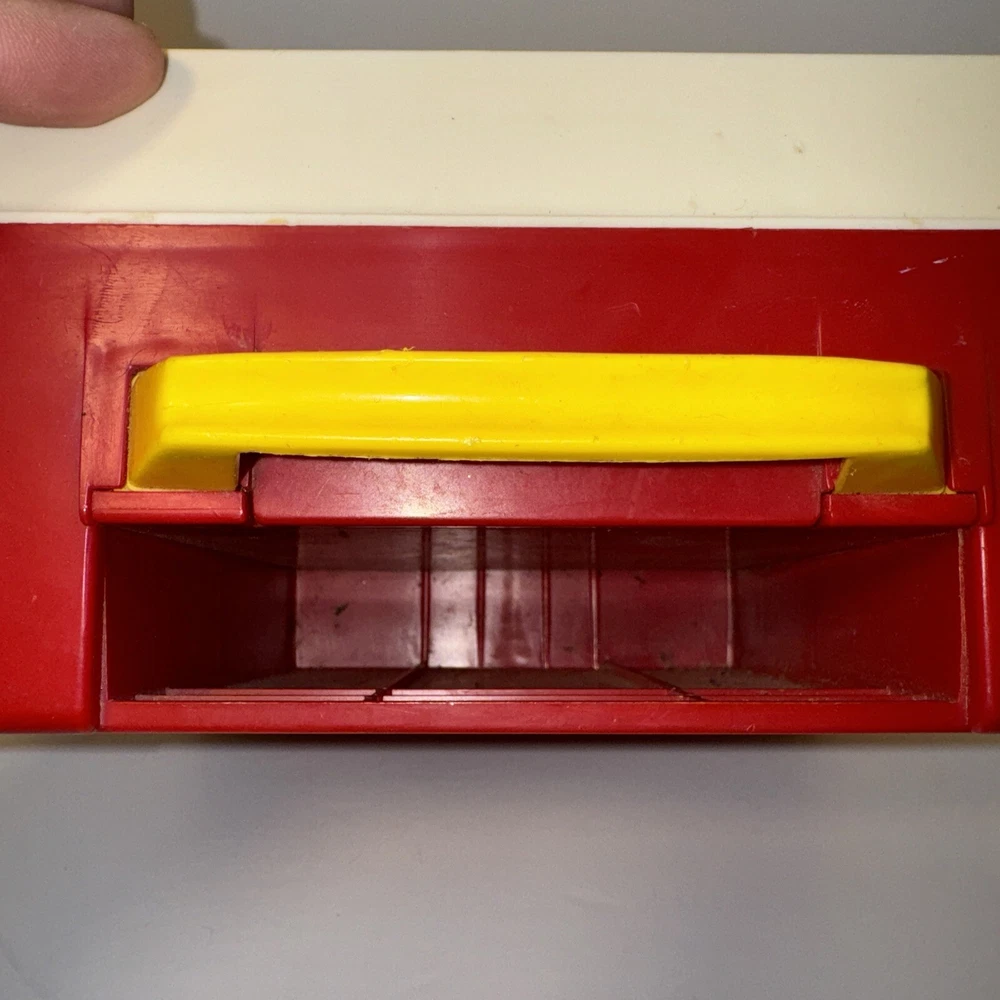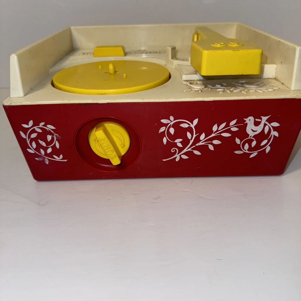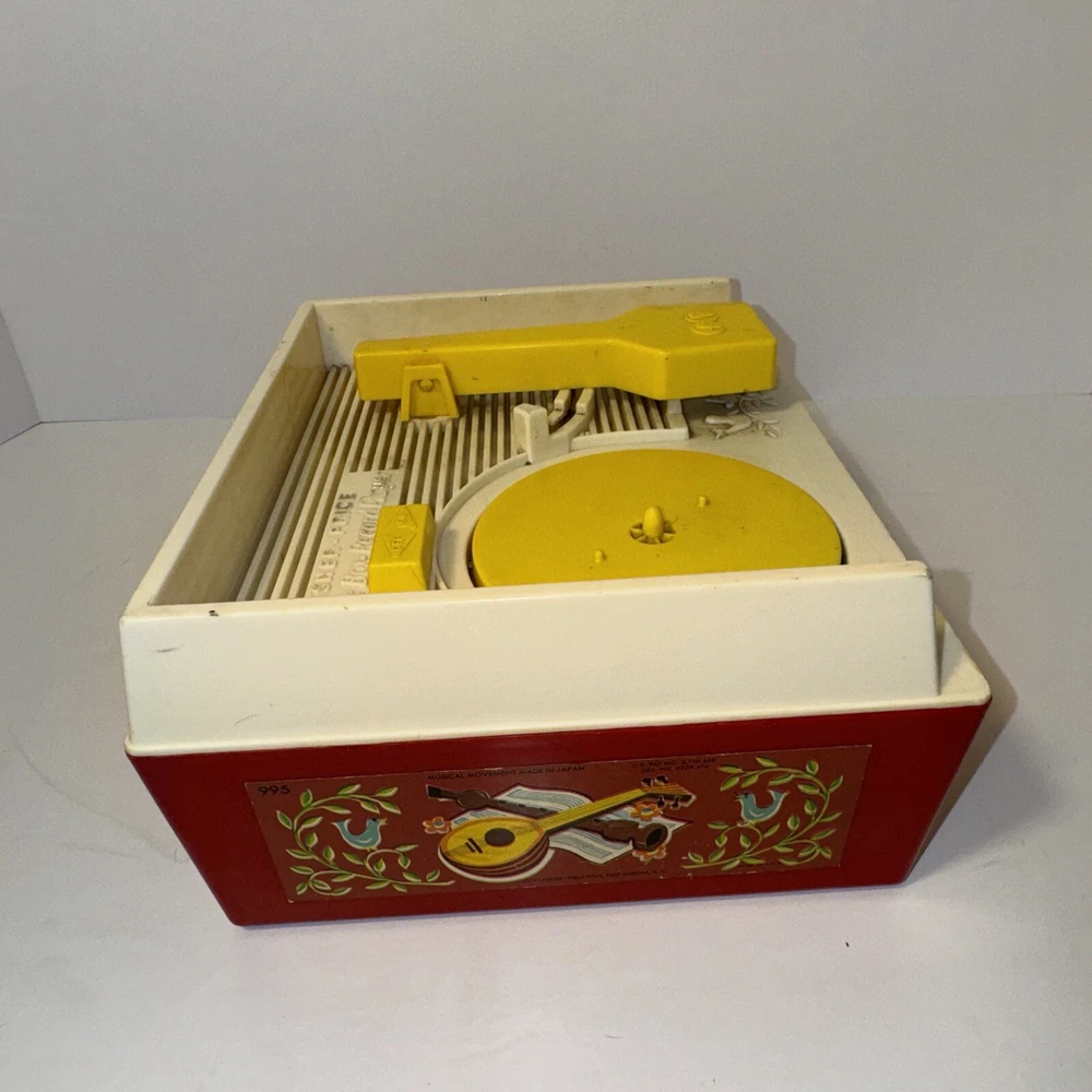 This vintage Fisher Price music box toy is a must-have for collectors and lovers of retro toys. It features a record player with 3 discs, all in excellent working order. The box is from 1971 and is recommended for ages 3 and up. This music box is a great addition to any collection and is sure to bring joy to anyone who hears it. The brand, Fisher-Price, is known for its quality and durability, making this box a wonderful gift for children and adults alike.