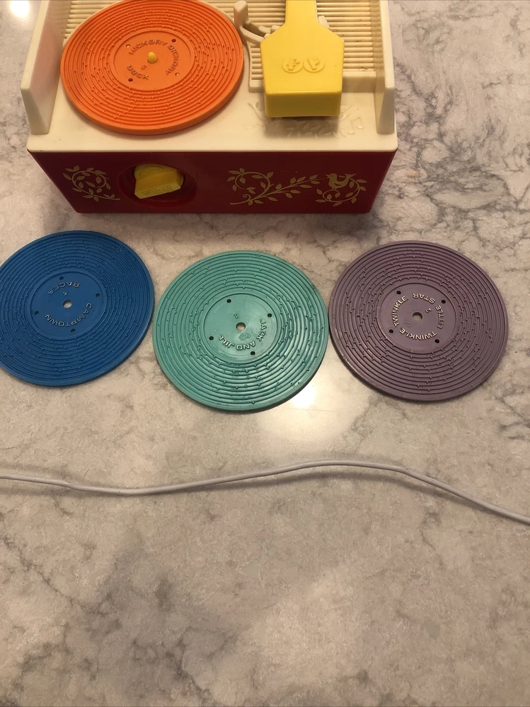 1971 Vintage Fisher Price Wind-Up Record Player #995 4 Record Tested Music Box. See photos for condition.
