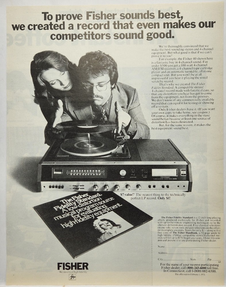 DETAILS 1972 Fisher 40 Stereo Receiver Turntable Tape Player Vintage Print Ad This is an authentic original print ad from a magazine. Suitable for framing. Not a reproduction, photocopy or reprint. The year listed is when the advertisement was published. Page measures approximately 10" x 12 1/2". May have signs of discoloration and or foxing. Please see the image of the actual item above to get a better idea of the condition. We are always happy to combine shipping for as many ads as you want, to save you shipping costs. PAYMENT Buy It Now immediate payment required. SHIPPING We ship within 1-2 days of payment clearing via USPS First Class Mail. All our vintage ads are shipped flat, and come with a 2 mil polypropylene clear sleeve with a backer board. Then sandwiched between two pieces of cardboard and slid inside a bubble mailer. RETURNS Are accepted within 30 days of purchase. Please contact us if you want to return an item. Full refund will be issued excluding the shipping cost. Must be in it's original condition,as sent. Free Returns. Please check out our feedback, says it all! Browse our eBay store for more great ads and other vintage items. Thank you for your business.