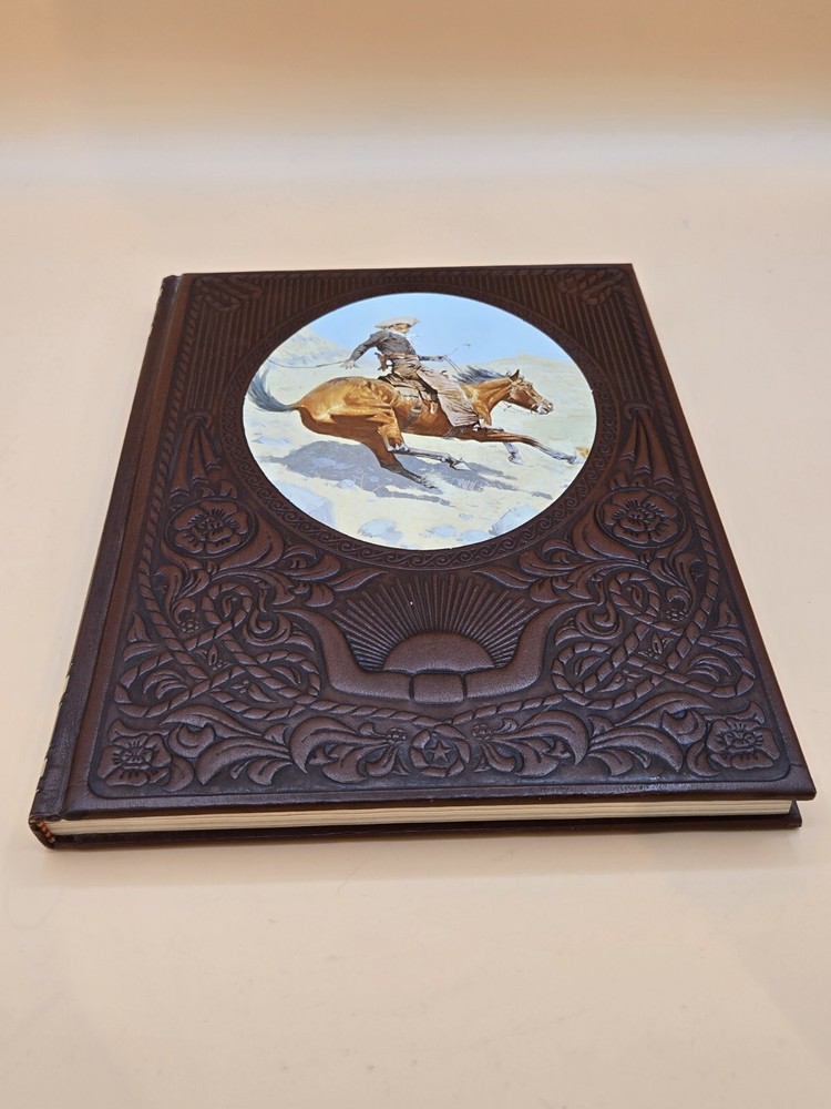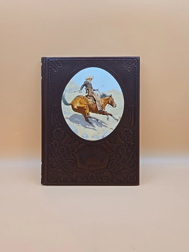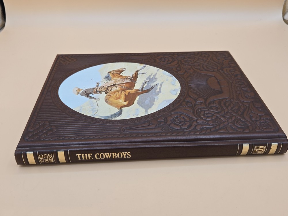 Relive the wild and adventurous times of the American Old West with this vintage faux leather bound book, "The Cowboys" from Time-Life Books. This illustrated non-fiction narrative boasts a captivating story of the Cowboys, accompanied by stunning visuals and a narrative text that brings the subject matter to life. Experience the thrill of the American Wild West, as you explore the history and military aspects of this iconic period in time. This book is a must-have for any adult interested in the Old West, and is perfect for collectors and enthusiasts alike. Don't miss out on this opportunity to add this piece of American history to your collection. Custom Label: eBay black 3, row 5, 2