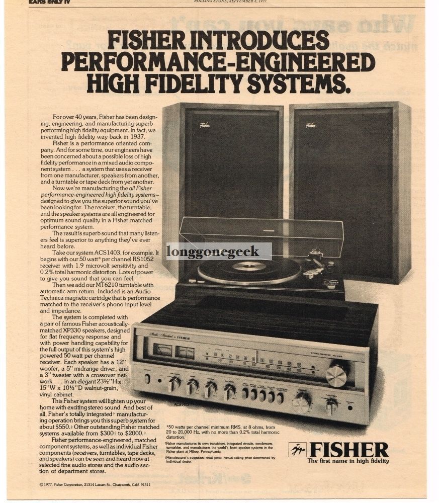 ADVERTISEMENT : 1977 Fisher MT6210 Turntable ACS1403 Receiver Speakers Stereo Hi-Fi Vtg Print Ad ThSIZE APPROXIMATELY: 12.5" x 10" CONDITION : Excellent...no tears, stains, creases Please note: This sale is for the vintage paper advertisement shown and not the item in the advertisement. It is not a copy, reprint or repro of any kind. Why not purchase one (or more) now! These old advertisements are ideal for: Collectors Historians Museums An intriguing gift Home and Business decor Don't just think of these as old pieces of paper. These are pieces of history. They show the changing fashions, architecture, furniture, design aesthetics and much more over the course of time. Many old ads have detailed info about the product they are advertising and can help with research. They also make a fine substitute for expensive artwork. Many old ads are very beautiful, or have bold graphics; many are drawn and signed by famous artists and illustrators. You could decorate your business, whole house or apartment, man or woman cave with vintage advertisements for the same price as one piece of fine art. Like this item? Why not purchase it now! About The Advertisements All advertisements are carefully removed from the source (magazines, newspapers, books, etc.) and are completely original. No copies, reprints or reproductions of any kind . Most vintage ads were printed on very thin paper and so some of the printing or advertisement from the reverse side may be visible. Ads are shipped flat and are packaged using archival acid-free backing boards and acid-free, clear plastic sleeves. Payment, Shipping and Returns I accept Paypal. Combined Shipping: I only charge shipping for one ad and/or print, no matter how many are purchased, if all items are paid for with a single payment. Items paid for separately will be shipped separately and do not qualify for discounts. If you are having trouble making a combined payment for all your items, please contact me BEFORE making your payment. I may be able to help out and save you some money. 30 day return policy for any reason Thanks for looking!
