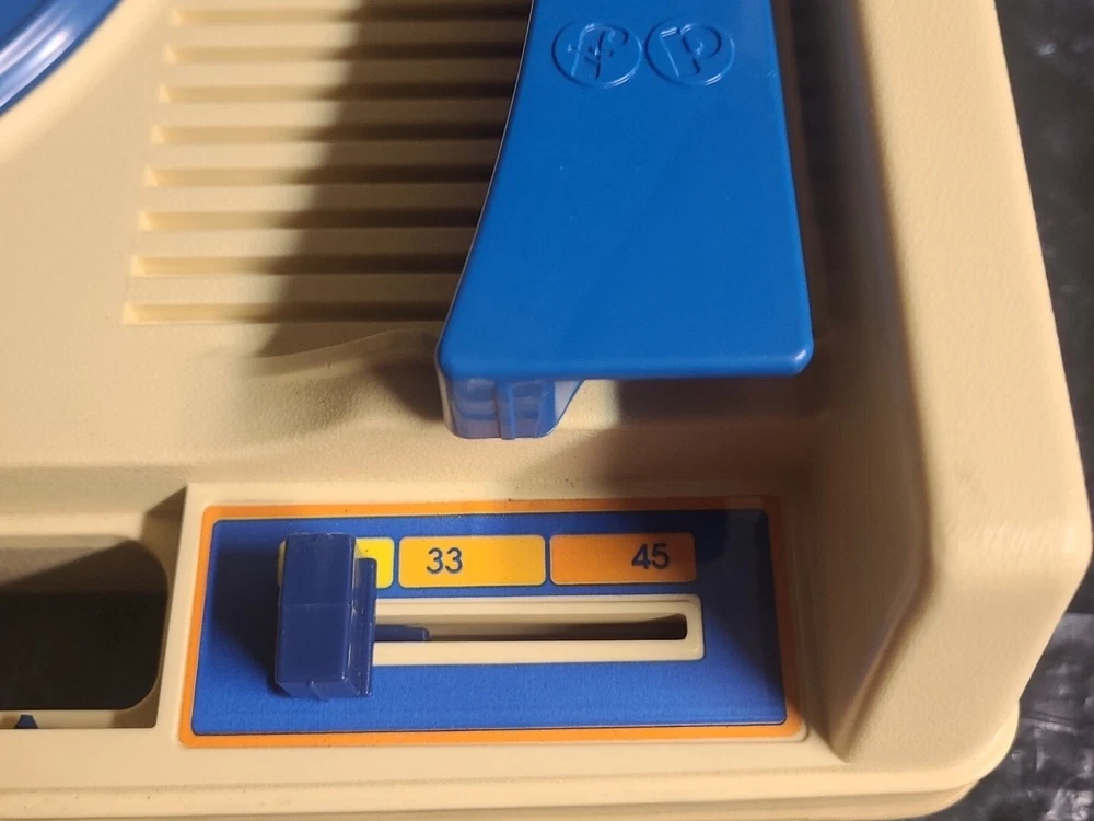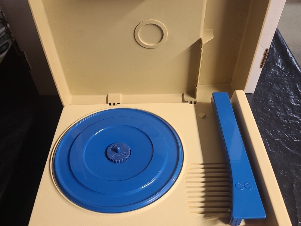 1978 Fisher Price 33/45 Record Player (Needs Work). Item has some wear marks or discoloring. Motor runs but doesn't spin record player. Minimum spin, wants to work. needs refurbished.
