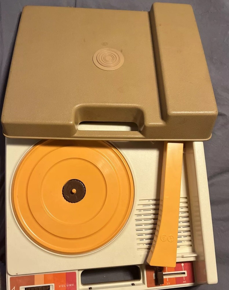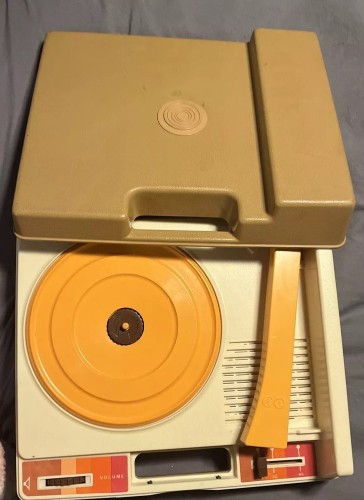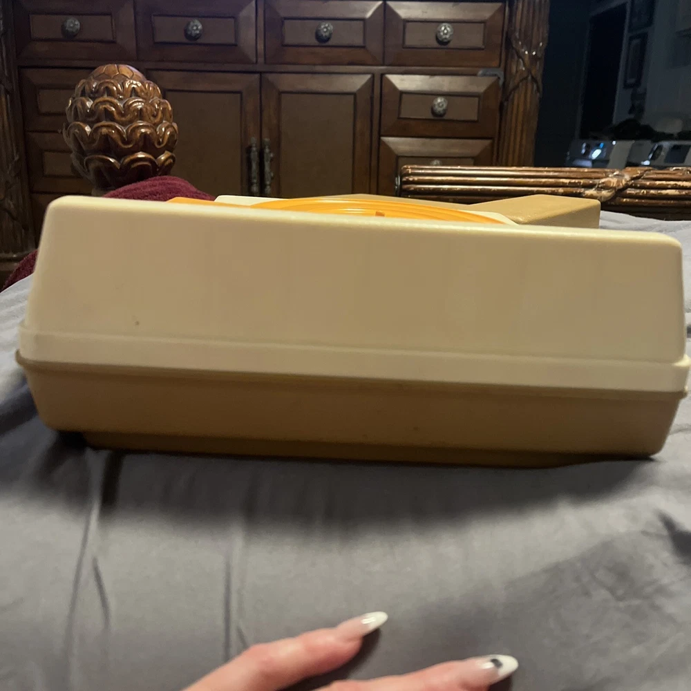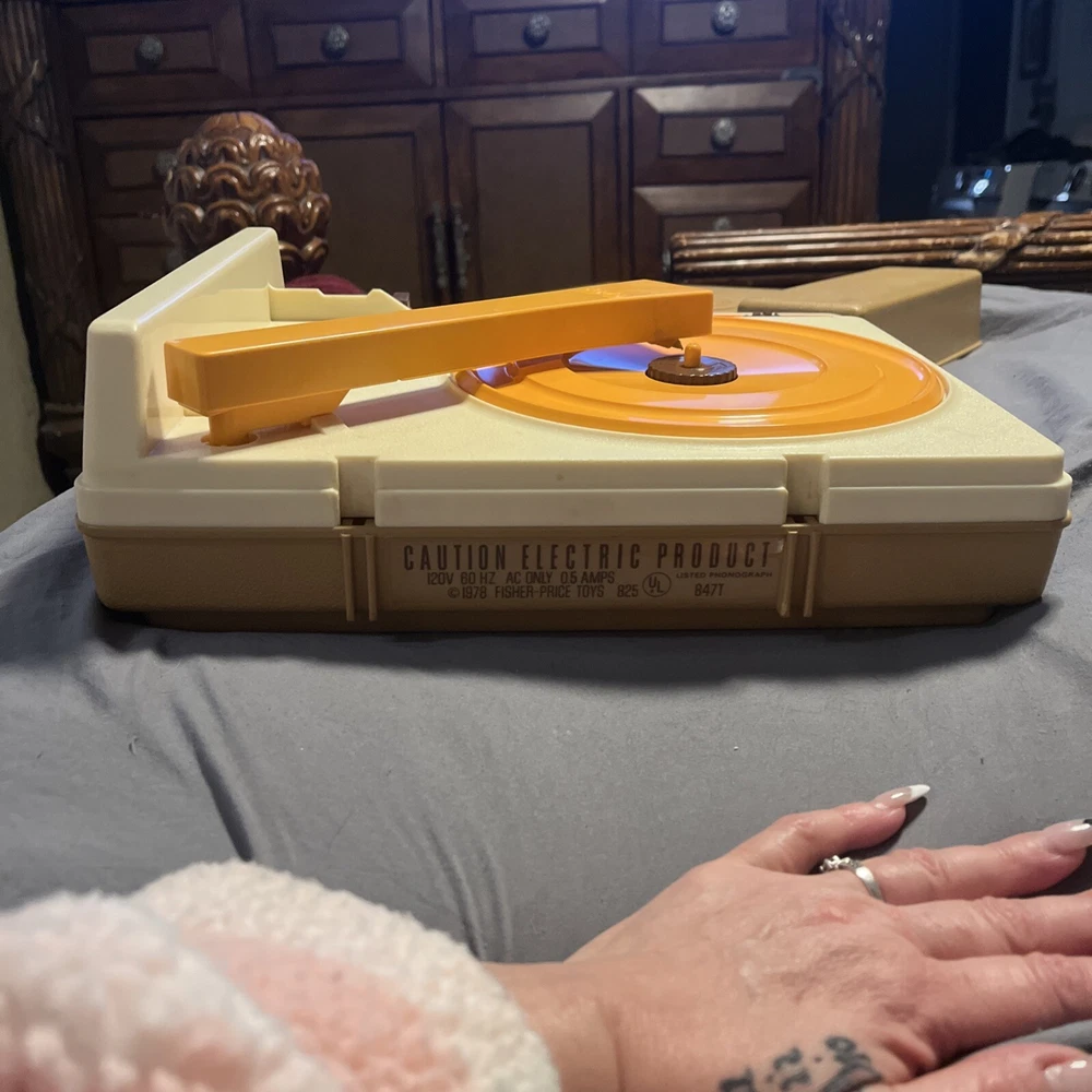 1978 Fisher Price Record Player Model 825 Works! Looks to be very well taken of ! Cords in good shape, there doesn’t seem to have dings or major scratches, and not very dirty! Please refer to pictures for detail!