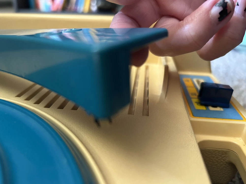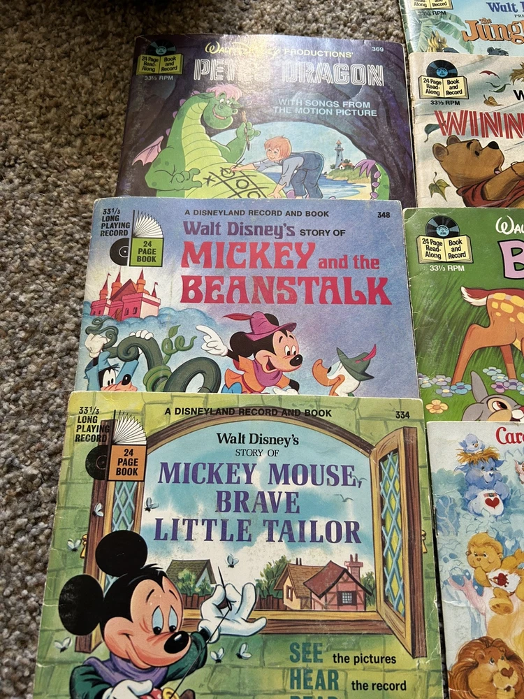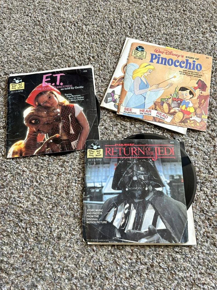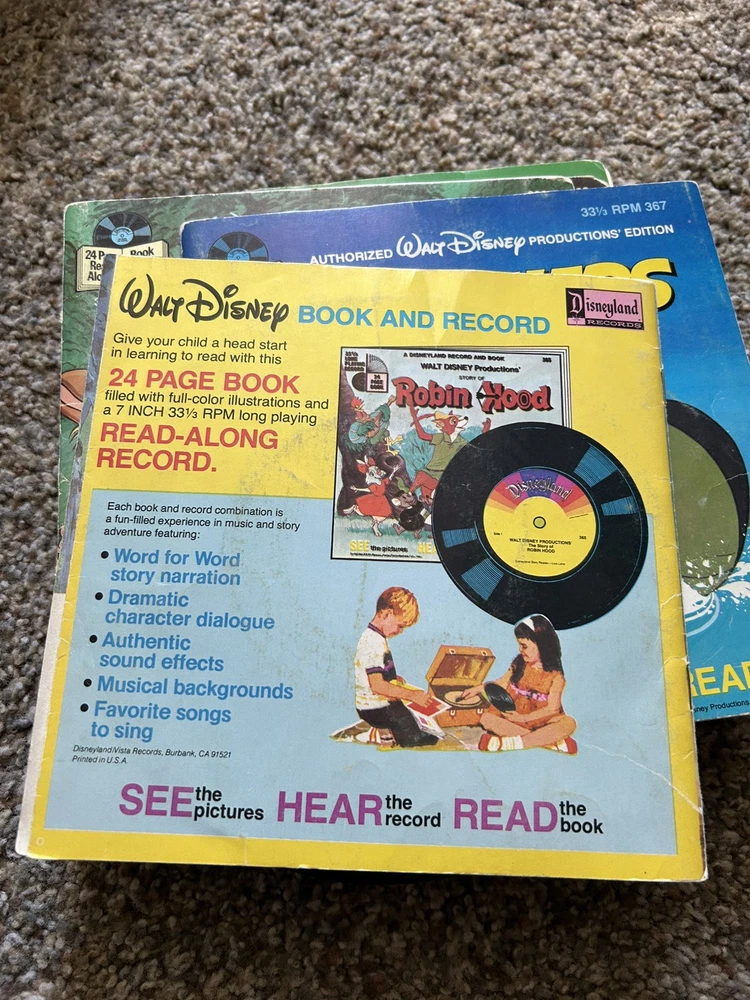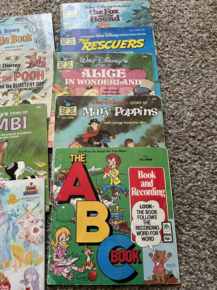The product is a vintage 1978 Fisher-Price Record Player Turntable from the United States. It includes 15 Read Aloud records and books. 12 of the books are in great shape, 3 more of the books are torn, and one other book is missing the record. Works great.