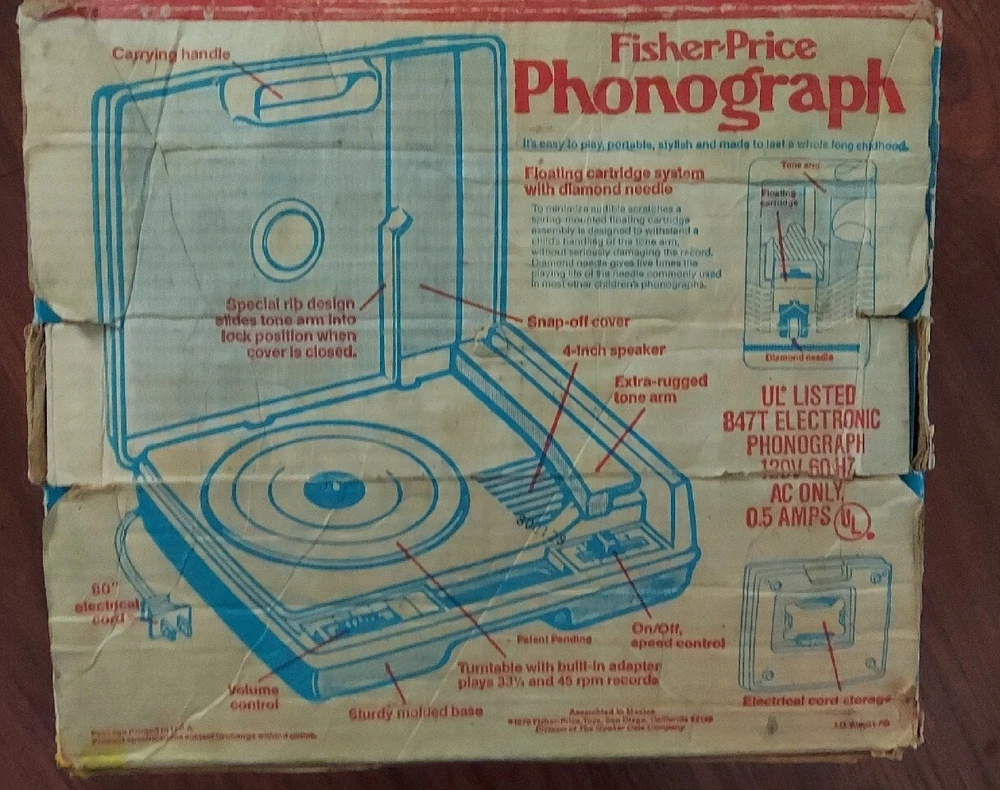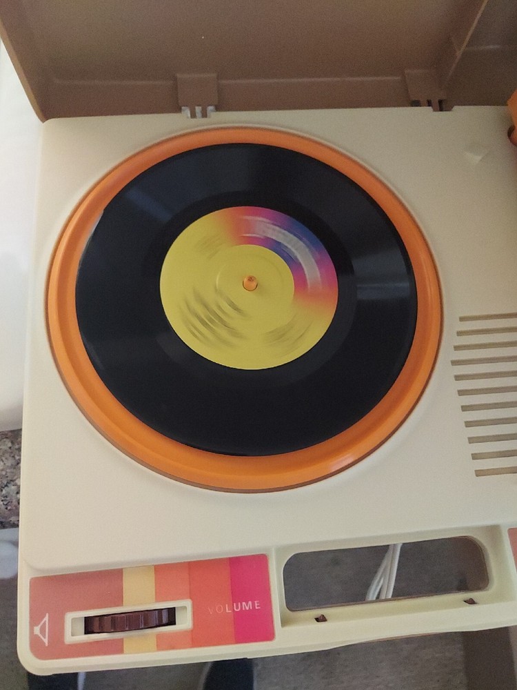 This vintage Fisher-Price portable phonograph is a classic toy for children aged 3-7. With its 1978 design and 7 Disney records included, it's sure to bring back memories for adults too. The record player is easy to use and operate, perfect for little hands to enjoy. It also comes with 2 additional records for added variety. This Fisher-Price record player is a great addition to any collection of musical toys. The brand has a reputation for quality and durability, making it a trusted choice for parents and collectors alike. Whether you're looking for a fun toy for your child or a nostalgic piece for your own collection, this vintage phonograph is sure to delight.