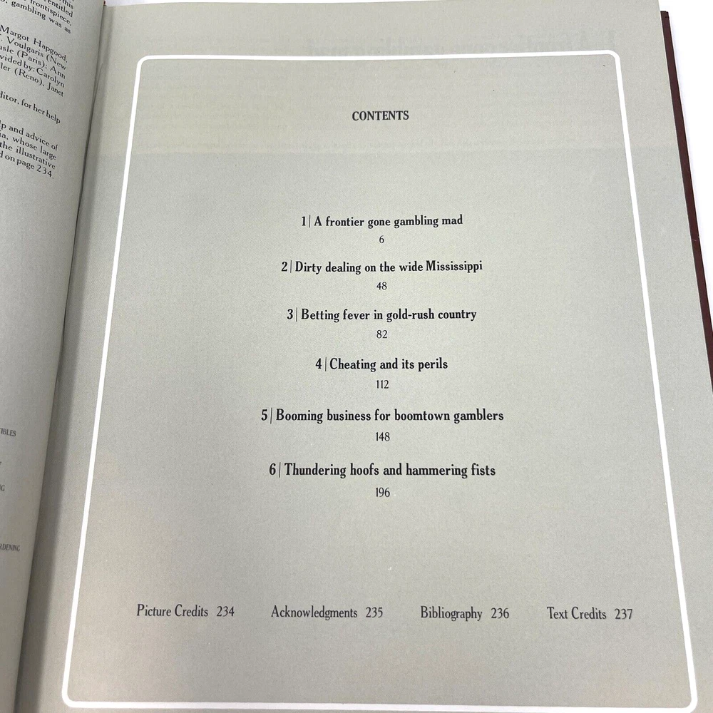 DETAILS Publisher: Time-Life Books Series: The Old West Publication Year: 1978 Volume: 25 Title: The Gamblers ISBN: 0809423081 # of Pages: 240 Language: English Binding: Hardcover; embossed faux leather bound. Condition: Good condition with gentle signs of age. About: Faux leather bound book series chronicling the history of the American Wild West. Full color photos and illustrations. Ornate bookplate cover design unique to each book. Other books in the series (available through my store as additional listings) The Cowboys The Indians The Soldiers T he Trailblazers The Railroader s The Forty-Niners The Pioneers The Expressmen T he Townsmen The Great Chiefs The Rivermen The Texans The Loggers The Chroniclers The Miners The Canadians The Frontiersmen The Alaskans The Ranchers The Women T he Scouts The Gamblers T he End And The Myth Due to the weight of these books, I am not able to provide combined shipping discounts, only volume discount pricing to offset the cost of shipping from Ontario, Canada. Please view all pics and hover to zoom so that you can see all potential defects.