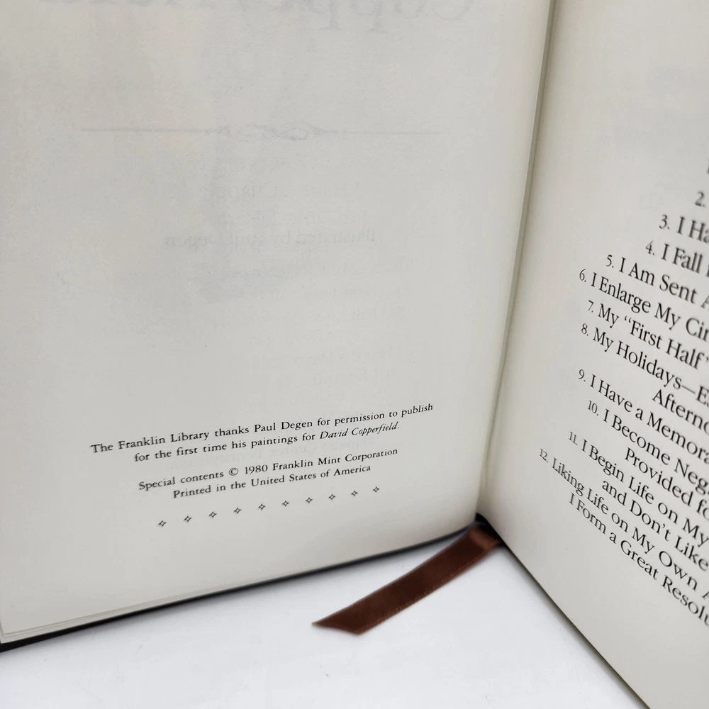 1980 DAVID COPPERFIELD Charles Dickens Leather Franklin Library Book. Preowned. X6 In Good Condition. See pictures for measurements and details. PLEASE inspect pictures closely they are part of the description. Don't forget to check my other listings, Thanks. En Buena Condicion. Vean las fotos para detalles y medidas. Por favor revisen bien la fotos que son parte de la descripcion. No se olviden de revisar mis otros articulos en venta, Gracias. https://www.ebay.com/usr/mgtheflipper59 Your item will be shipped within 24 unless your purchase is on the weekend or National holiday. If your purchase takes place on the weekend or National Holiday, we will ship your item on the next business day. We will not ship to a different address than your confirmed address. This is against eBay policy to do this. Su artículo se enviará dentro de 24 horas a menos que su compra sea el fin de semana o feriado nacional. Si su compra se realiza el fin de semana o el feriado nacional, enviaremos su artículo el siguiente día hábil. No enviaremos a una dirección diferente a su dirección confirmada. Esto va en contra de la política de eBay para hacer esto.
